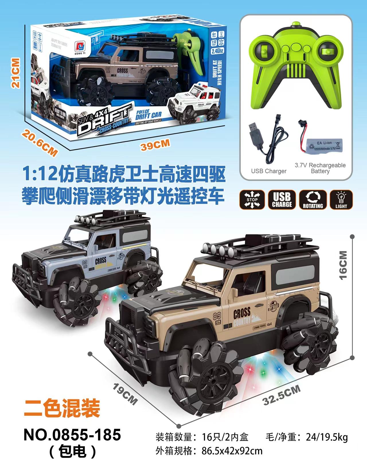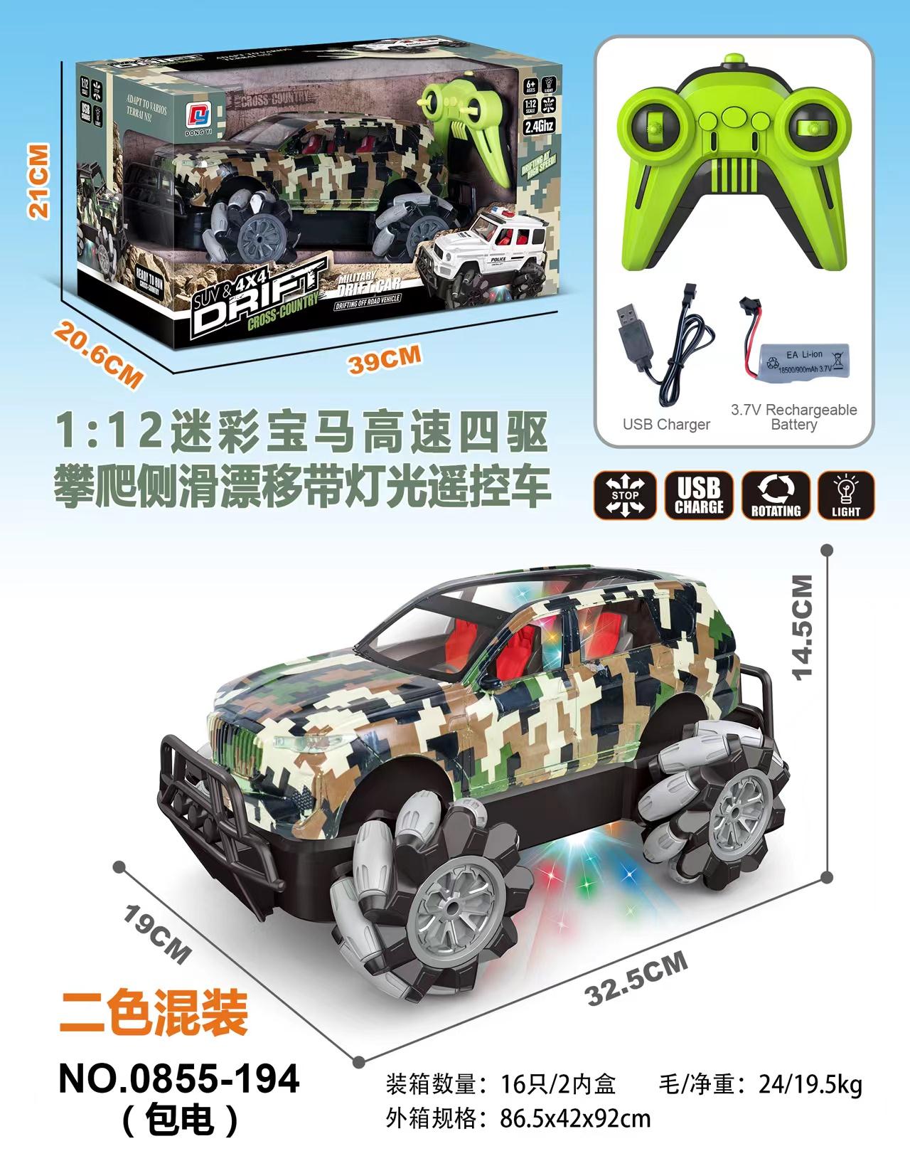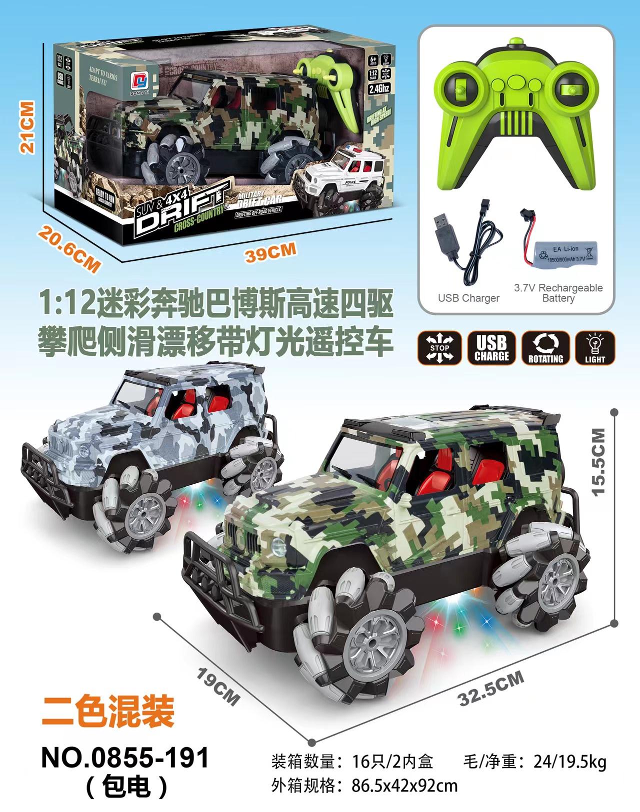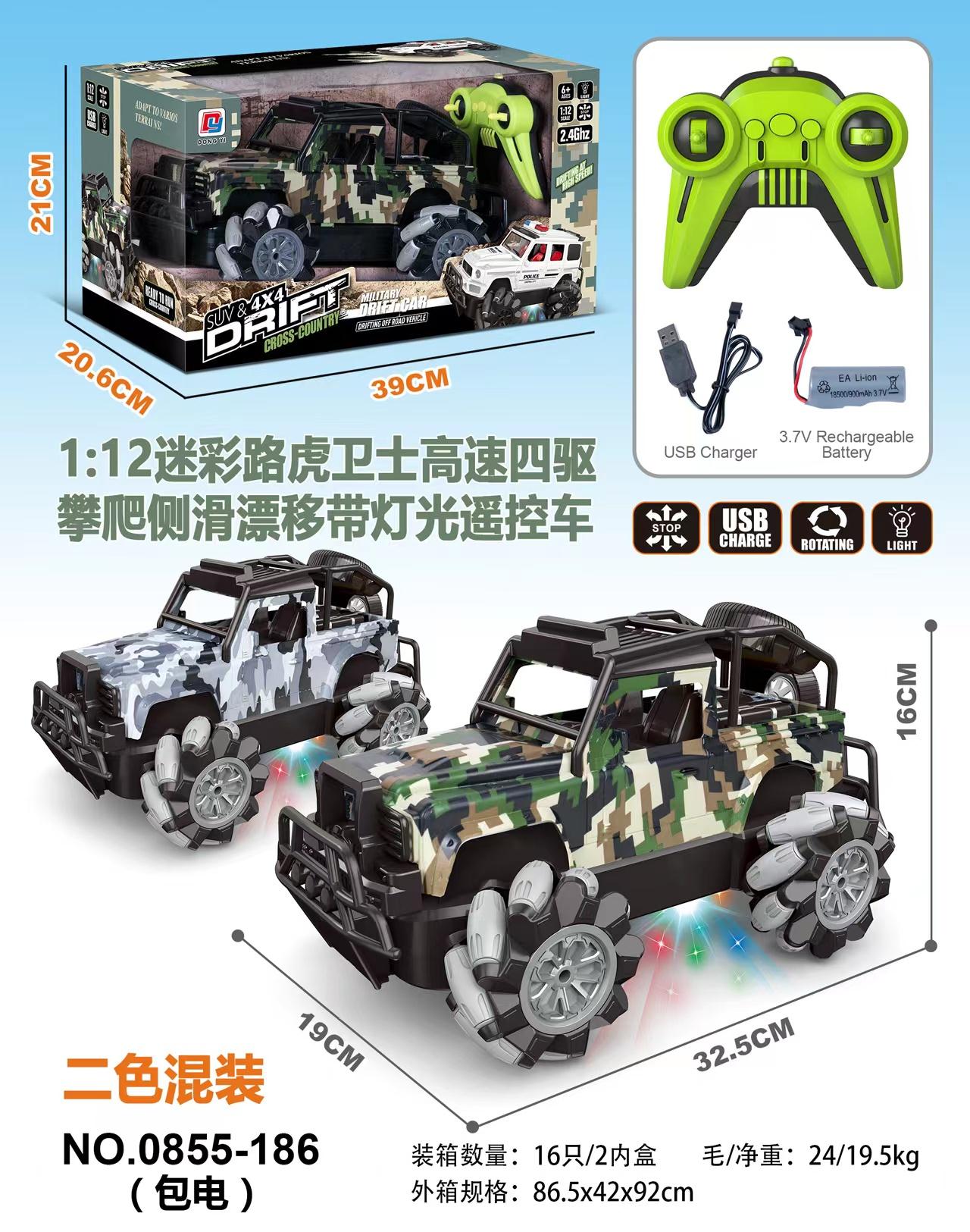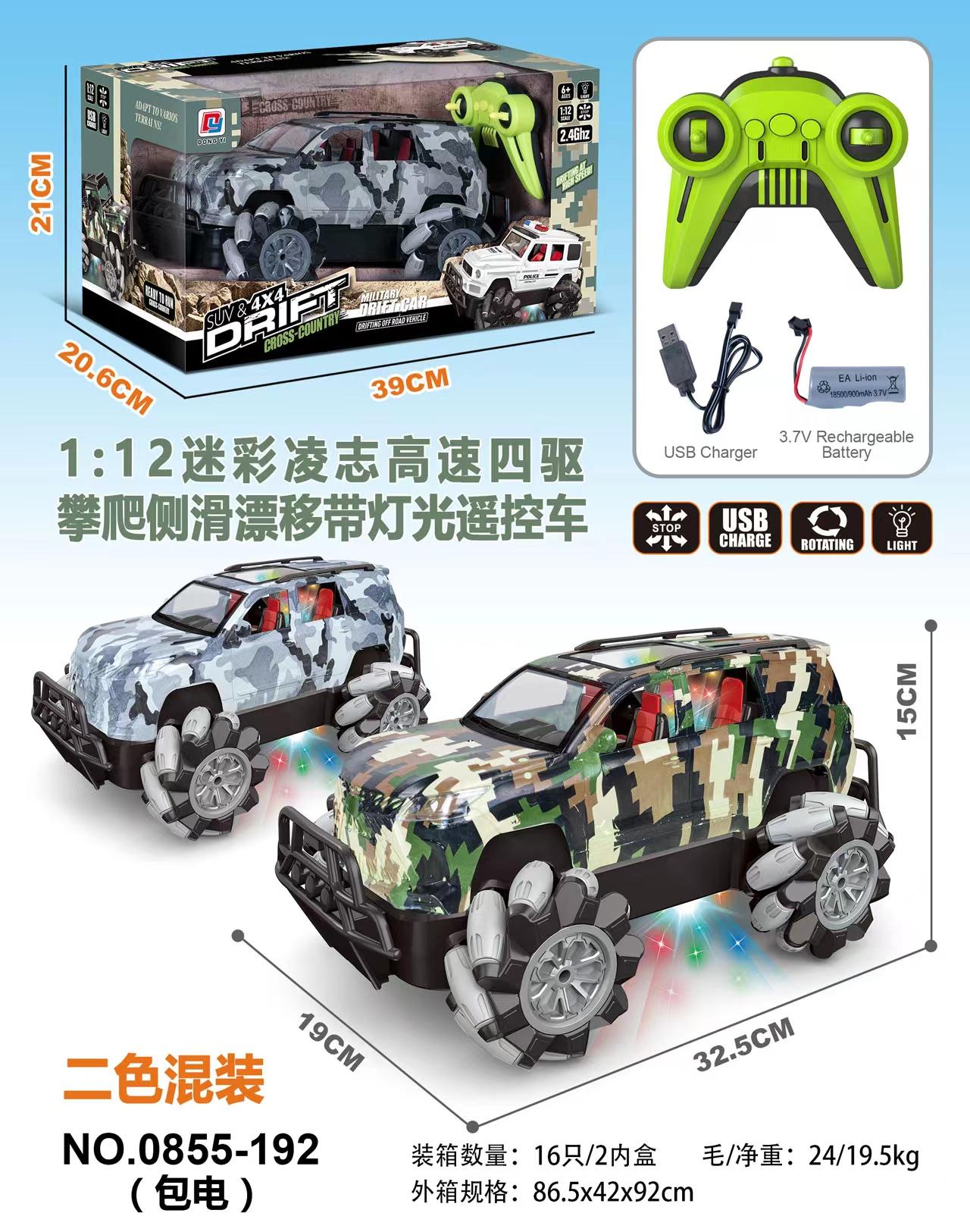 跨境批发1:12迷彩路虎卫士高速四驱攀爬侧滑漂移带灯光遥控车