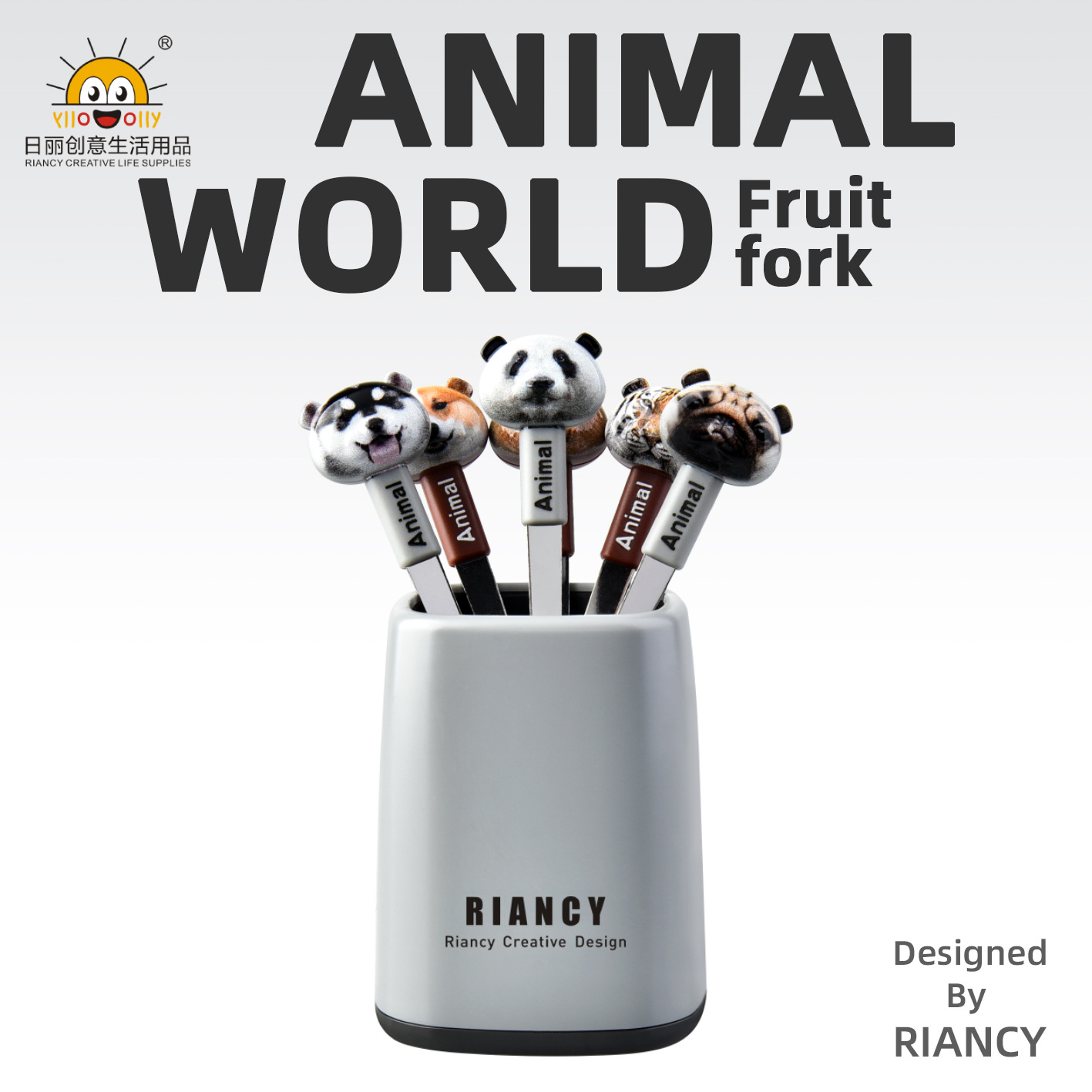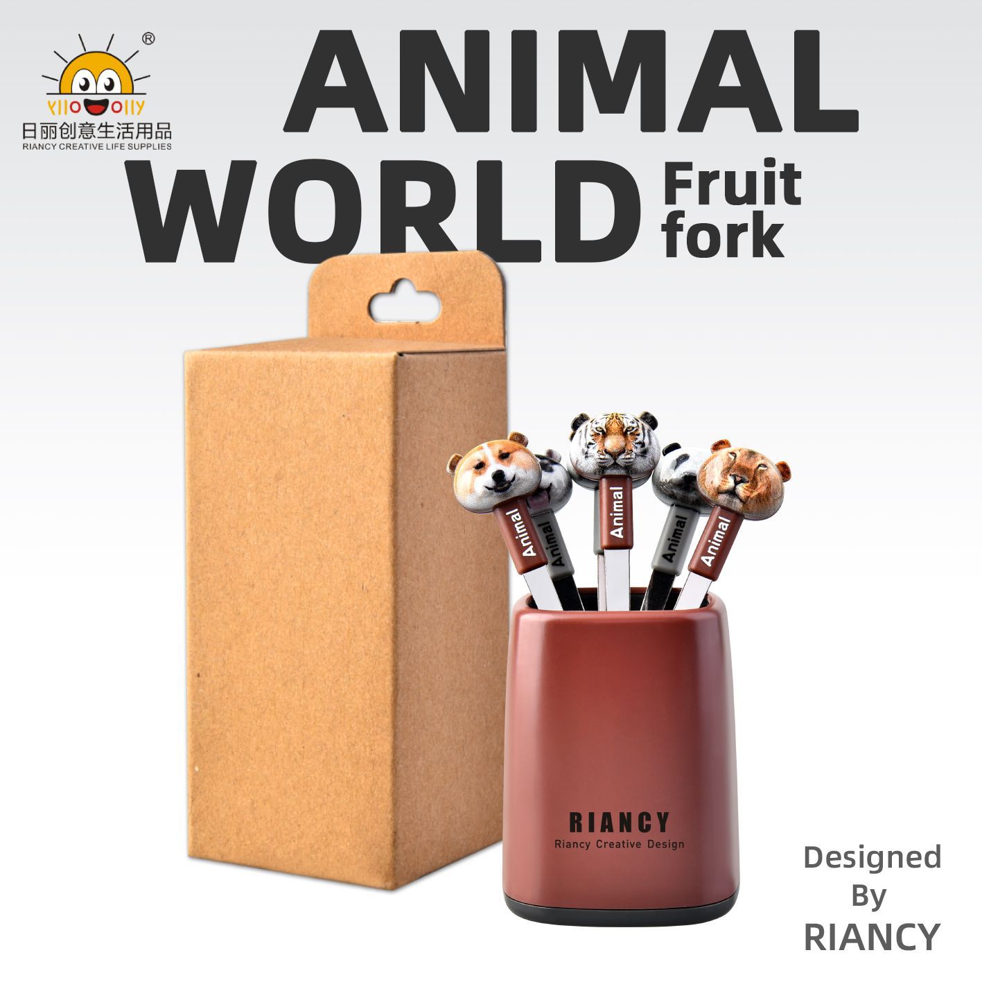 卡通可爱月饼水果叉套装创意不锈钢水果签两齿叉子点心蛋糕