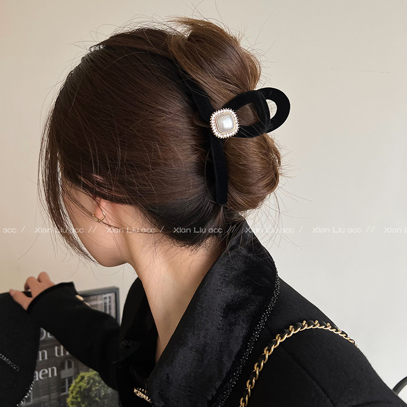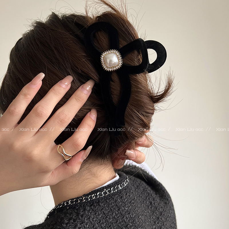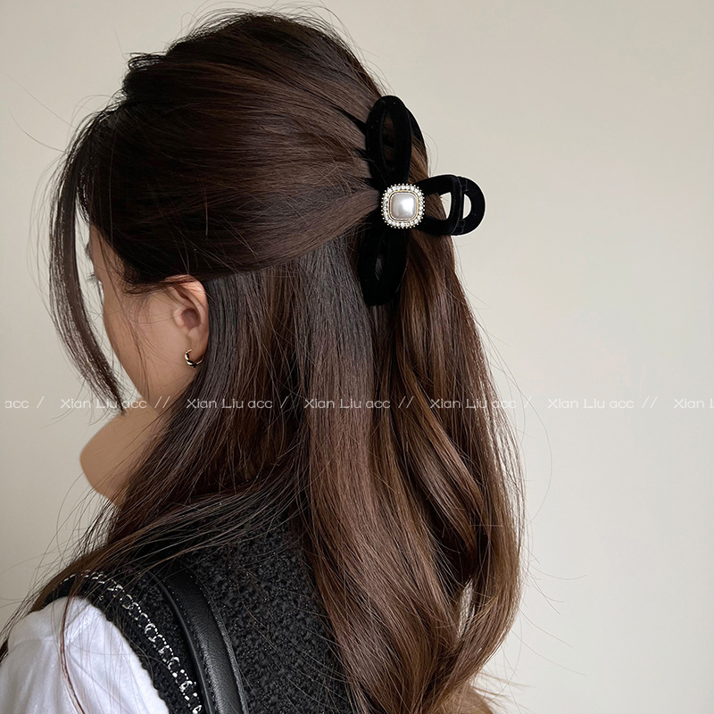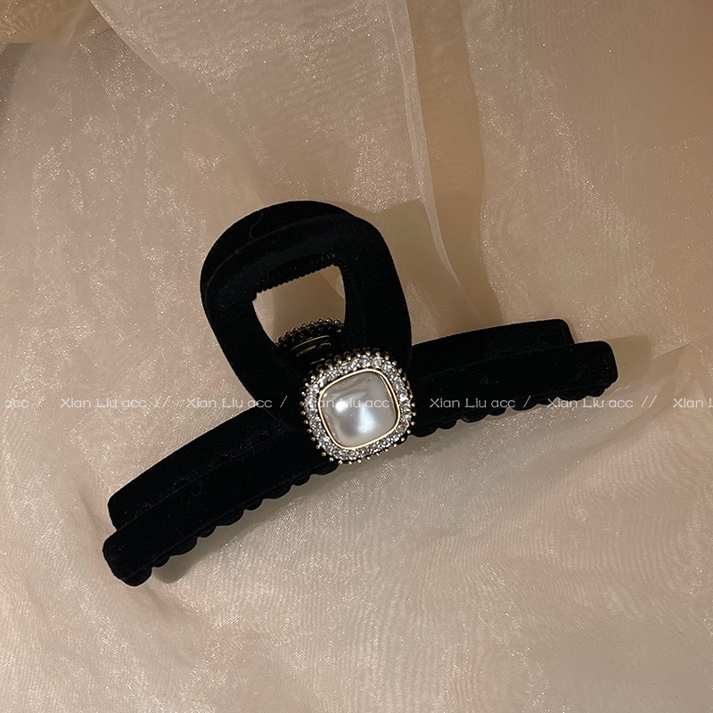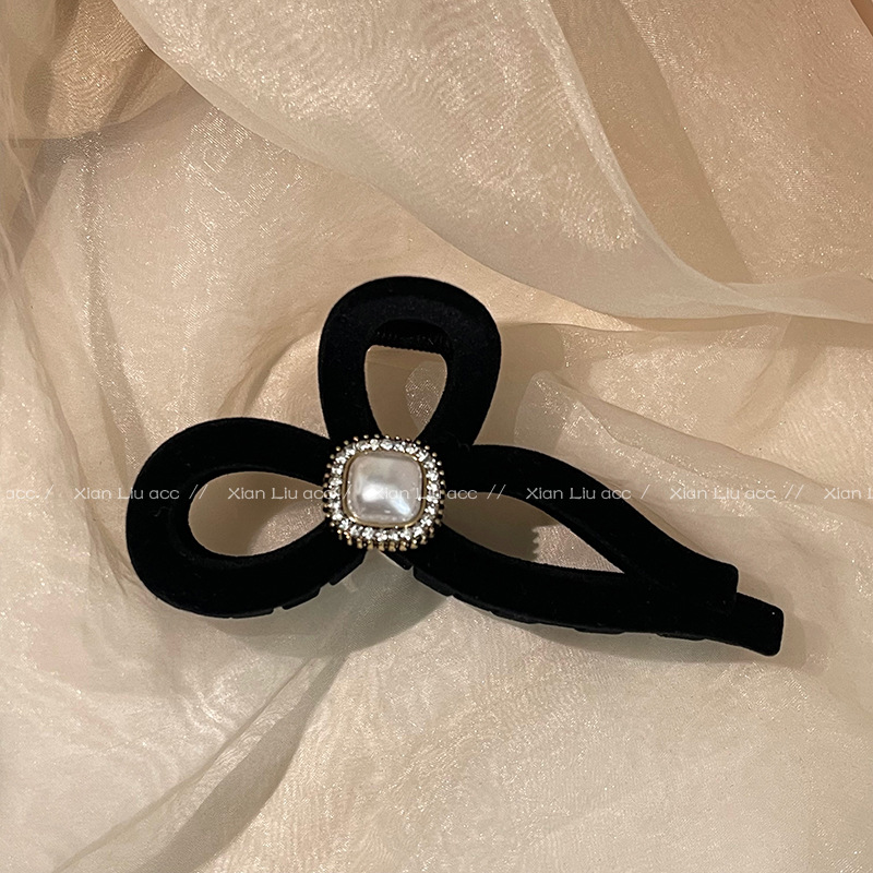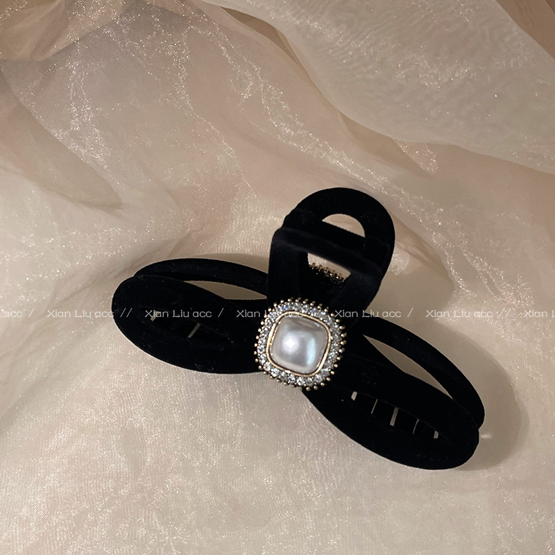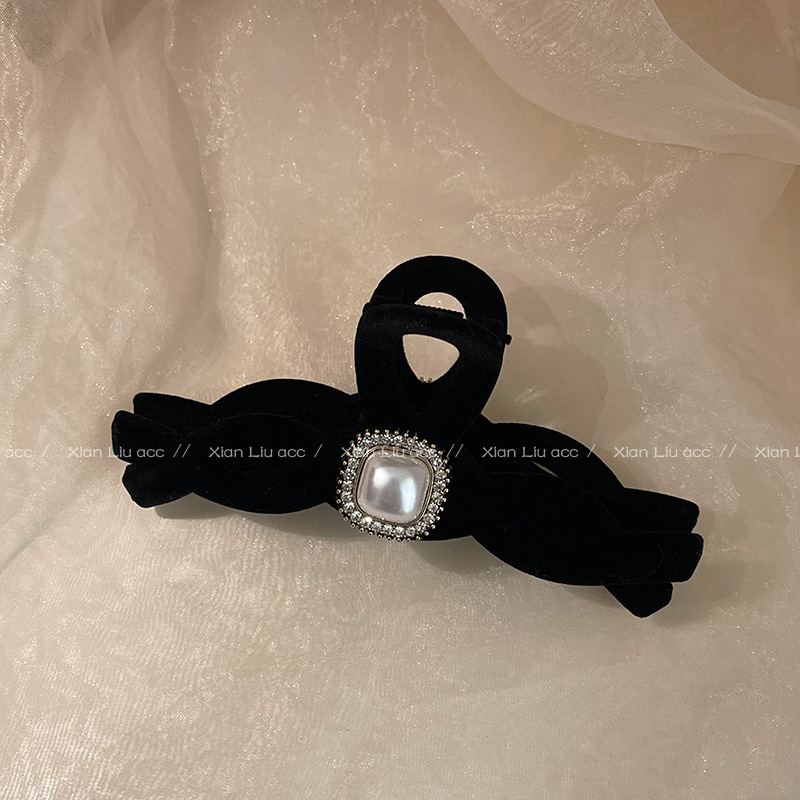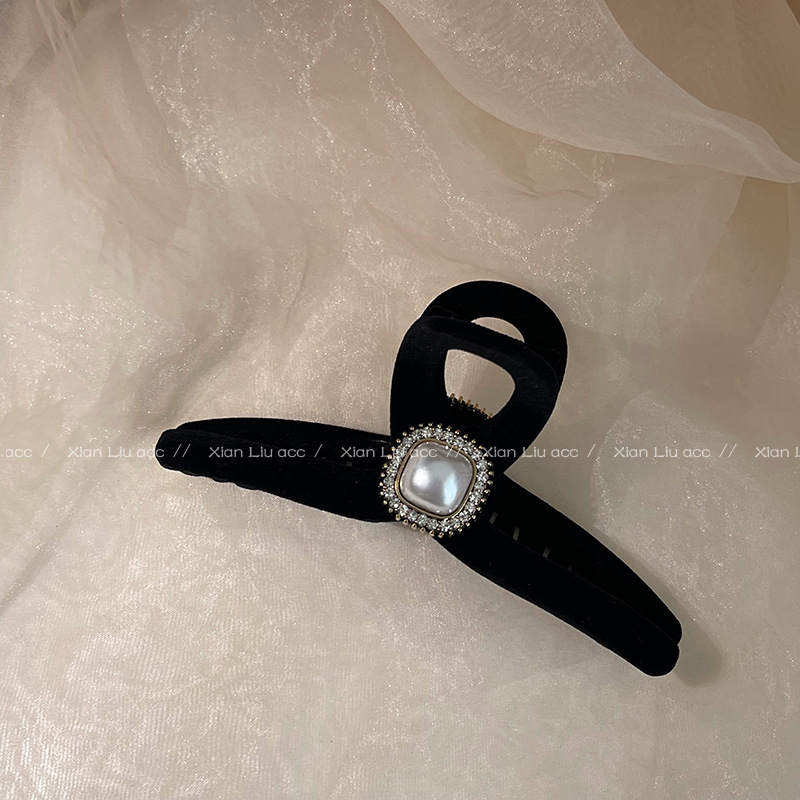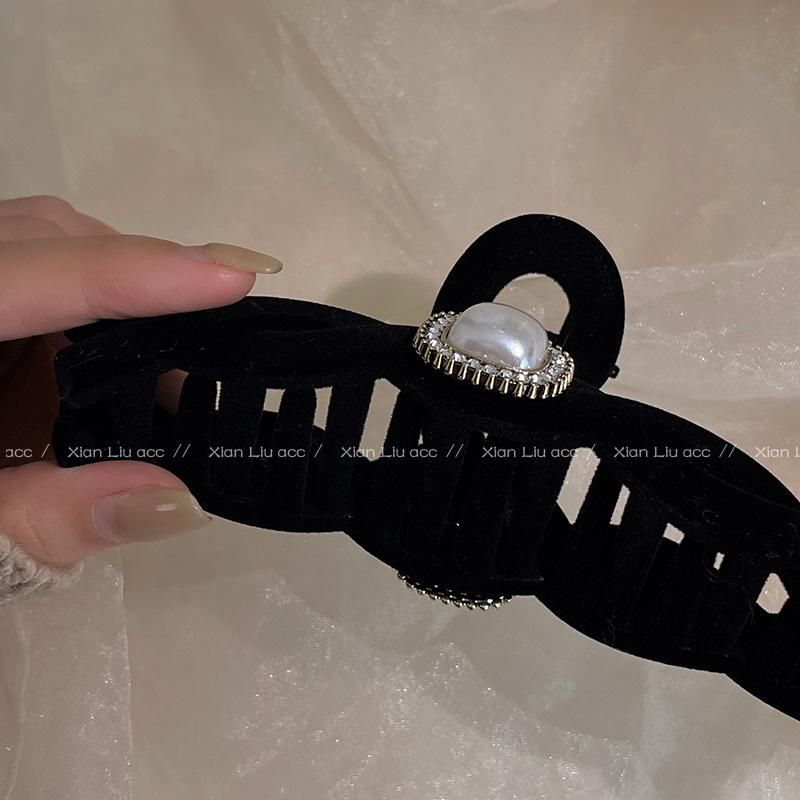 黑色植绒秋冬珍珠塑料抓夹夹子头饰发夹鲨鱼夹新款