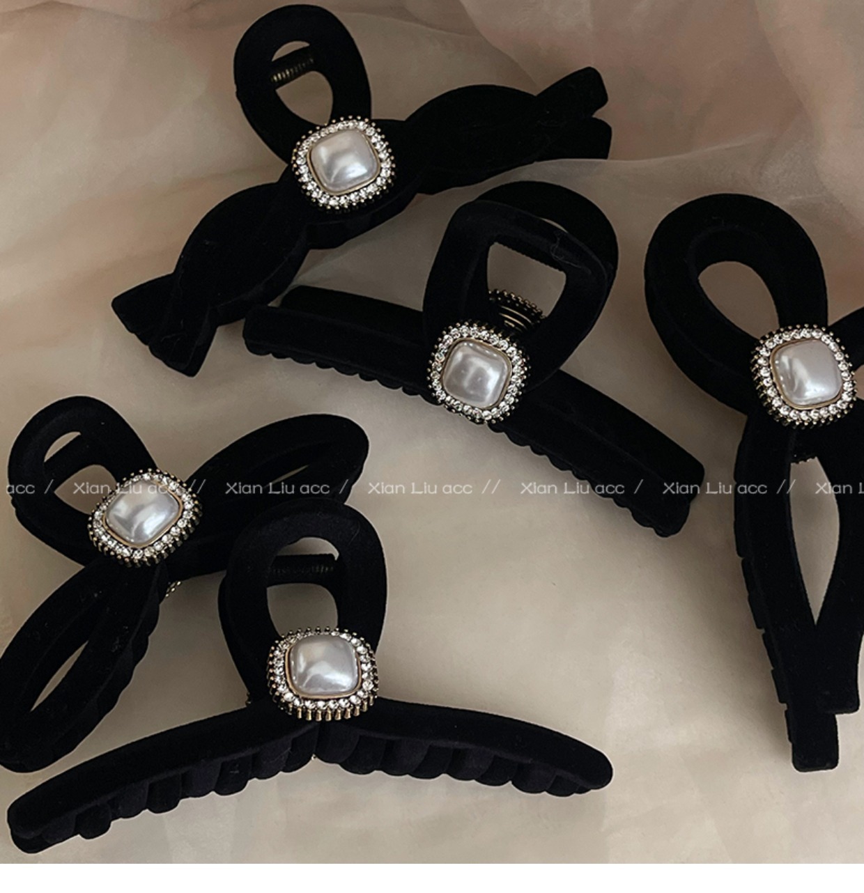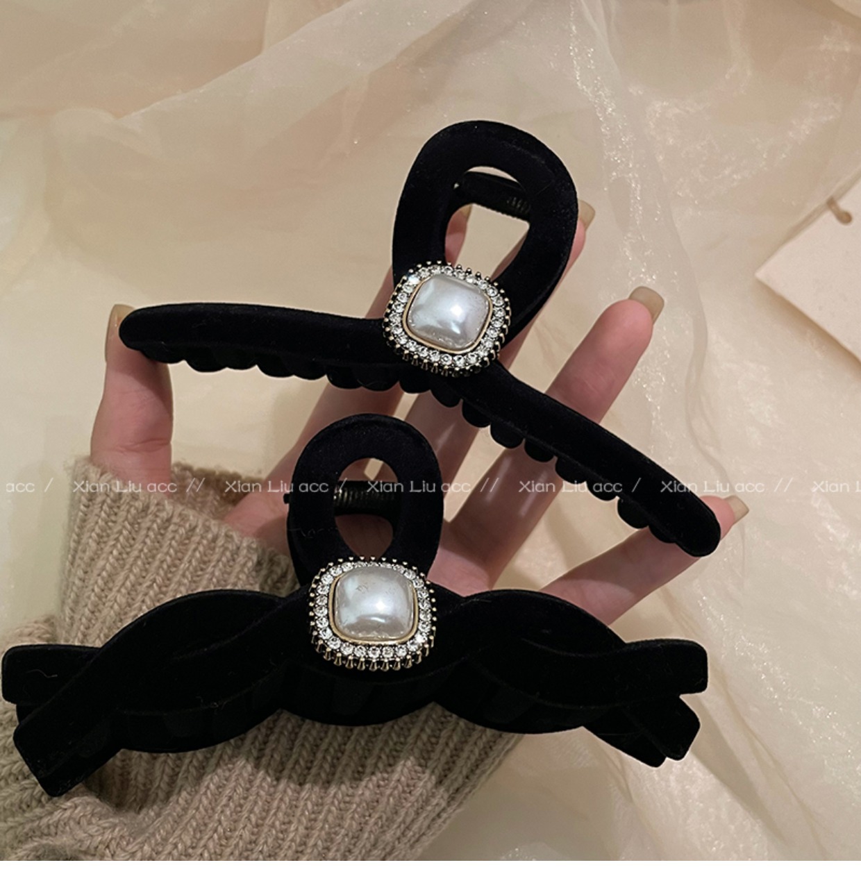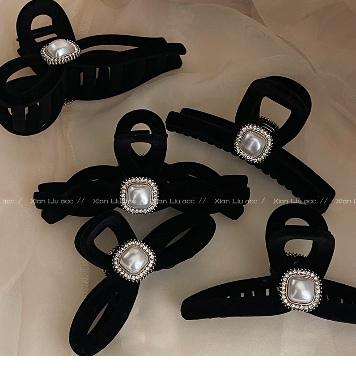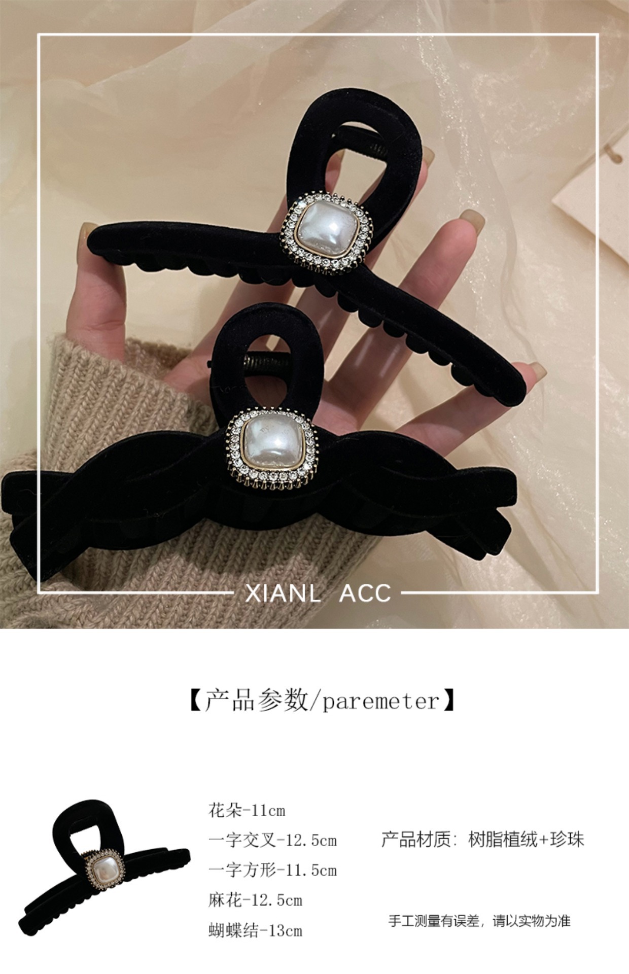 黑色植绒秋冬珍珠塑料抓夹夹子头饰发夹鲨鱼夹新款