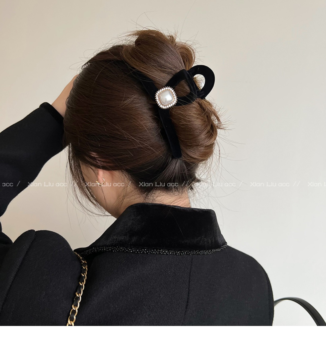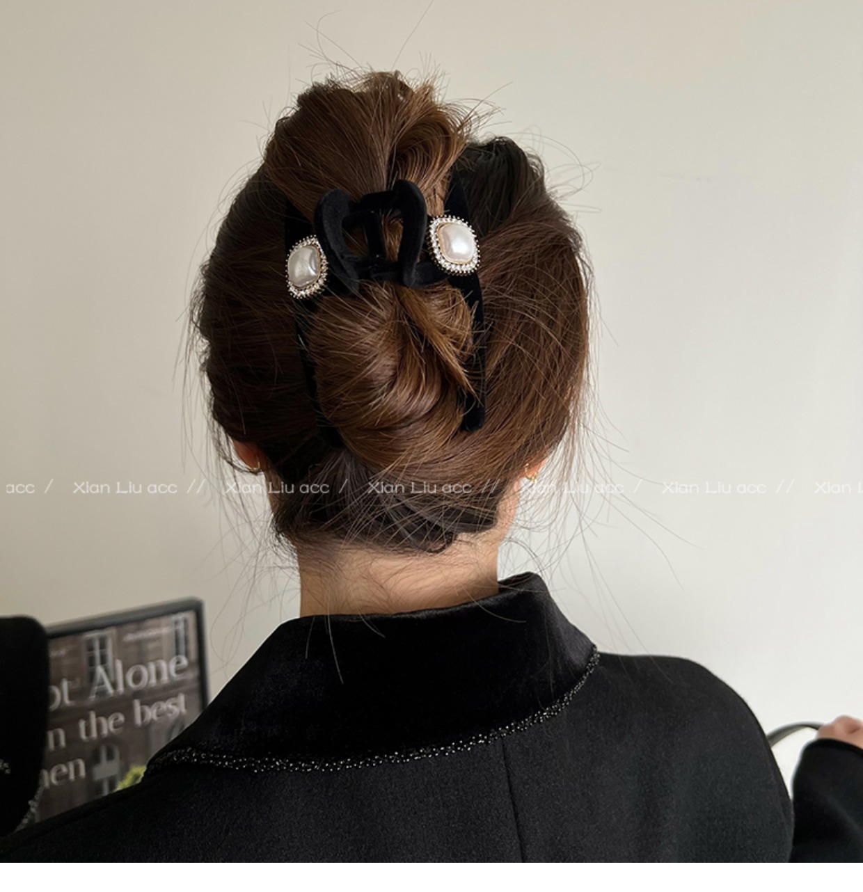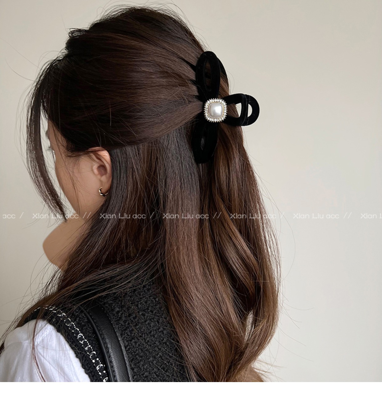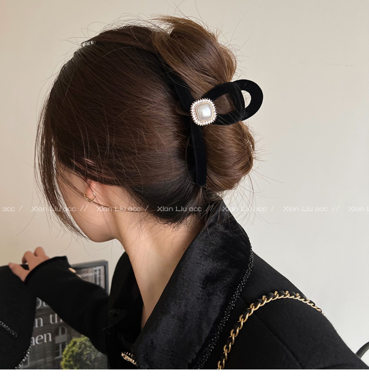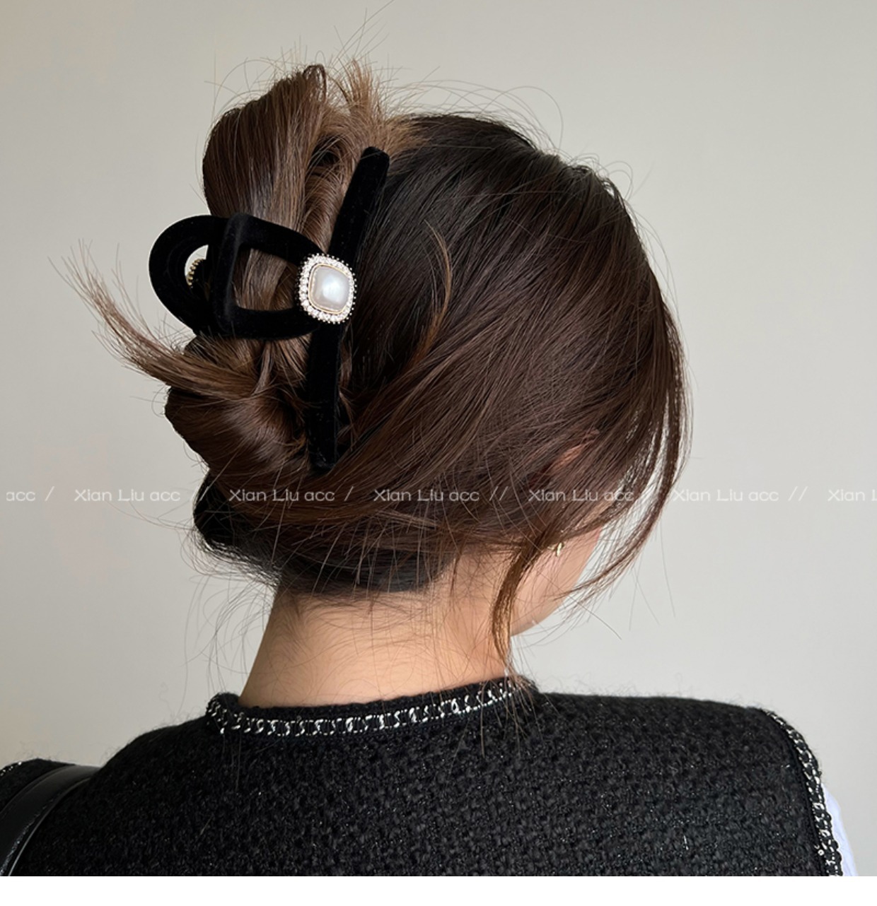 黑色植绒秋冬珍珠塑料抓夹夹子头饰发夹鲨鱼夹新款