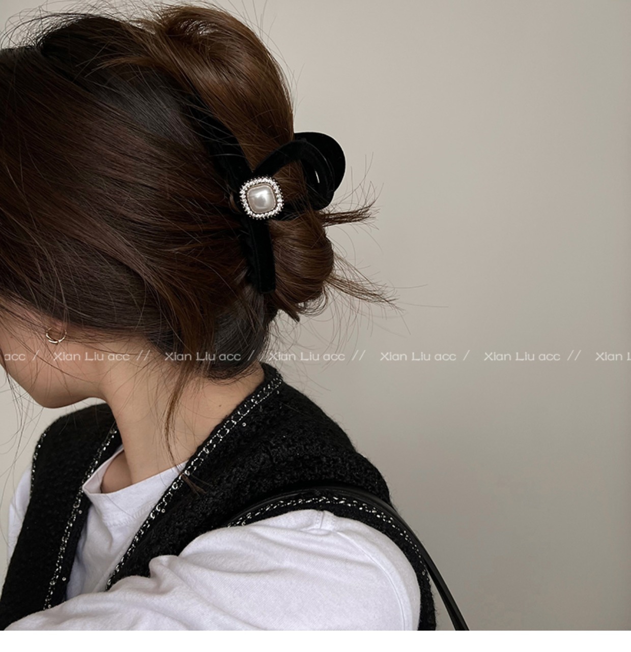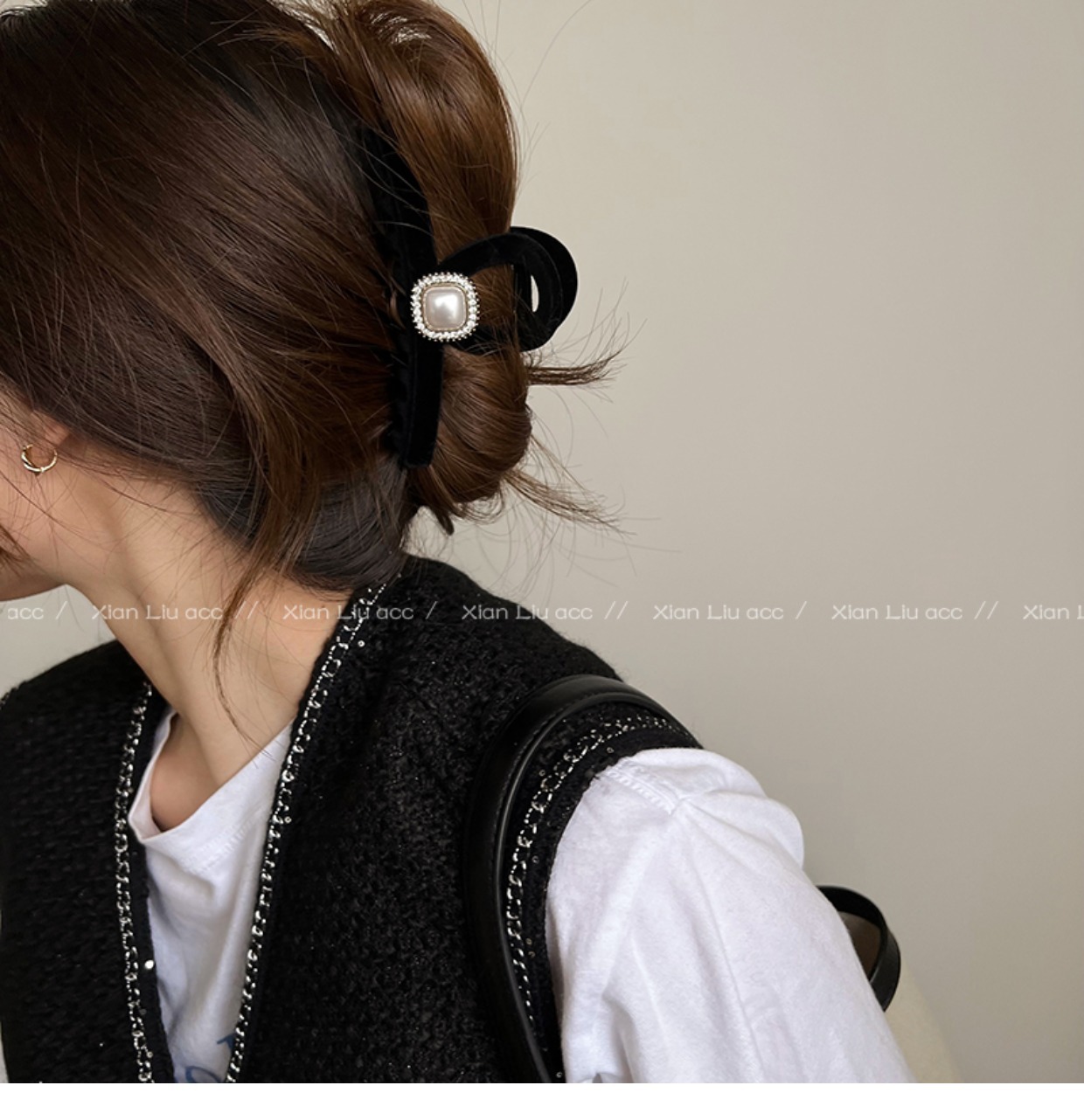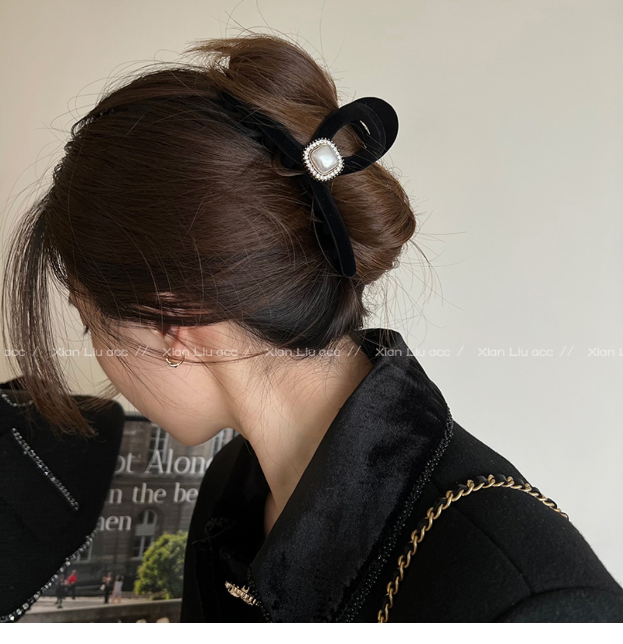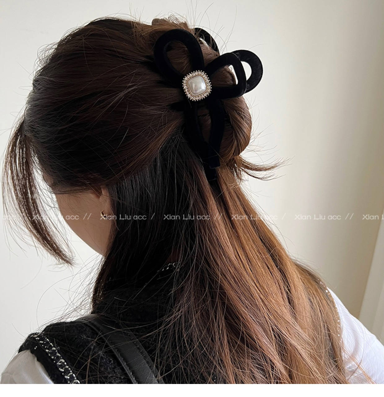 黑色植绒秋冬珍珠塑料抓夹夹子头饰发夹鲨鱼夹新款