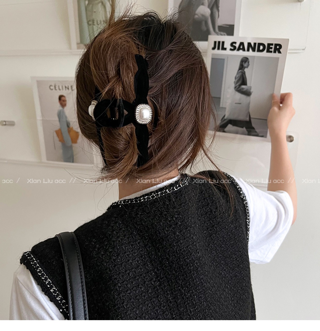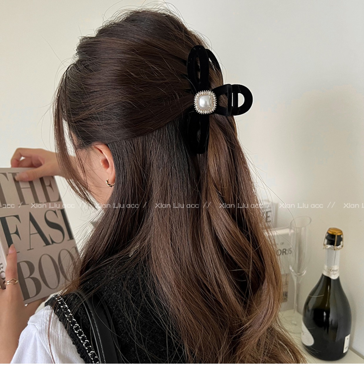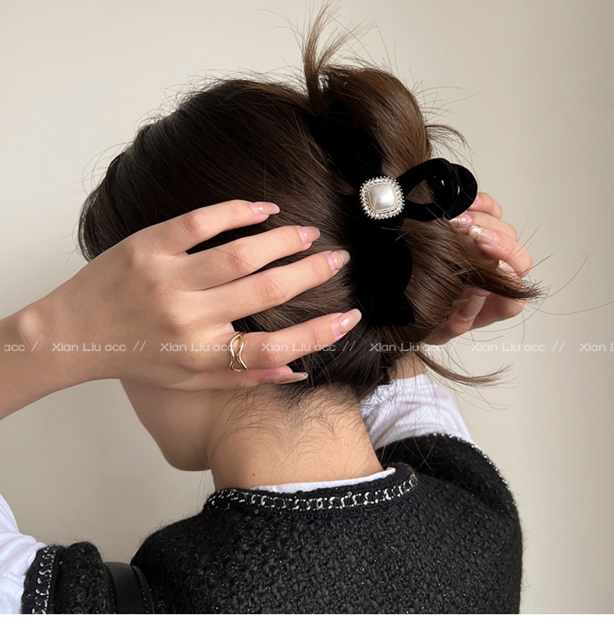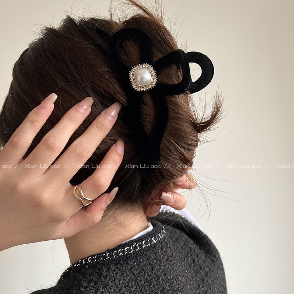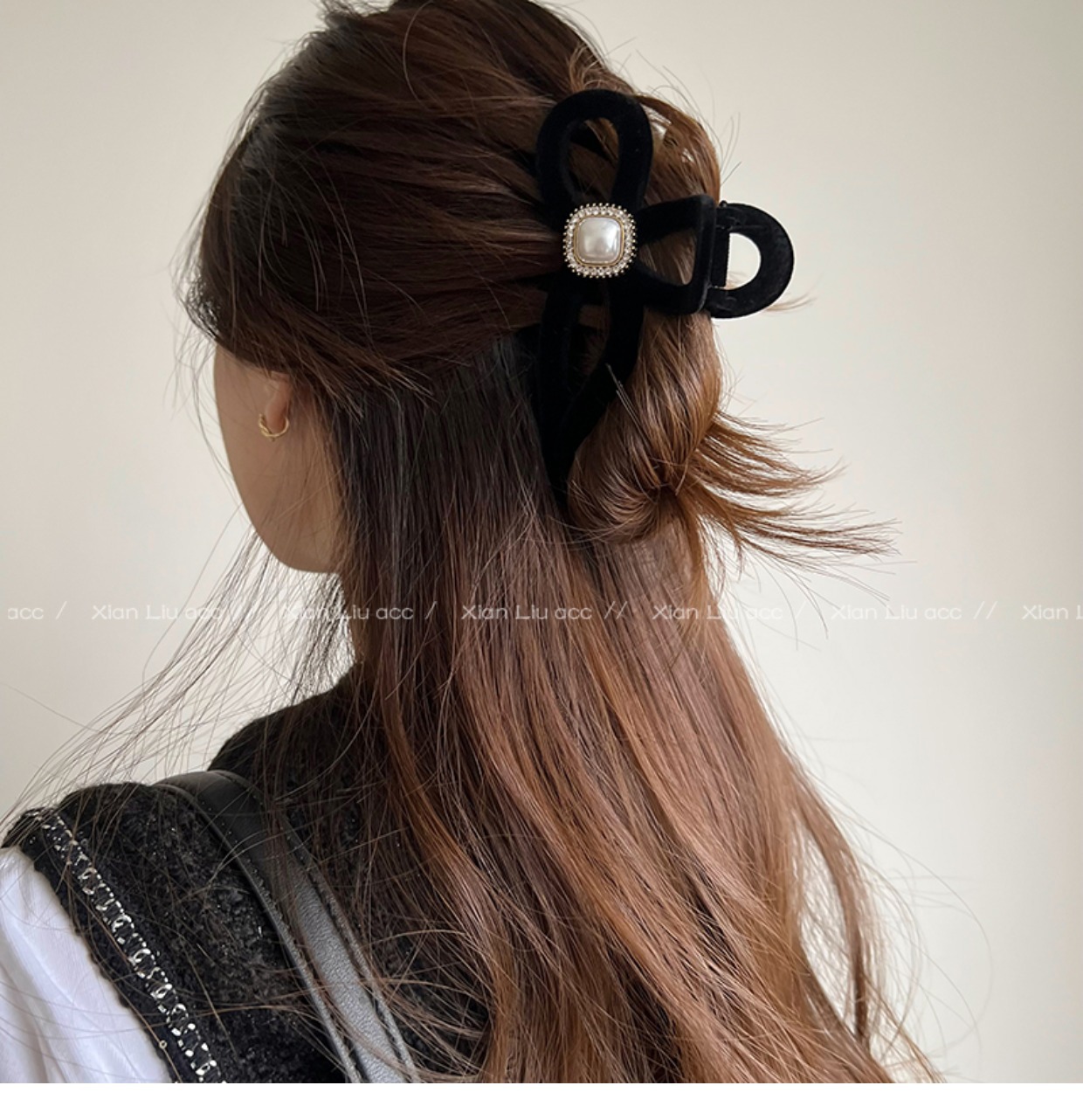 黑色植绒秋冬珍珠塑料抓夹夹子头饰发夹鲨鱼夹新款
