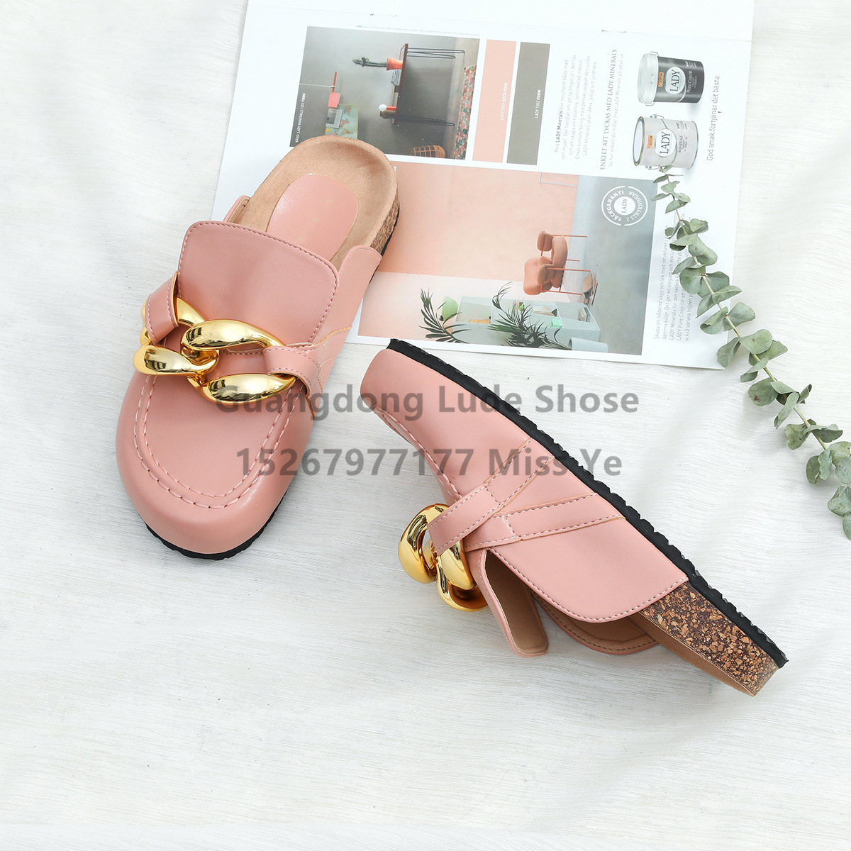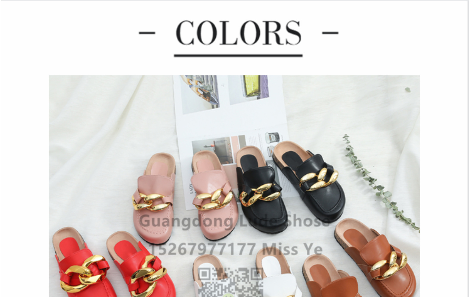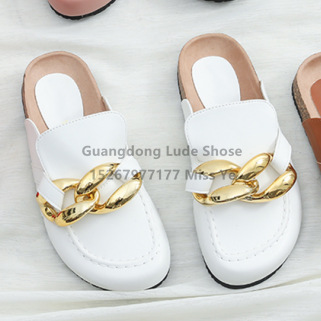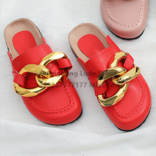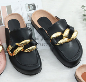 新款外穿包头拖鞋女金属链条欧美风半拖鞋时尚休闲舒适广州女鞋