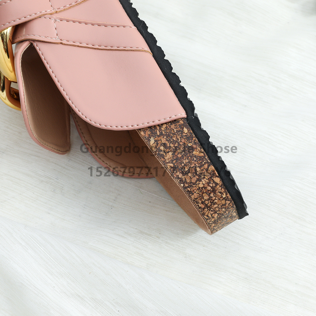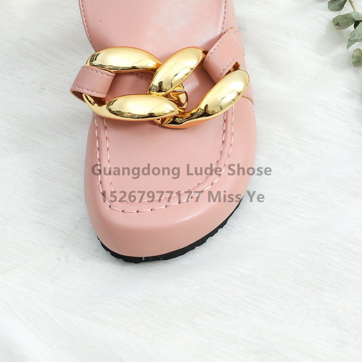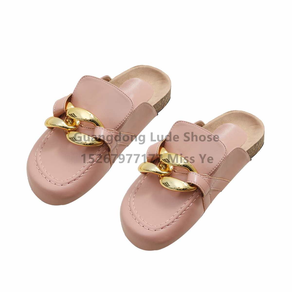 新款外穿包头拖鞋女金属链条欧美风半拖鞋时尚休闲舒适广州女鞋