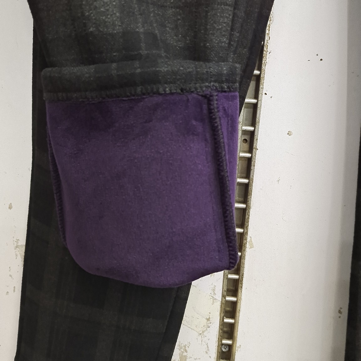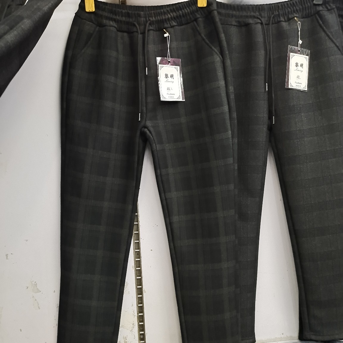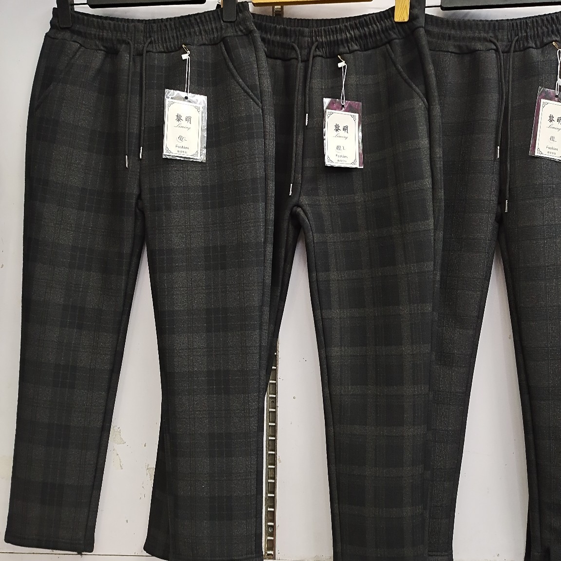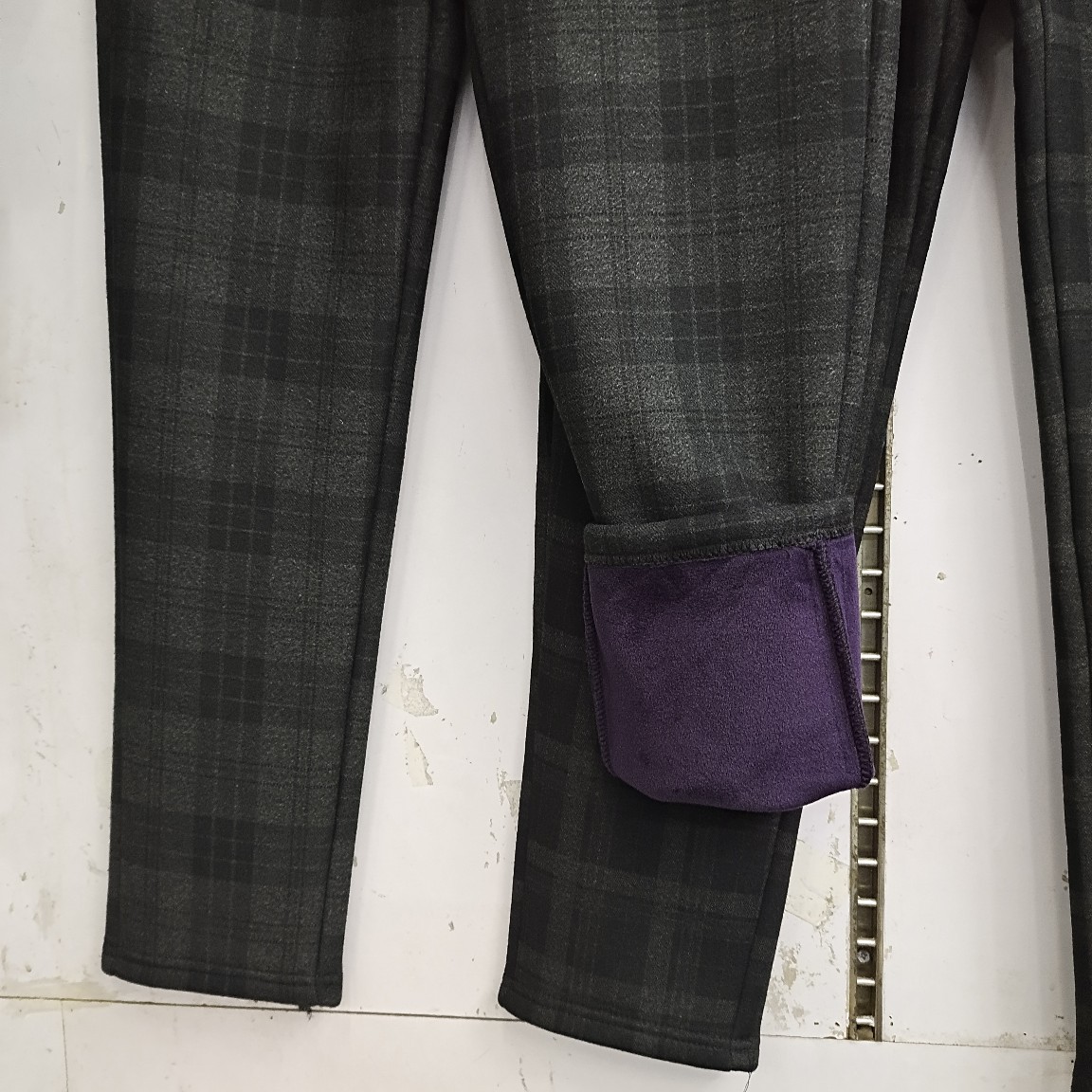 加绒加厚细绒中老年休闲裤大码格子长裤女冬外穿直筒宽松弹力口袋