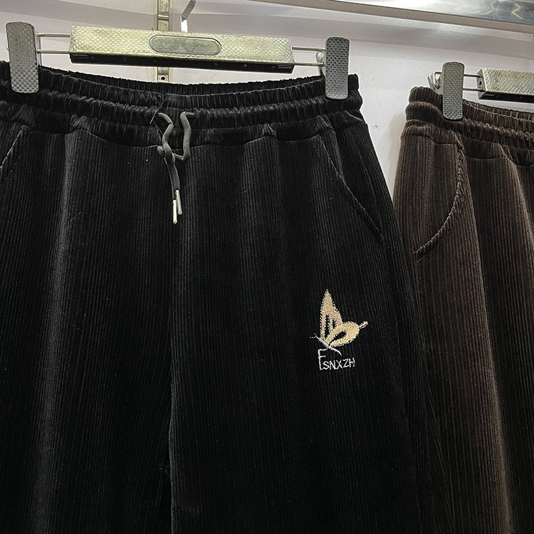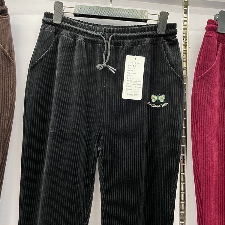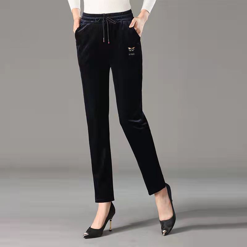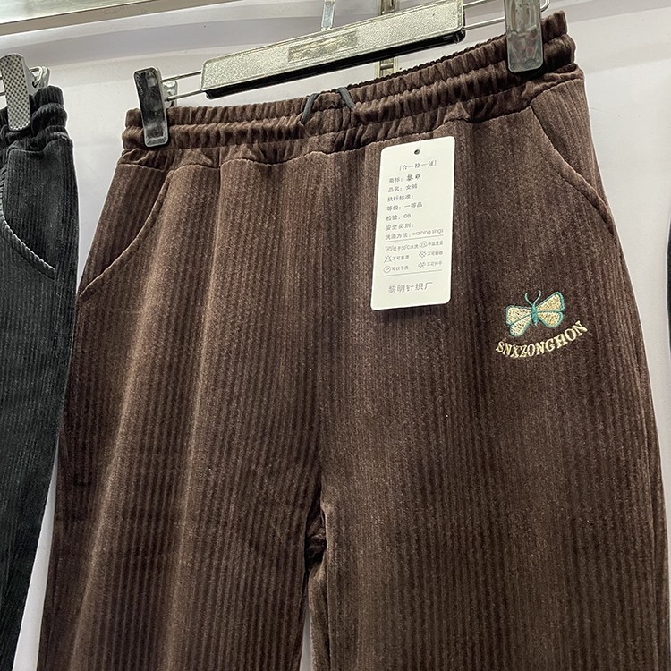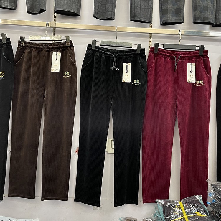 灯芯绒裤加绒加厚秋冬2022款妈妈休闲裤女直筒裤小脚中老年条绒裤