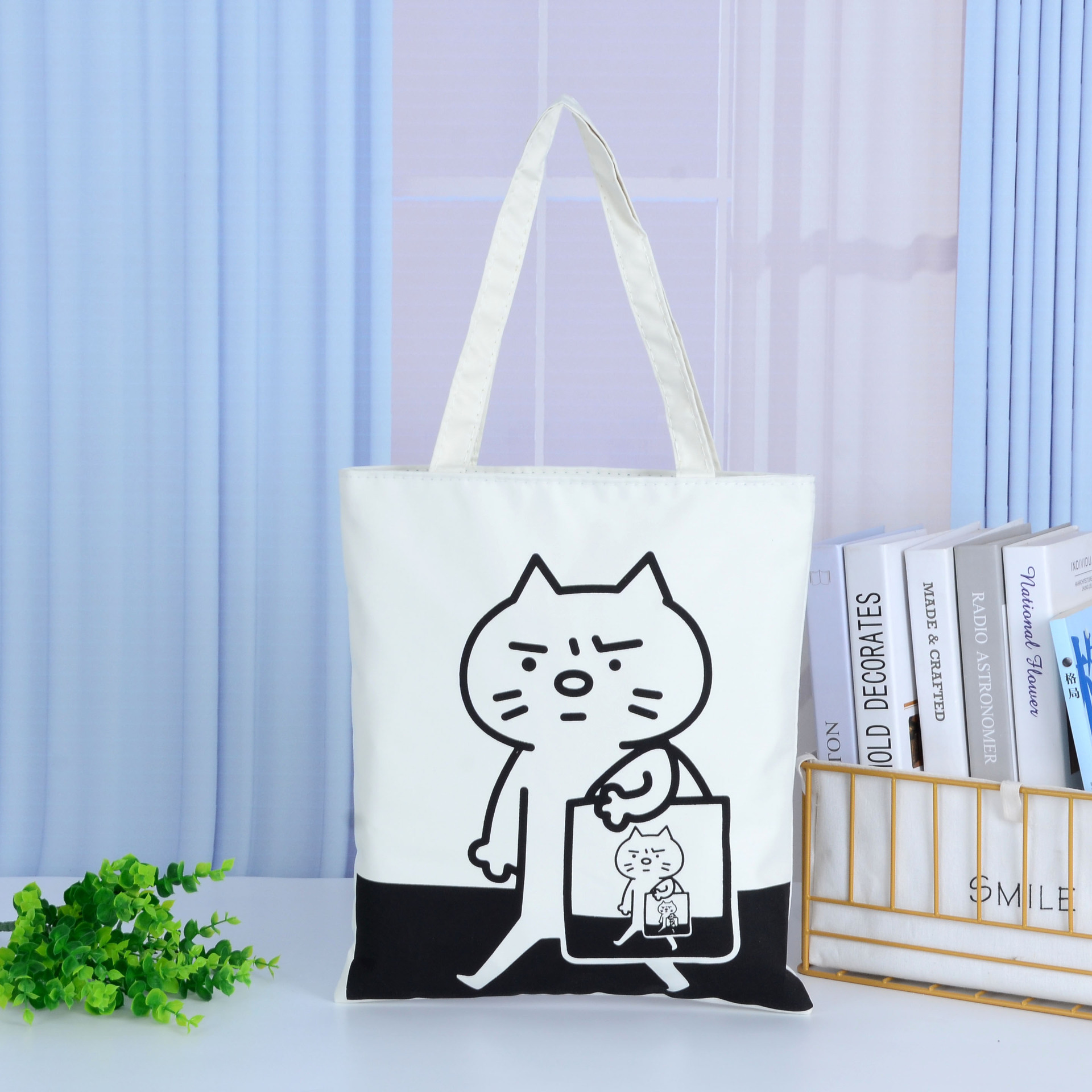 学生文艺牛津帆布包简约单肩包 卡通环保购物手提女包斜跨大容量