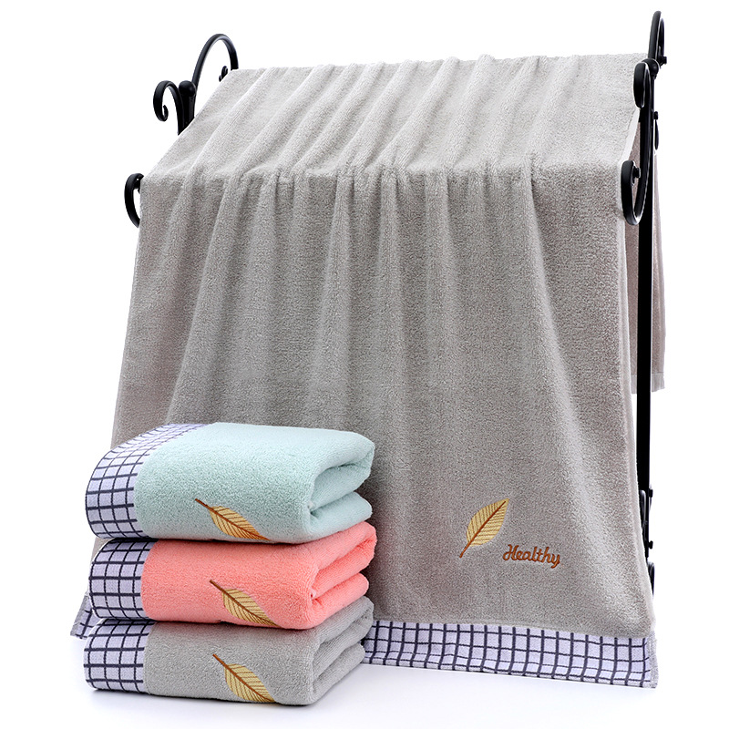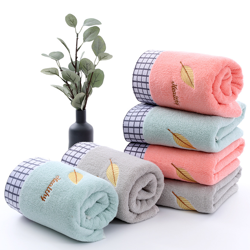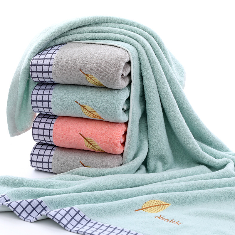 浴巾棉32股提花刺绣树叶浴巾70/140加厚成人家用吸水柔软浴巾