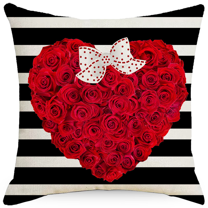 亚马逊玫瑰爱心抱枕套情人节字母情侣家居靠垫套沙发卧室靠枕跨境