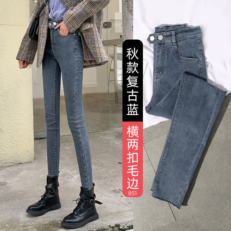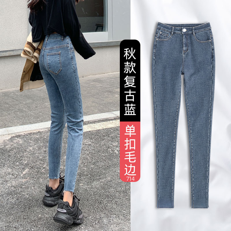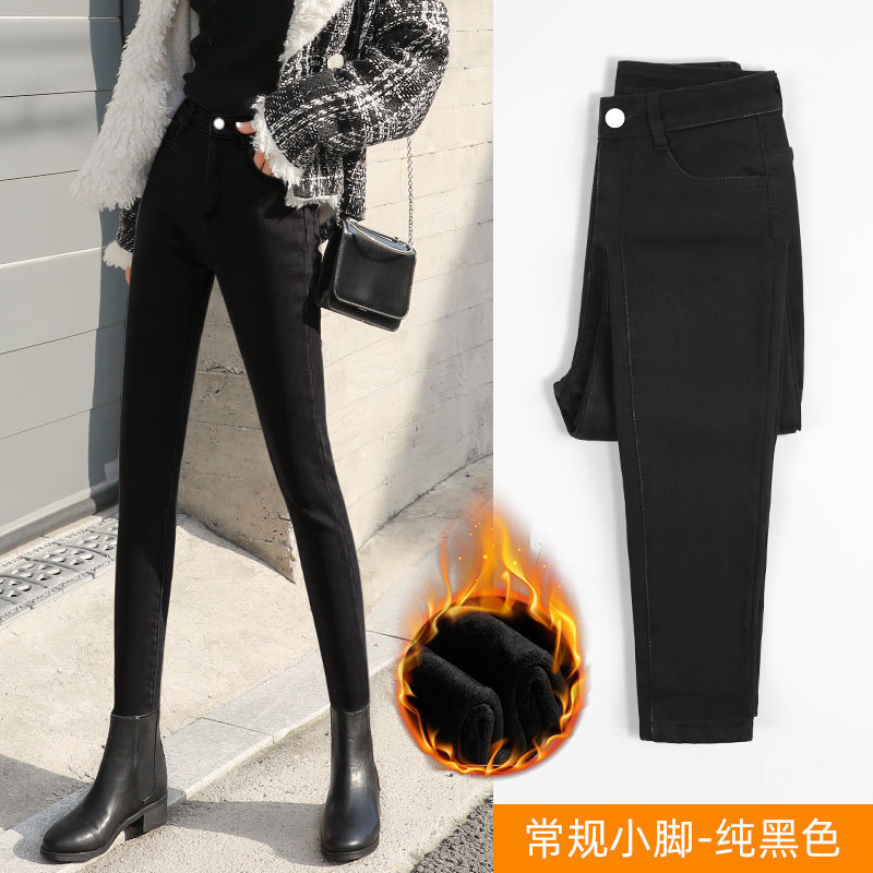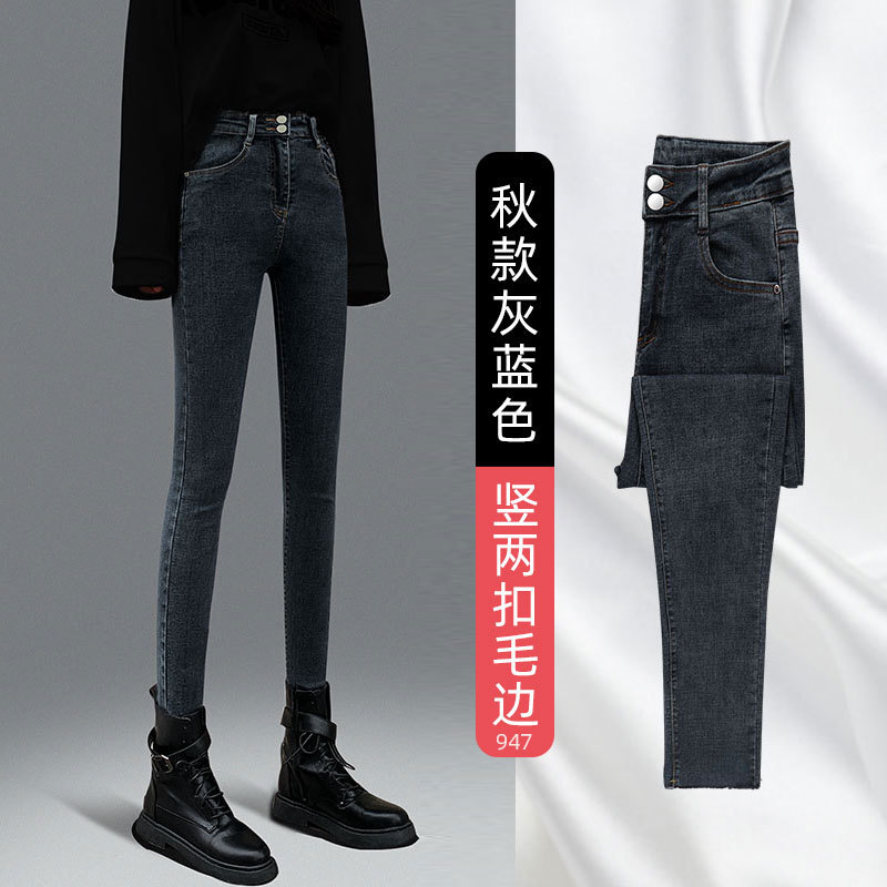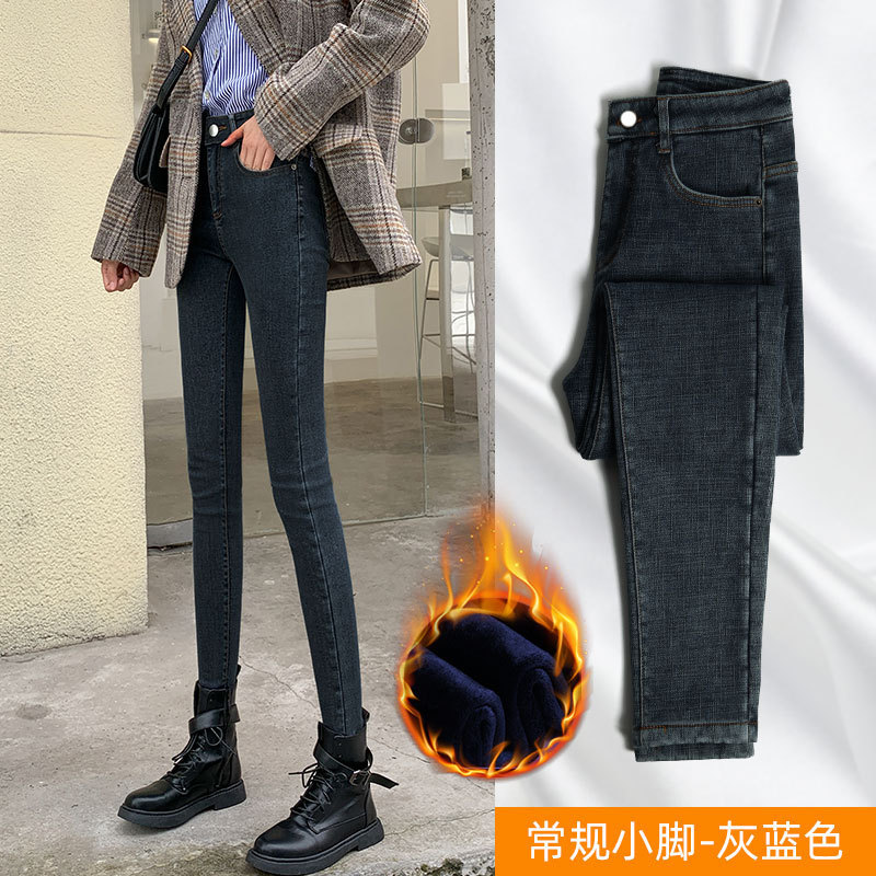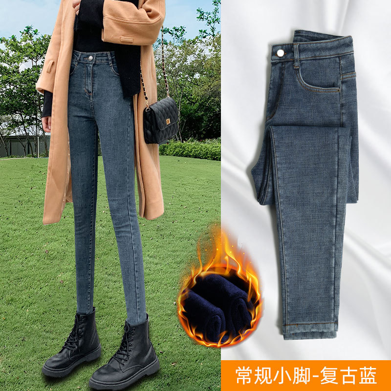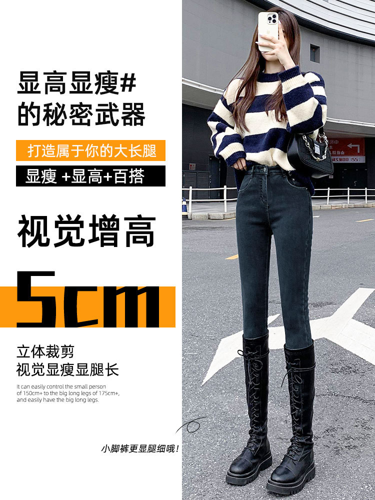 秋冬高腰加绒牛仔裤女2022年新款春秋季紧身修身显瘦小脚铅笔裤子