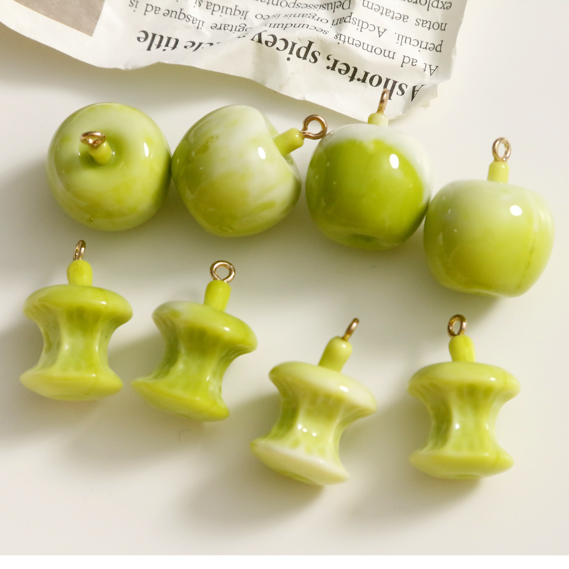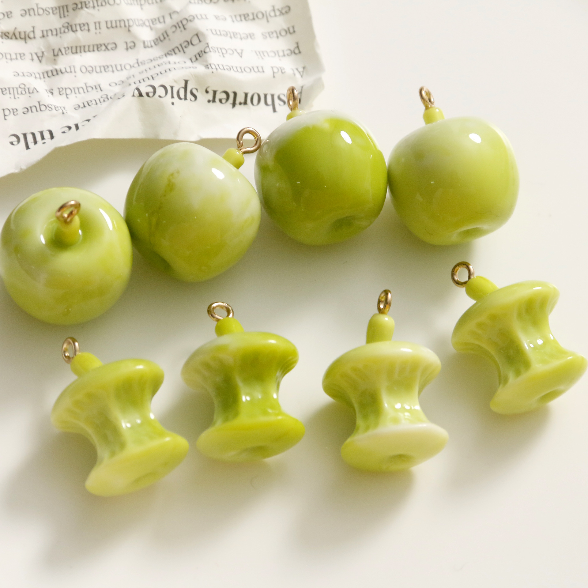 小红书同款仿真青苹果吊坠diy树脂配件耳饰发夹手机壳材料批发