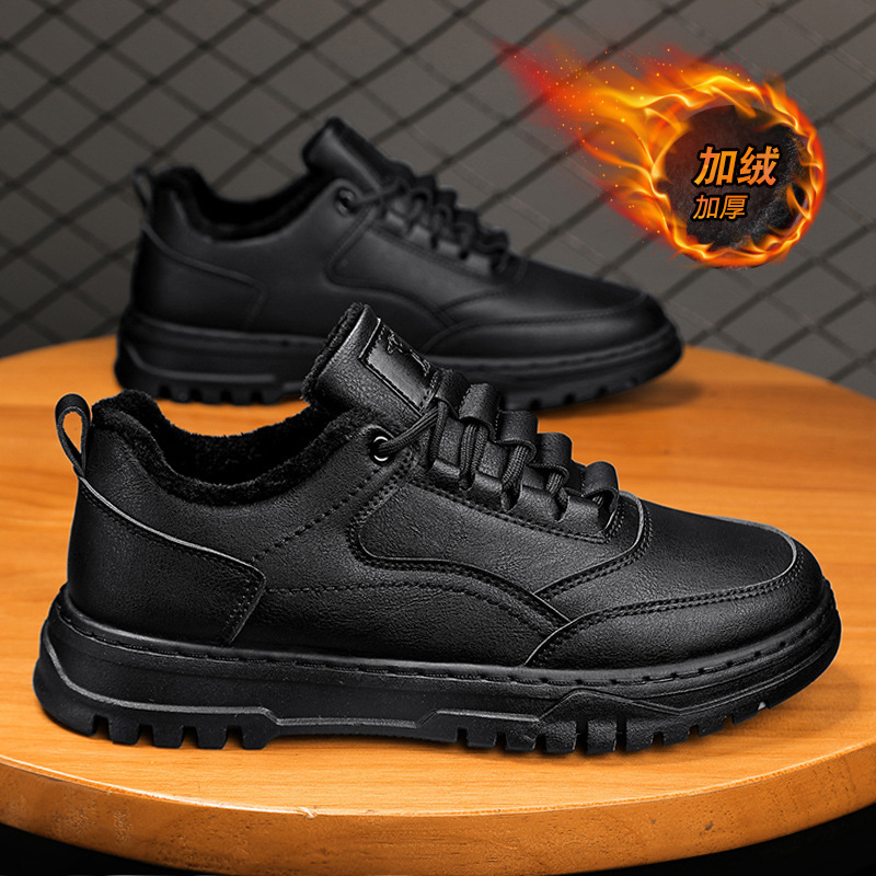 秋季新款男鞋韩版男士休闲板鞋黑色PU皮鞋潮流学生运动鞋系带潮鞋
