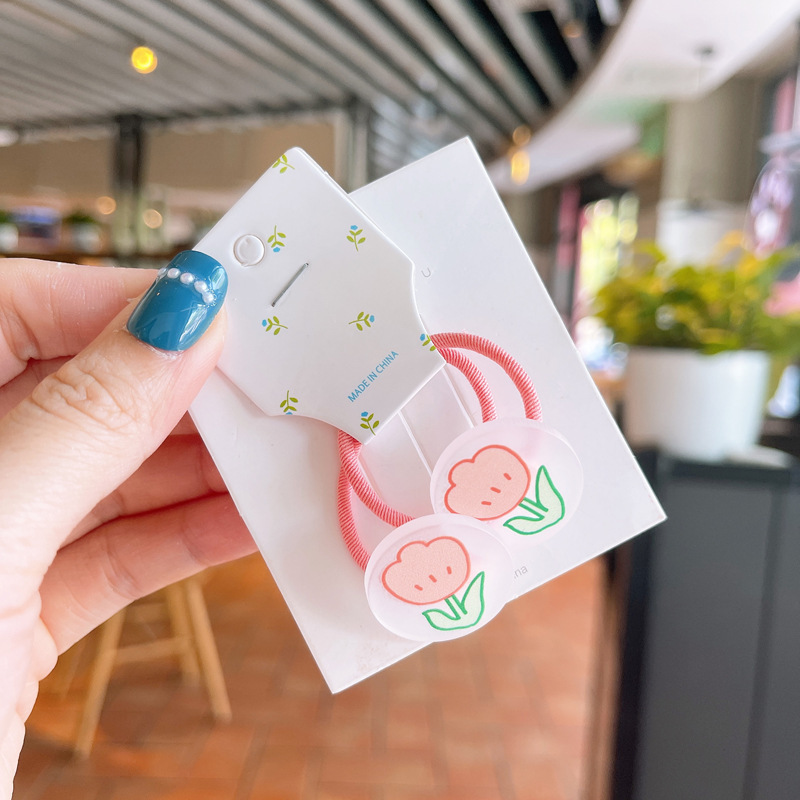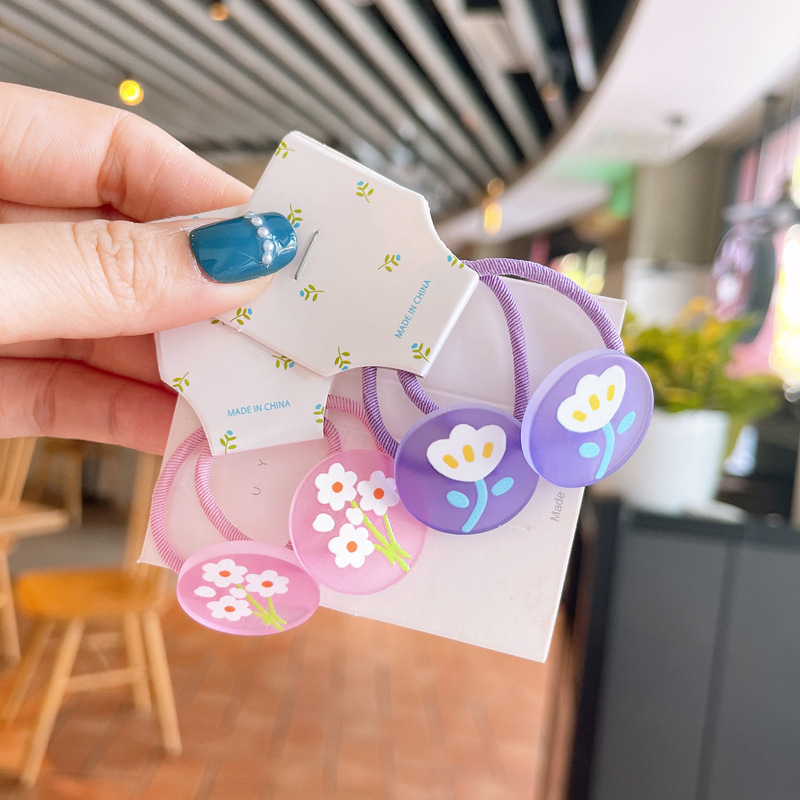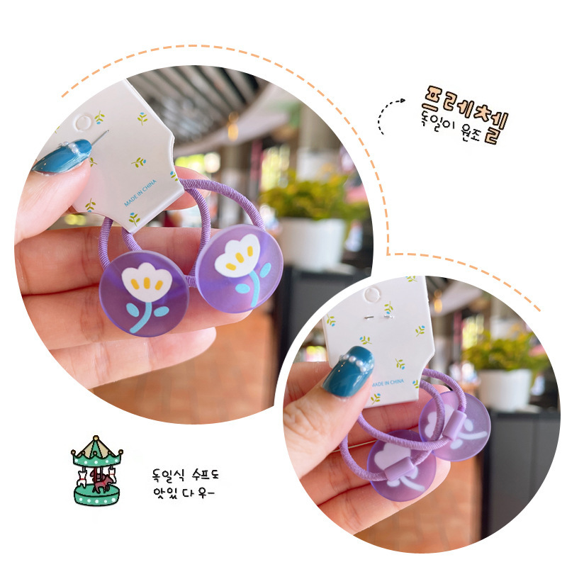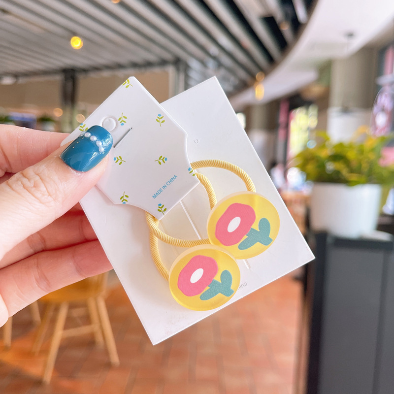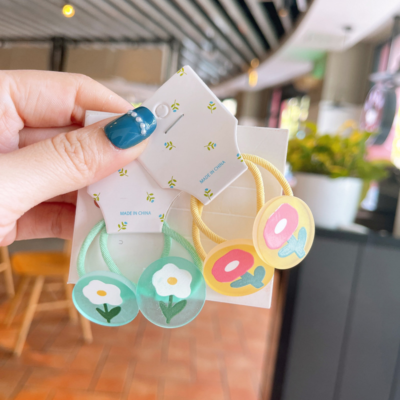 韩版儿童涂鸦花朵发绳可爱小女孩糖果色发圈宝宝不伤发对装皮筋