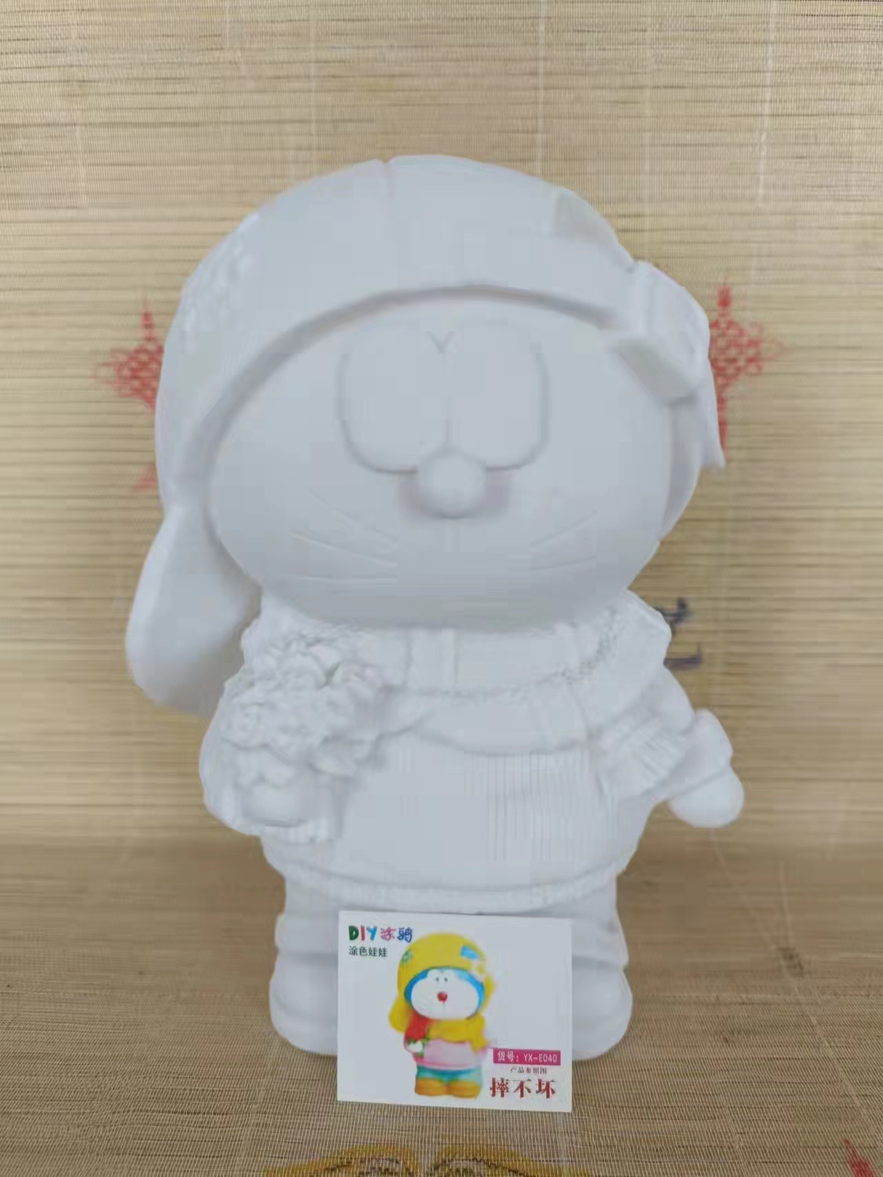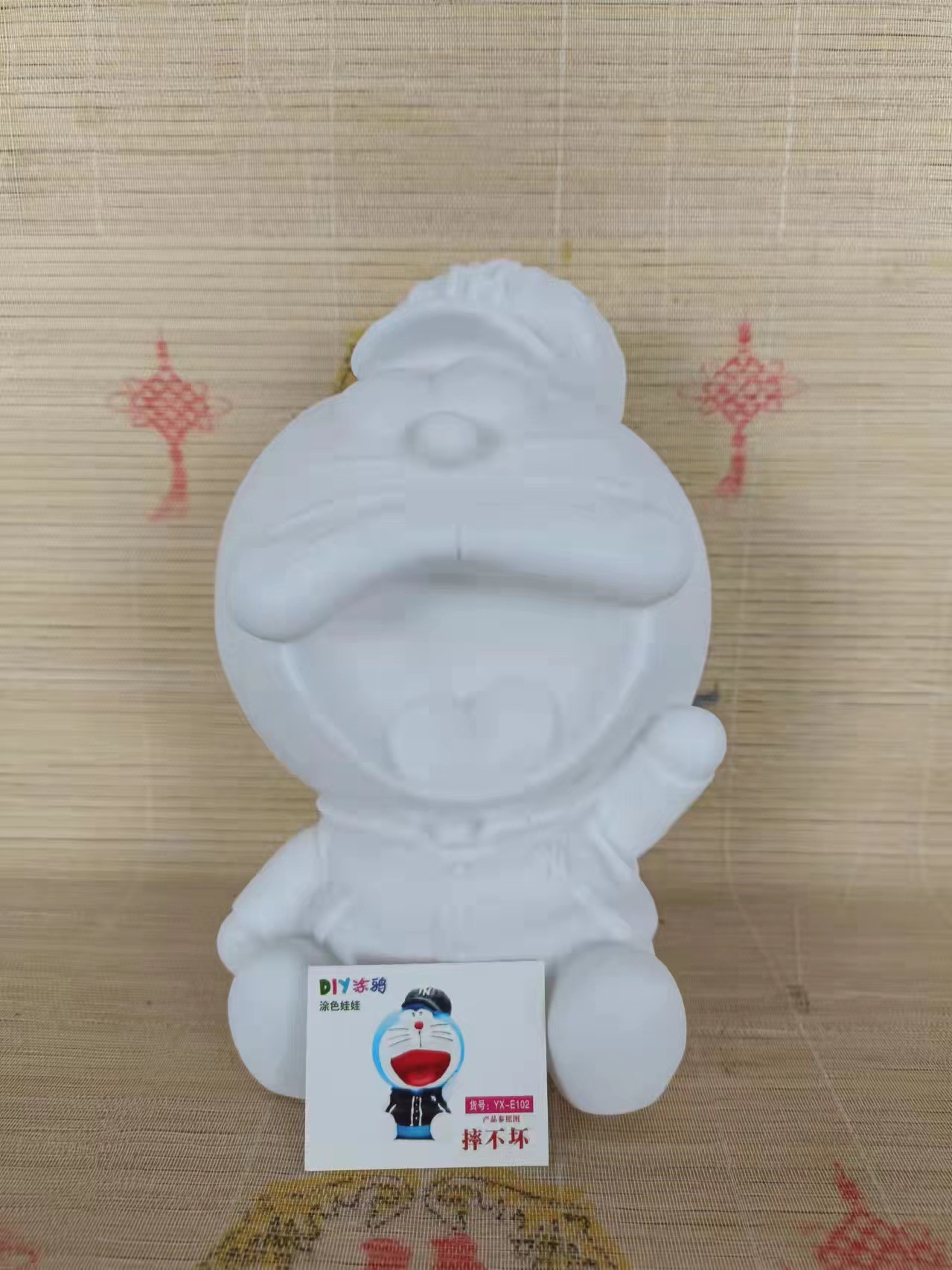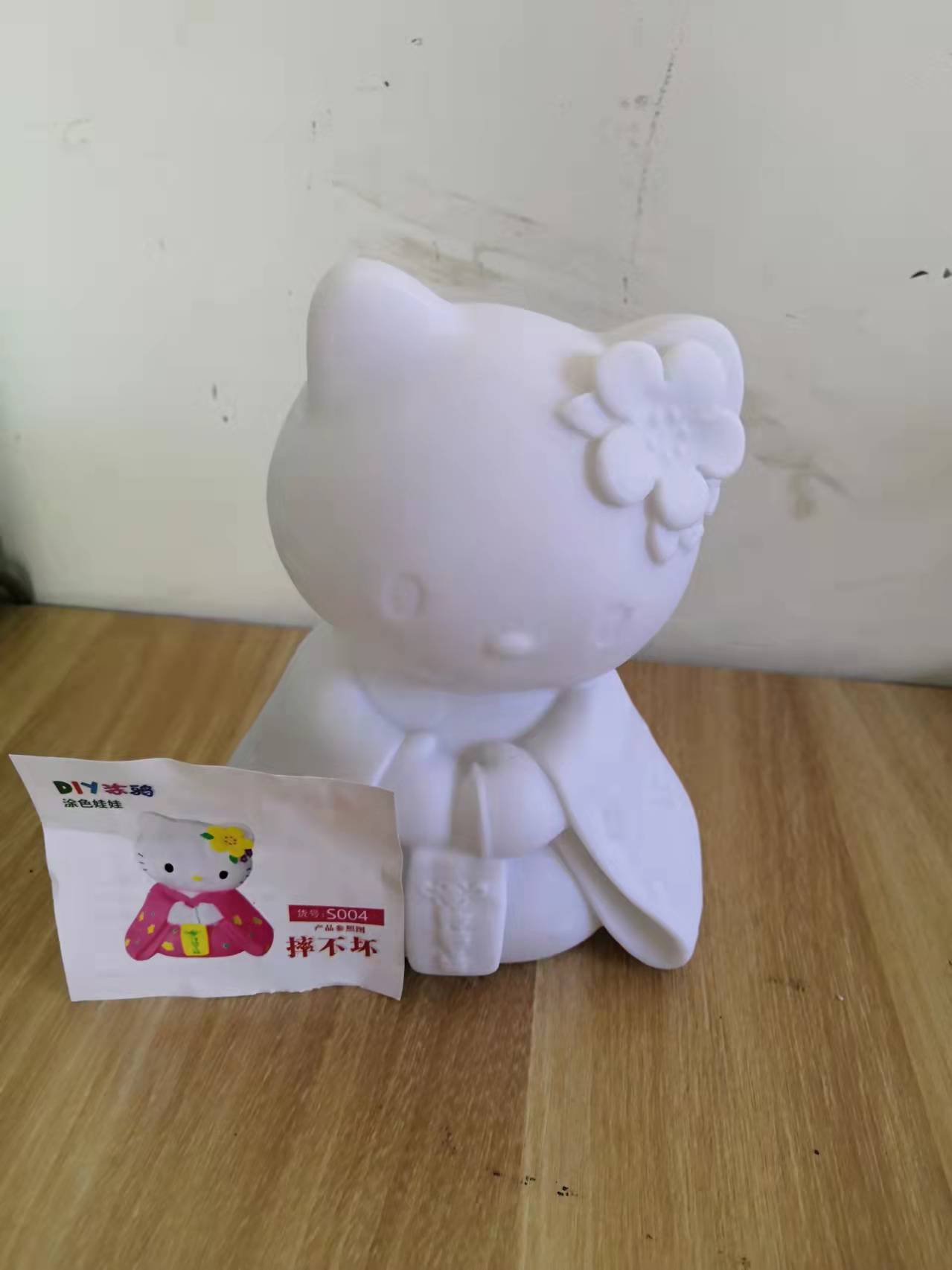 diy手工上色玩具非石膏娃娃涂色公仔吉祥猫咪搪胶彩绘存钱罐白胚