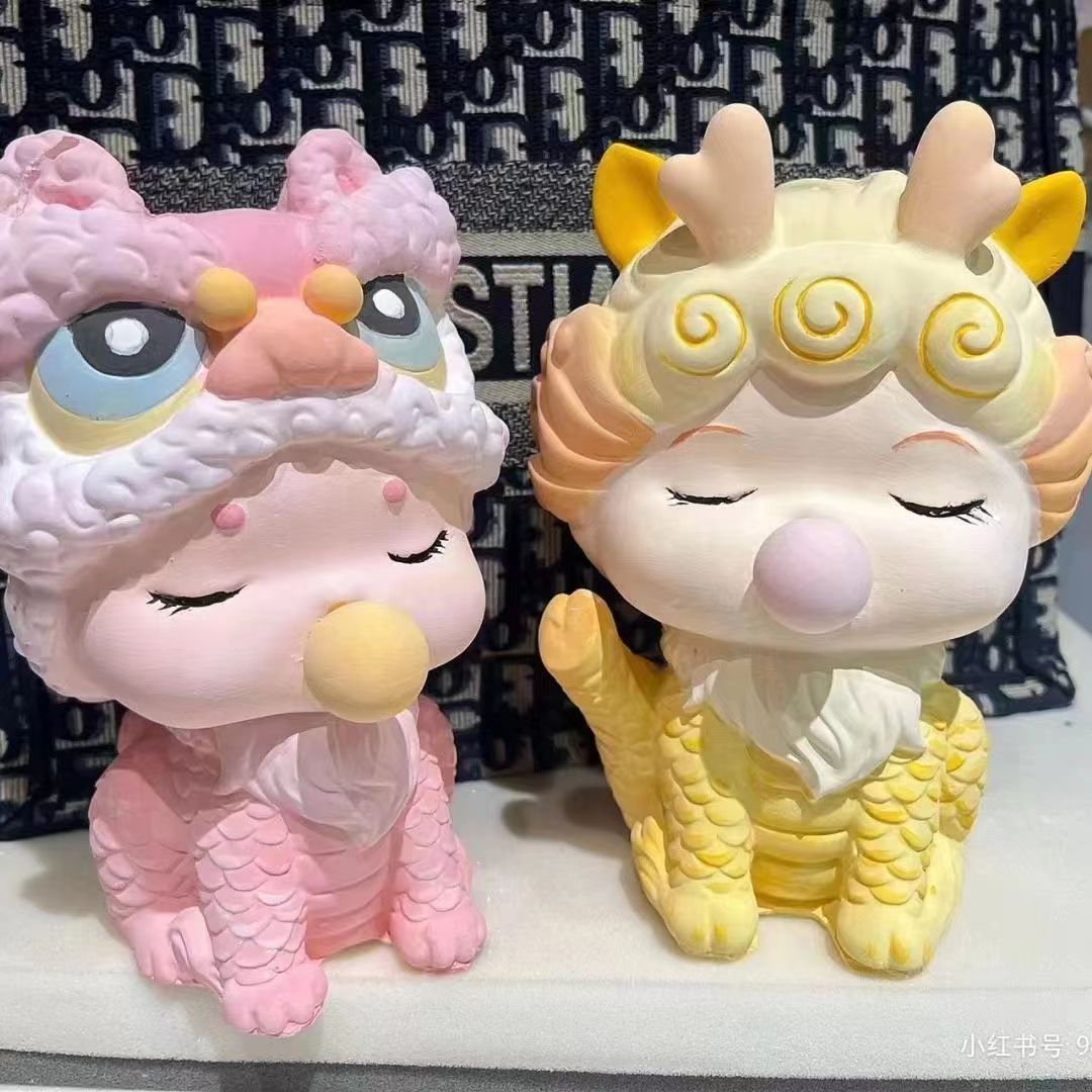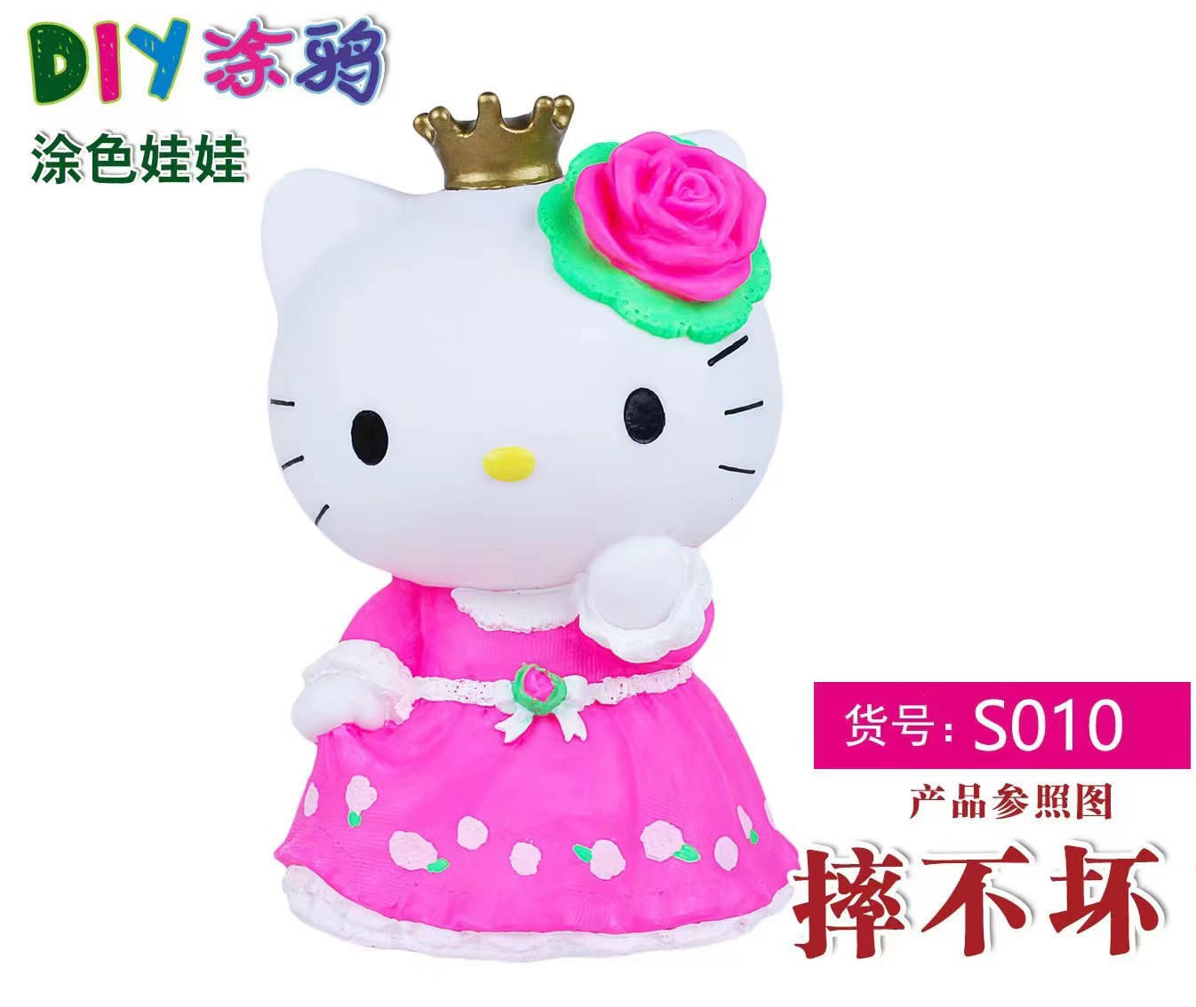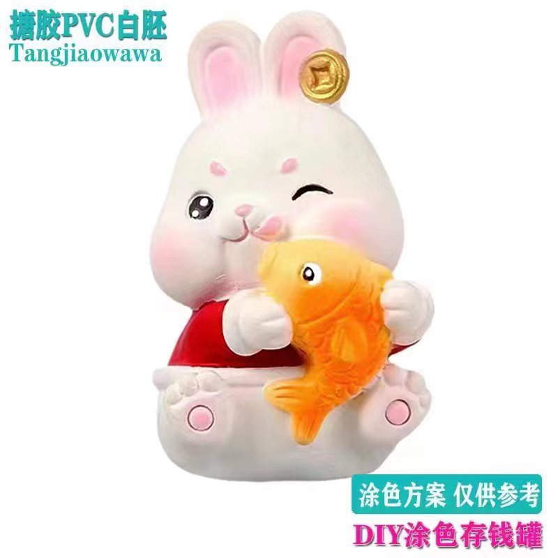 diy手工上色玩具非石膏娃娃涂色公仔吉祥猫咪搪胶彩绘存钱罐白胚