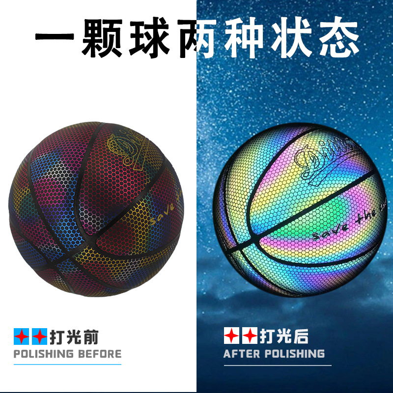反光夜光发光篮球 炫彩7号成人儿童PU耐磨球批发生日礼物反光篮球