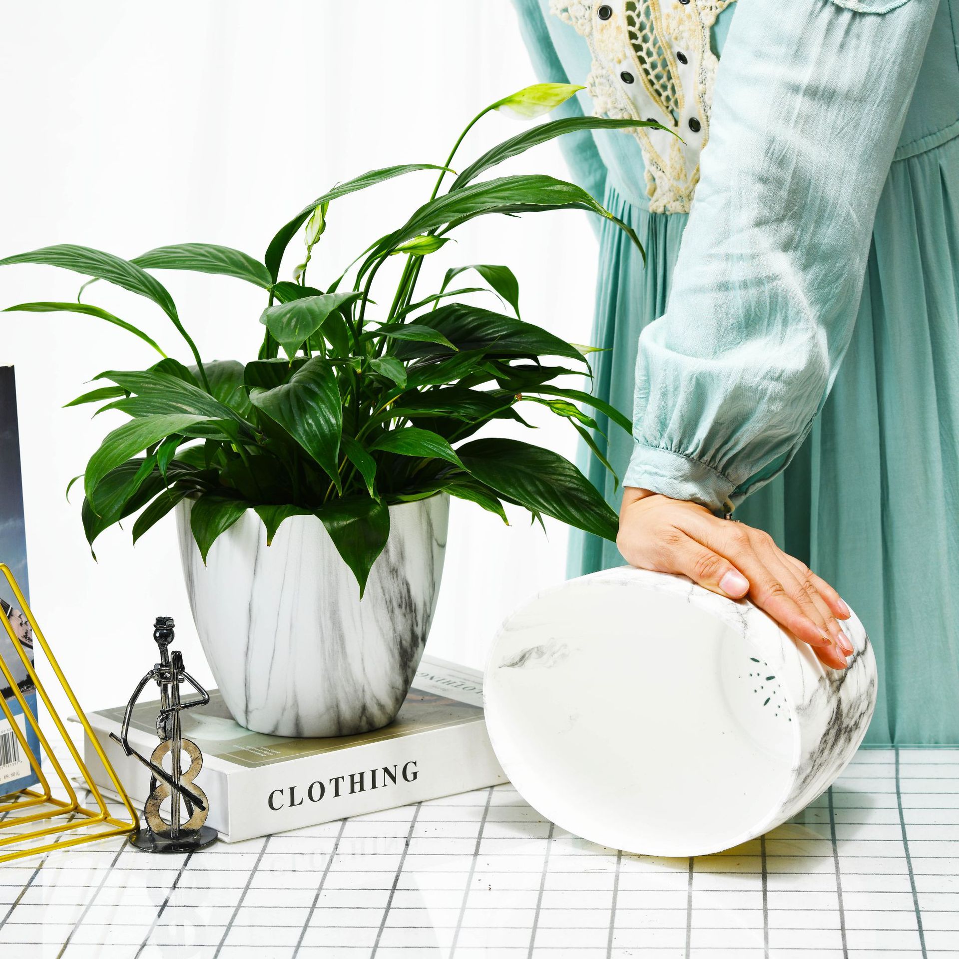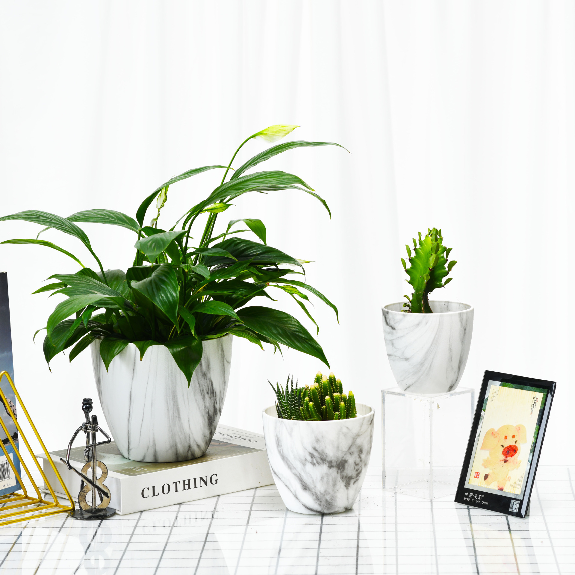 Nordic Simple round imitation Marble Can Be Equipped with Plastic Flowerpot Multi-Size Combination Indoor Desktop Gardening Basin Set