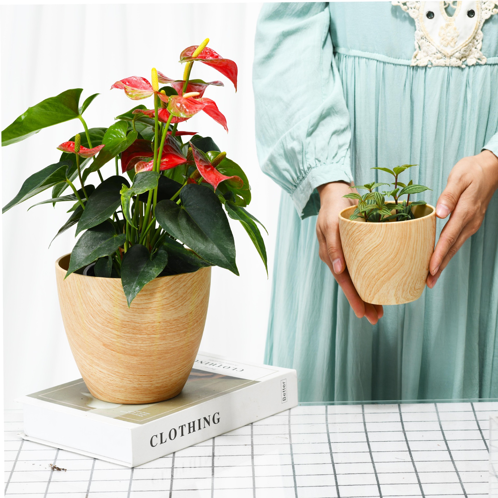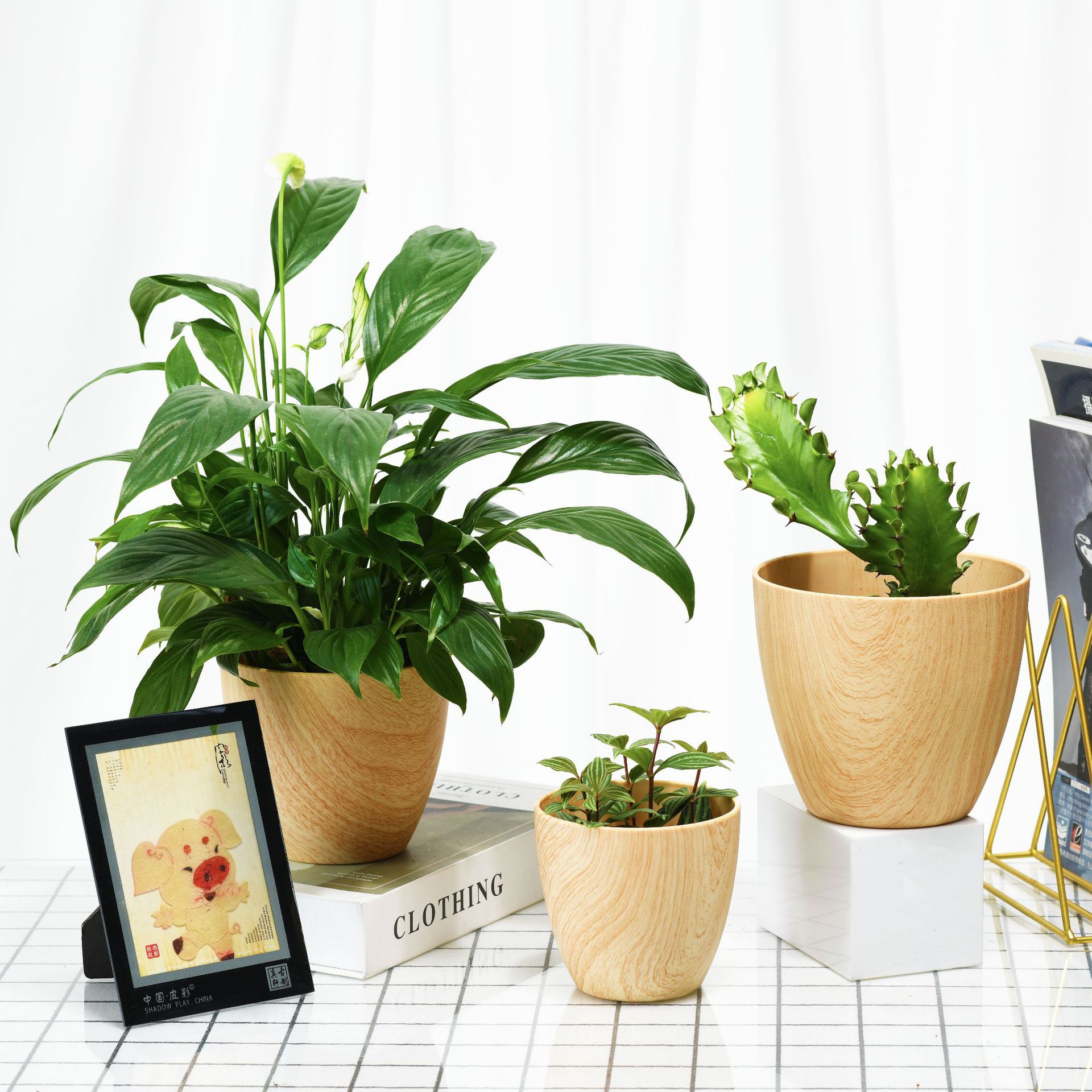 北欧简约圆形仿木纹可配托塑料花盆多尺寸组合室内桌面绿植园艺盆
