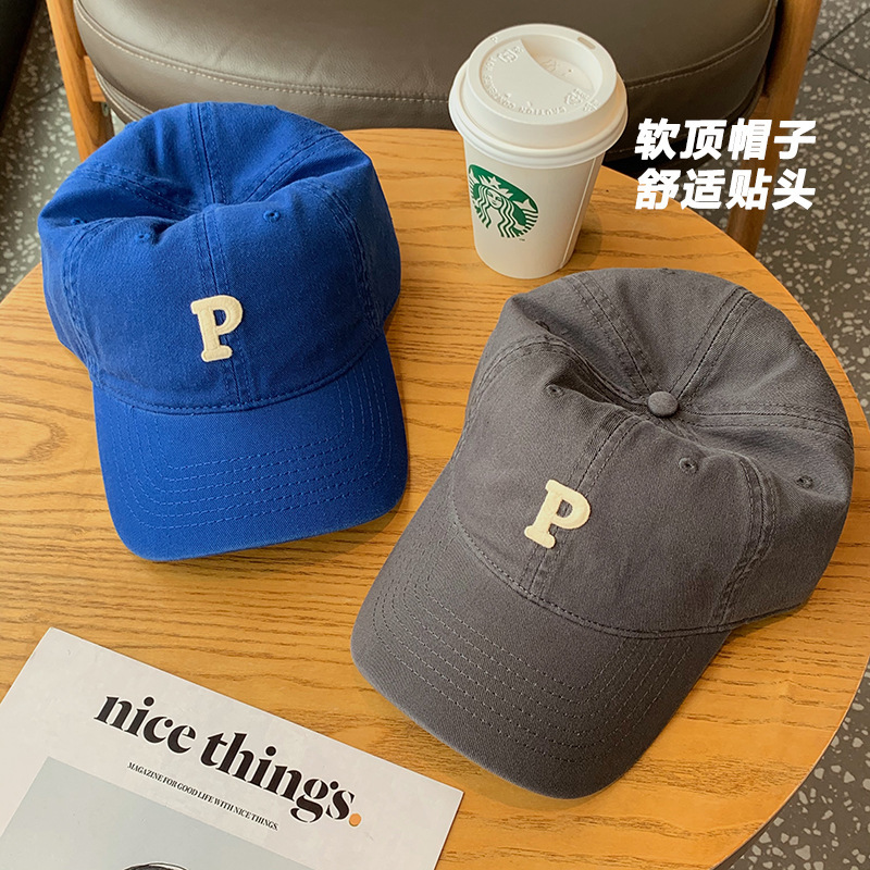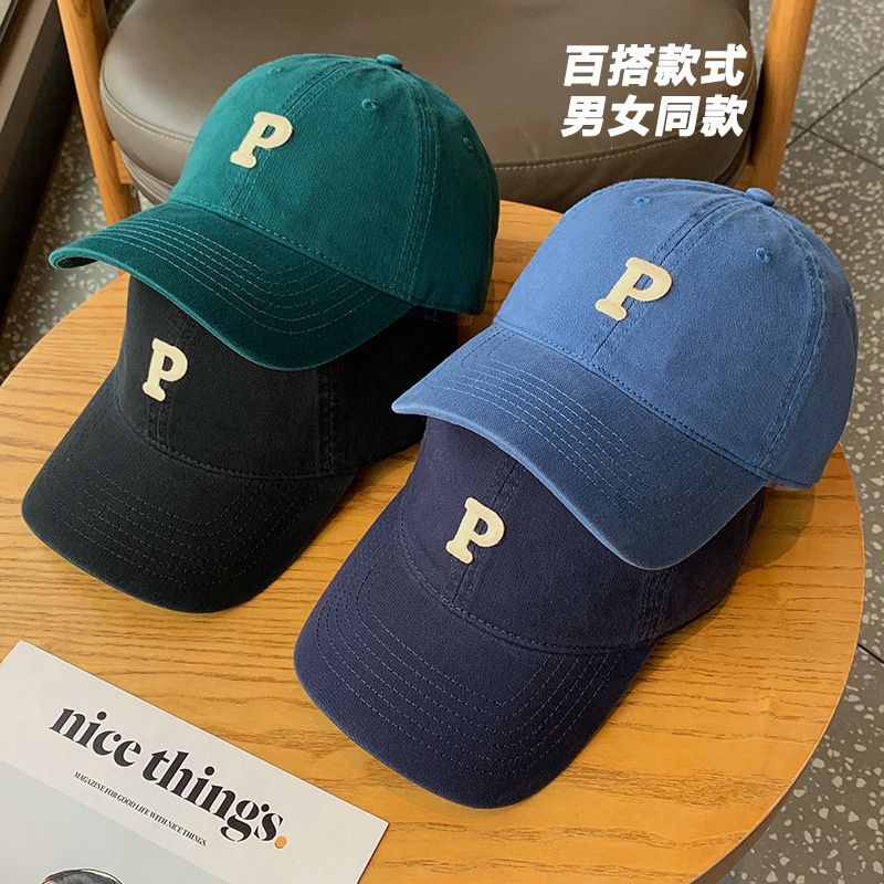 P标字母百搭鸭舌帽男女同款中性棒球帽高品质韩版有型运动帽子潮