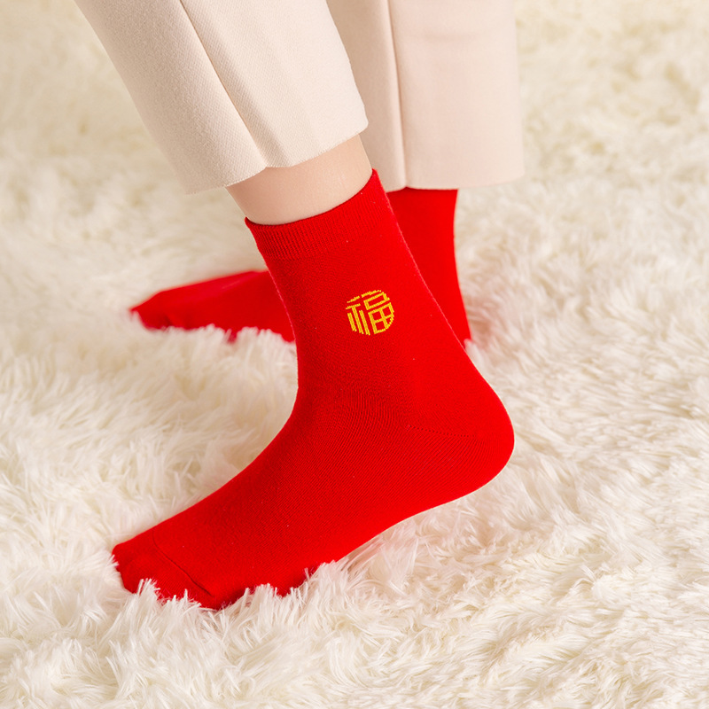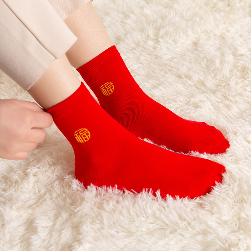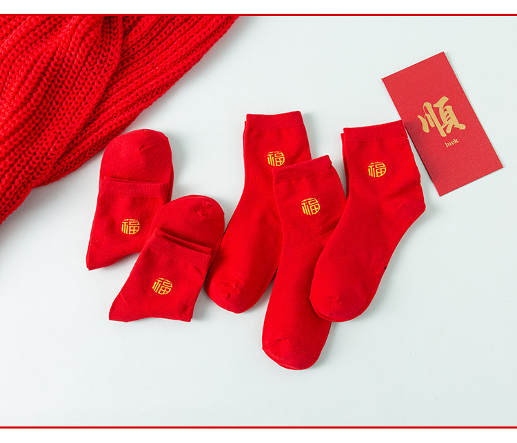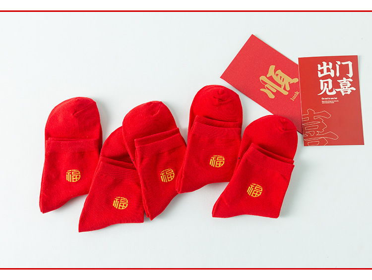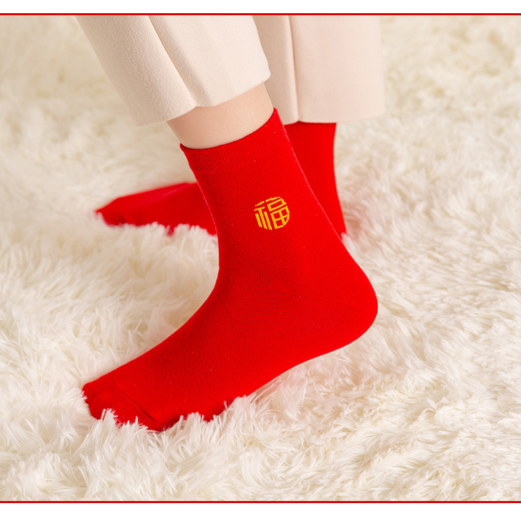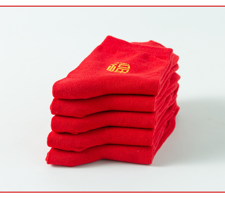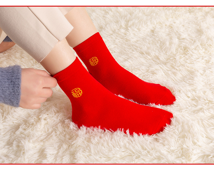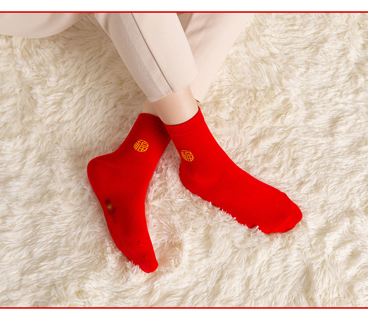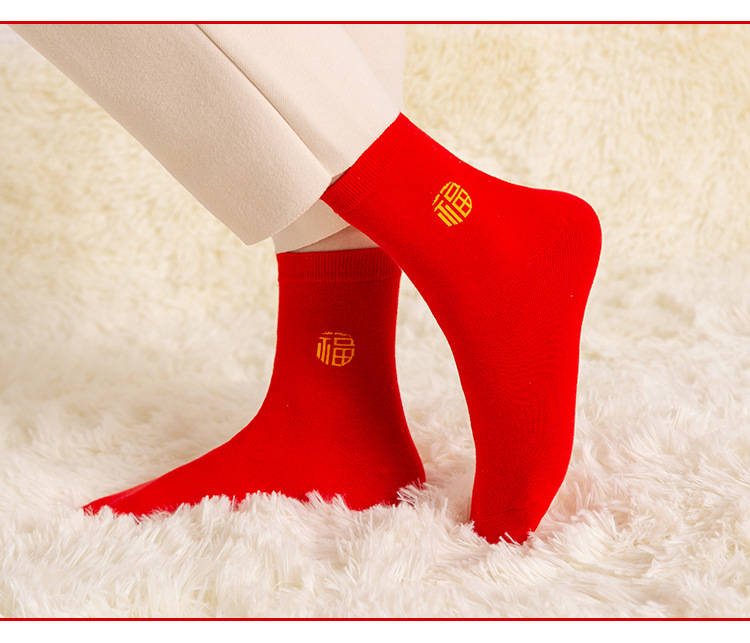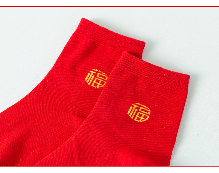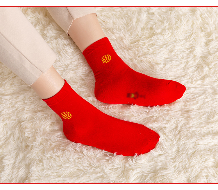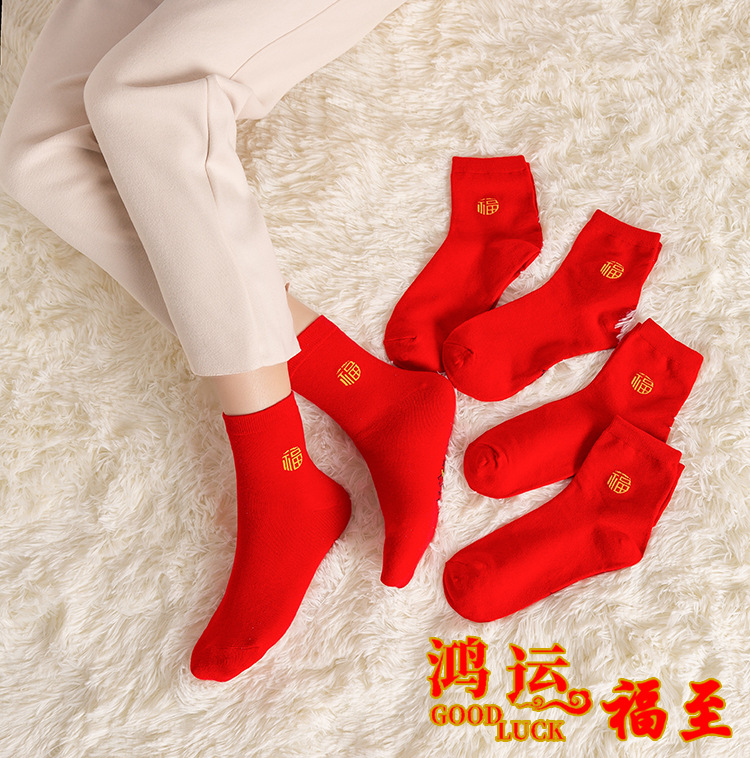 红袜子批发中筒棉袜秋冬款福字大红袜男女情侣喜庆本命年红色袜子