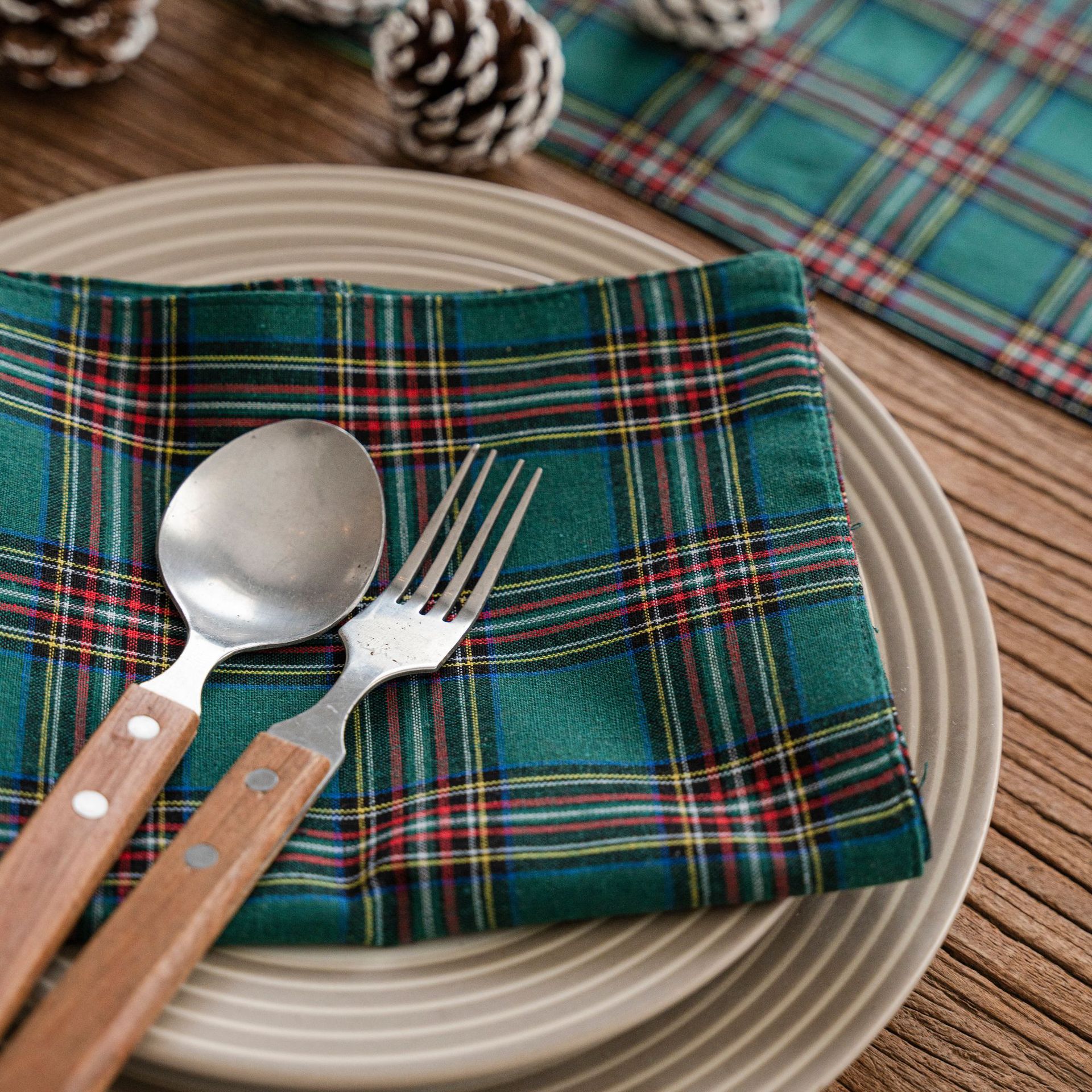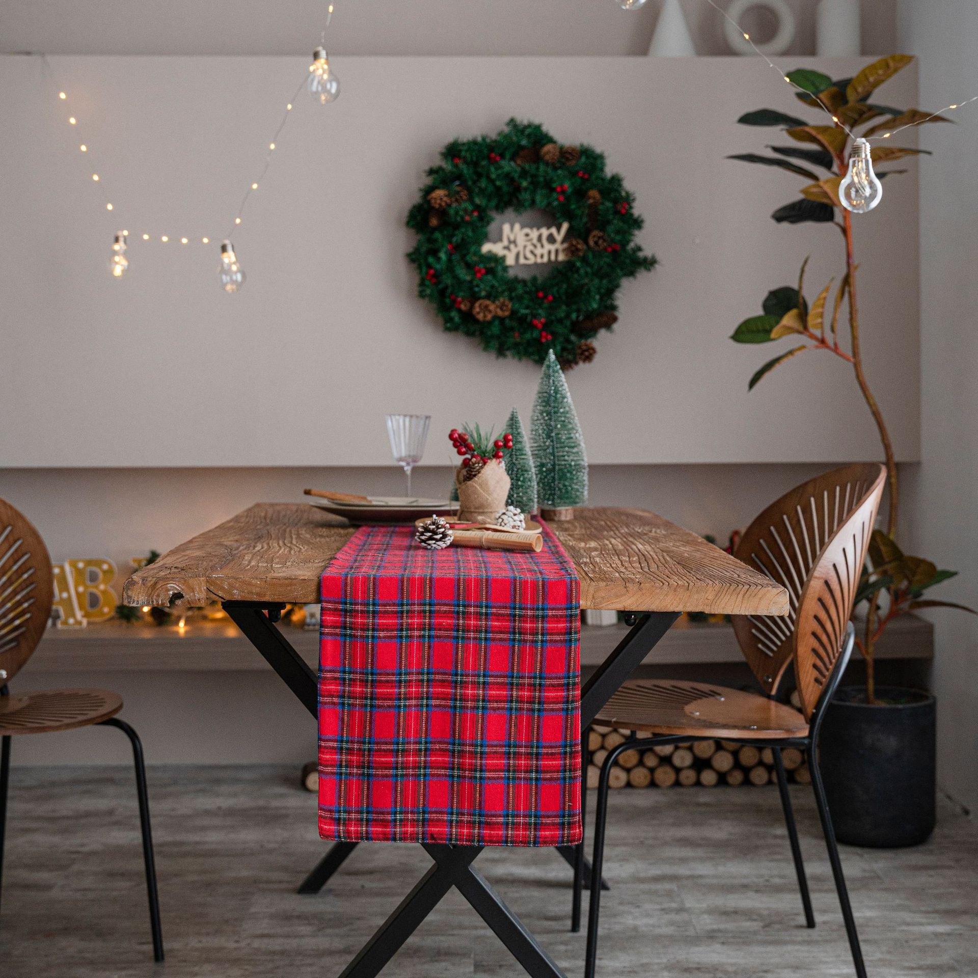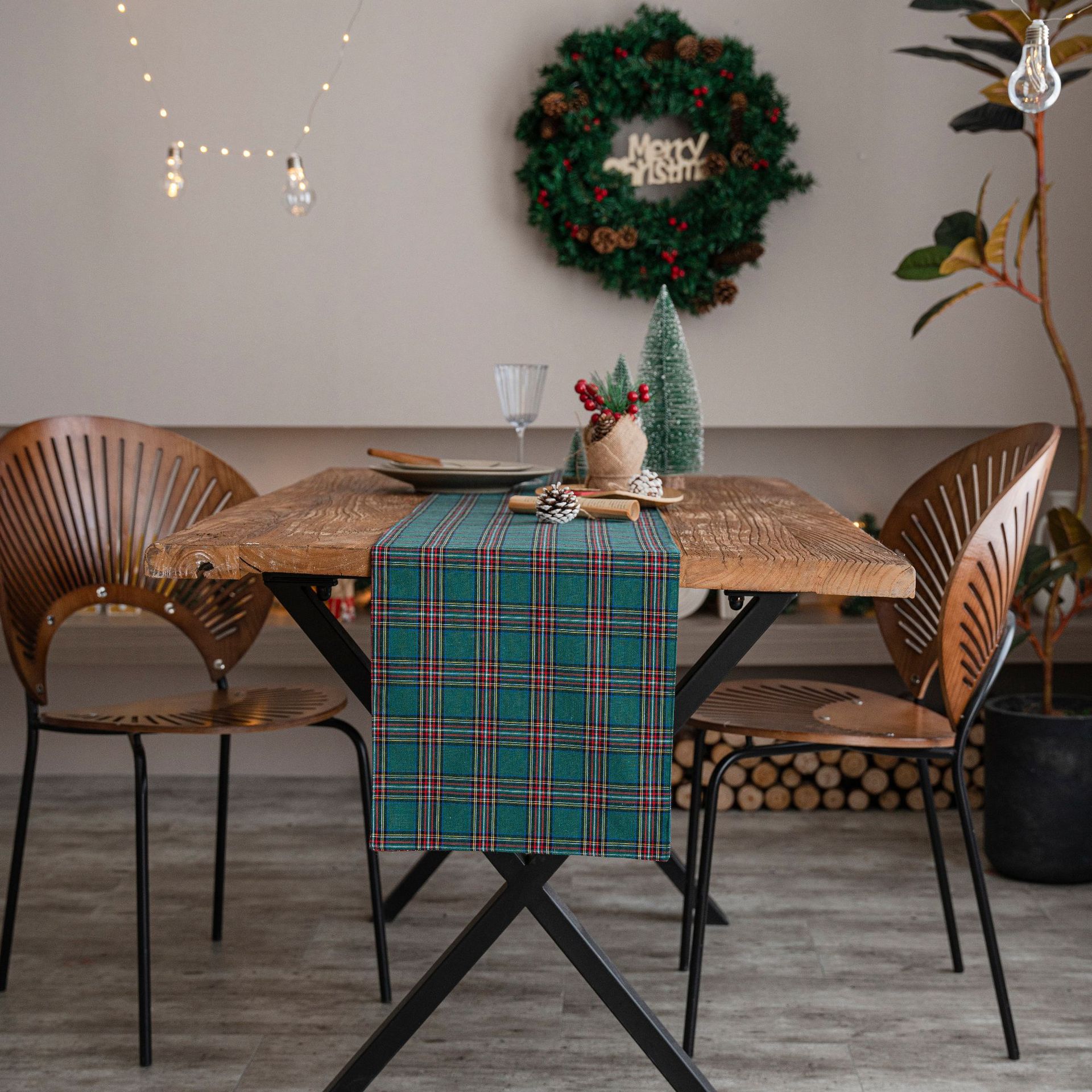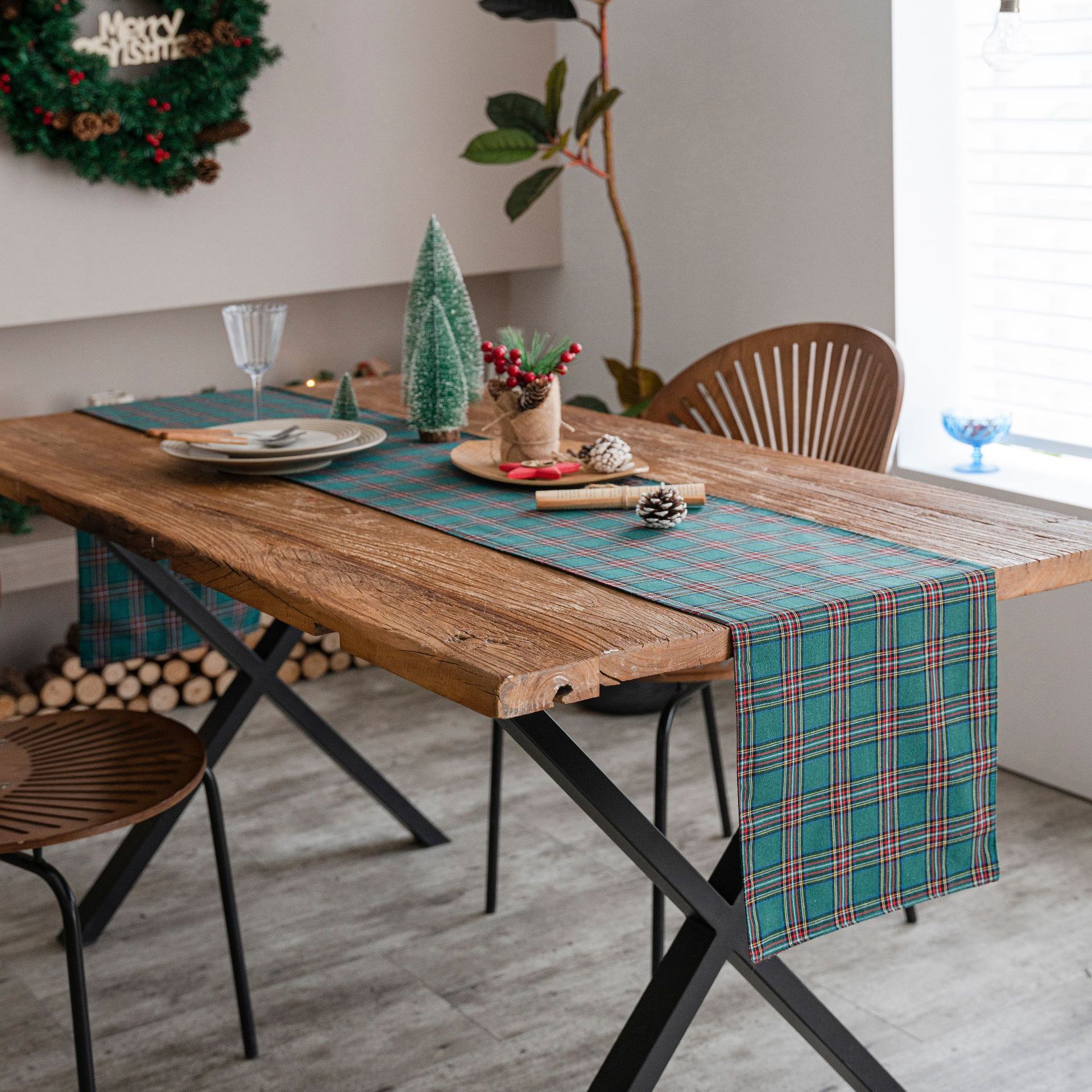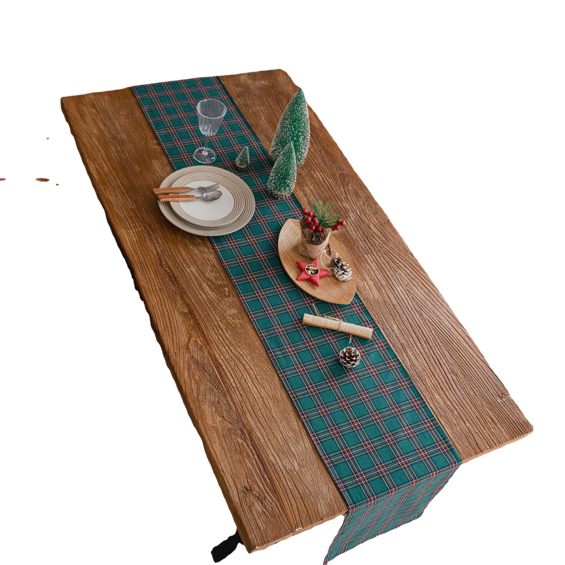 聚家圣诞格子桌旗色织工艺 茶几美式乡村简约茶几电视柜