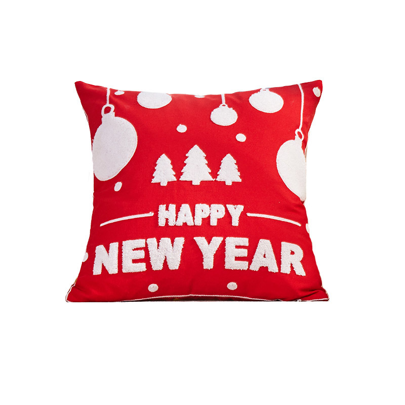 北欧风简约红色圣诞抱枕套 厂家直销ins棉麻毛巾绣床头抱枕靠垫套