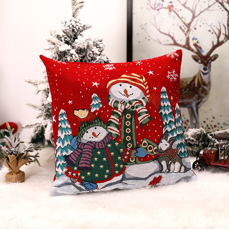 跨境圣诞节装饰品创意抱枕套床头靠枕圣诞老人提花沙发抱枕套批发