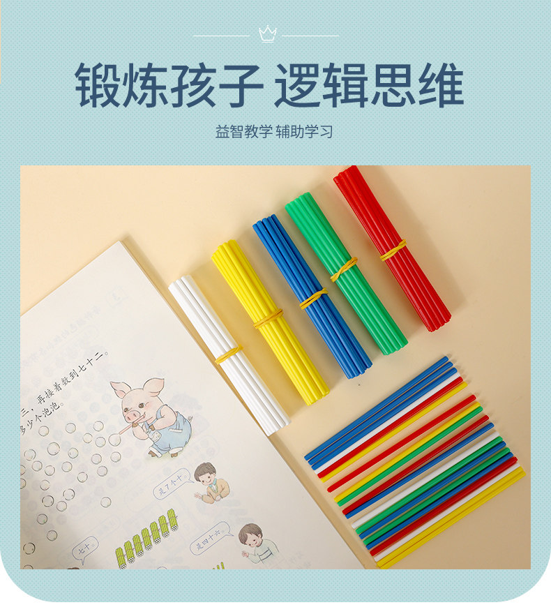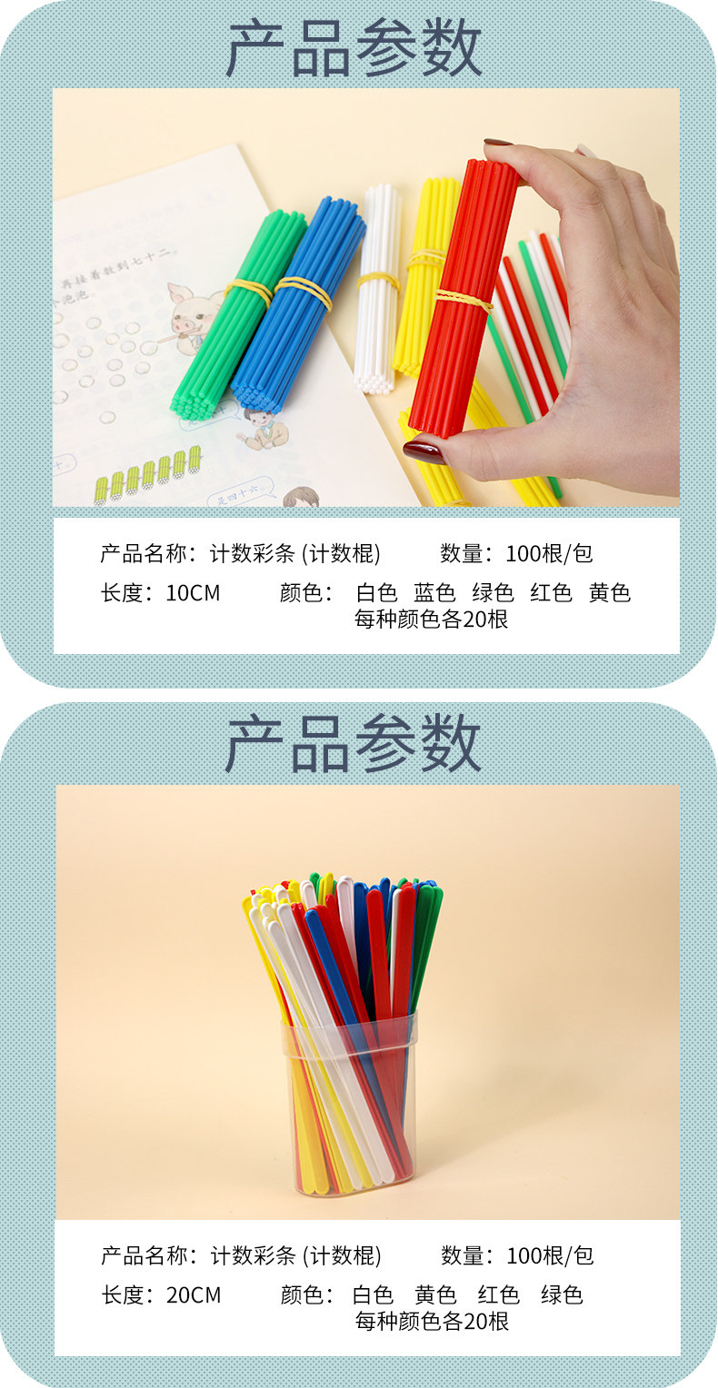 彩色计数棒棍小学数学100根 塑料小球 幼儿园早教计数卡片算术学