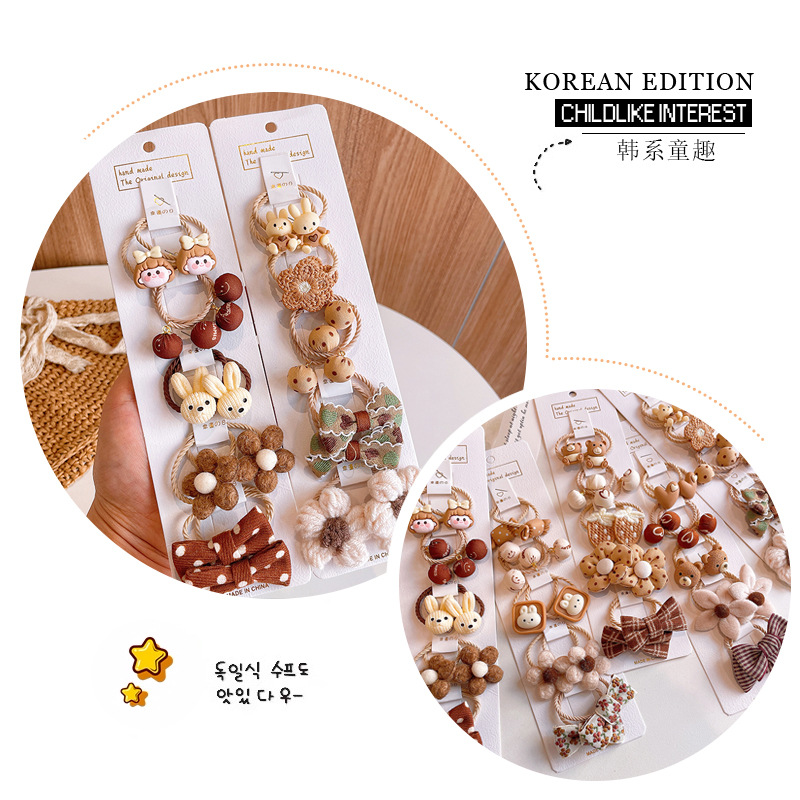 甜美奶咖色宝宝小皮筋不伤发对装花朵蝴蝶结头绳新女童扎揪揪发圈