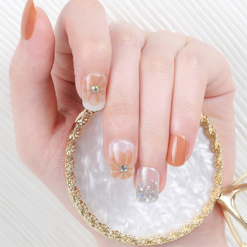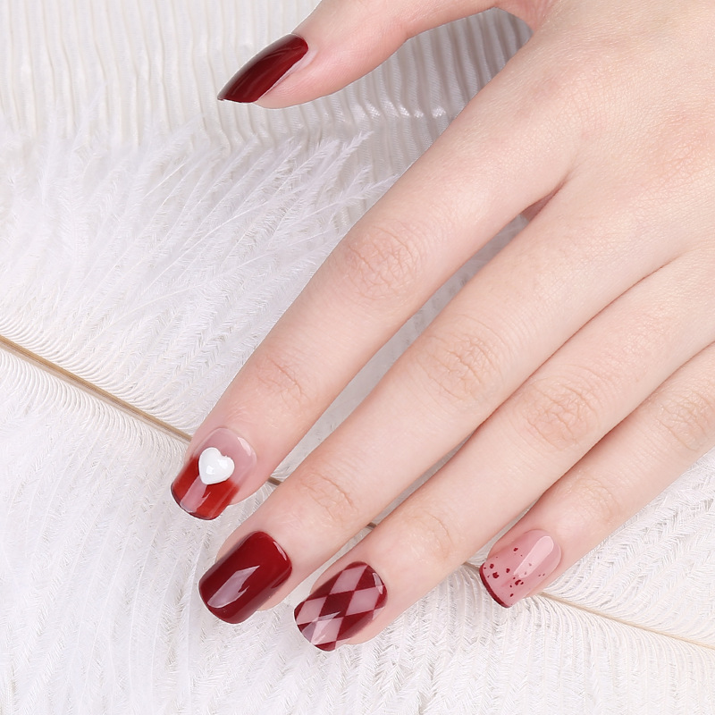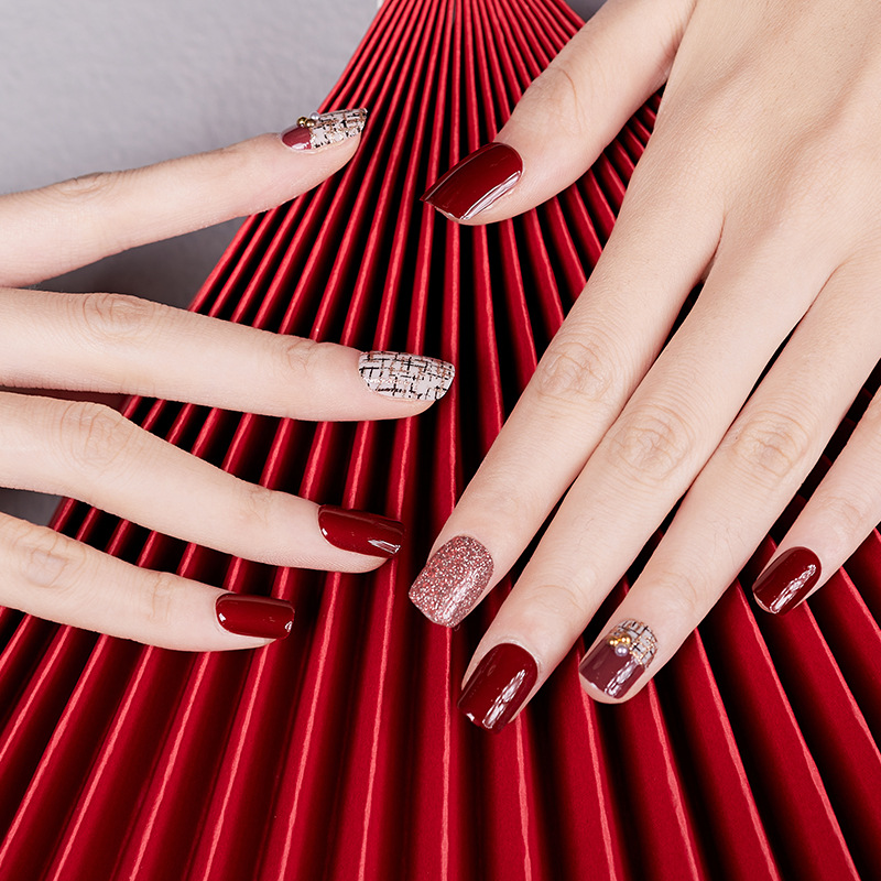 纯手工穿戴甲成品秋日短款美甲穿戴式高级感带钻假指甲中国红