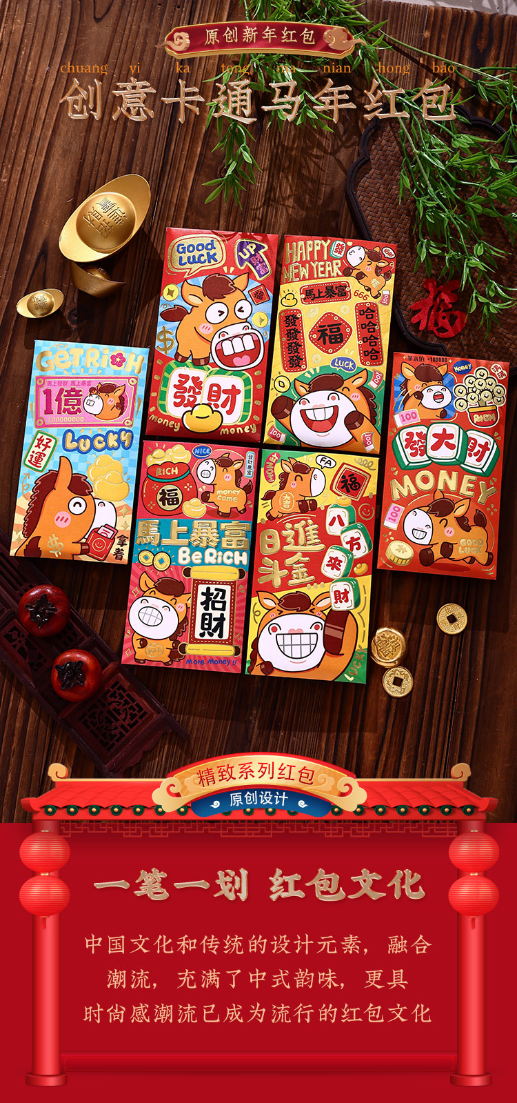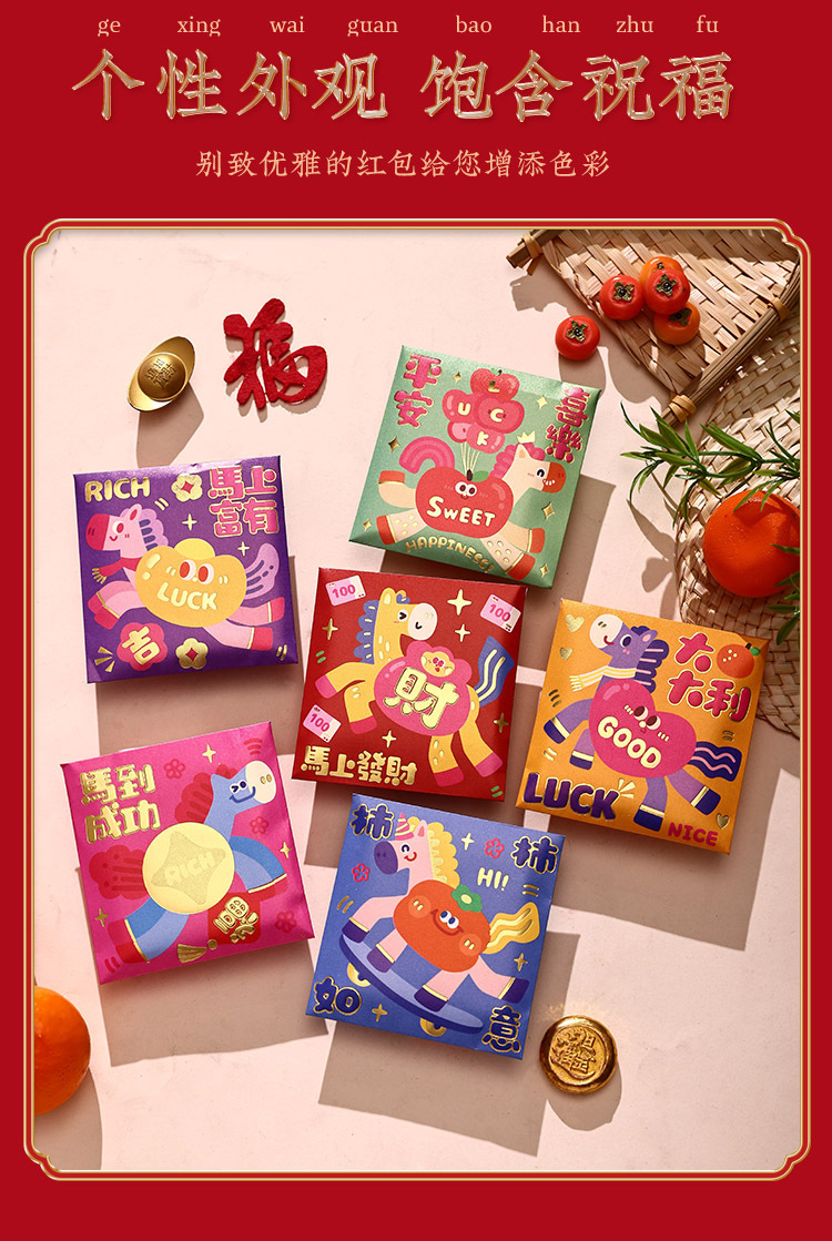 2026马年春节卡通红包批发个性创意新年压岁利是封可爱恭喜发财