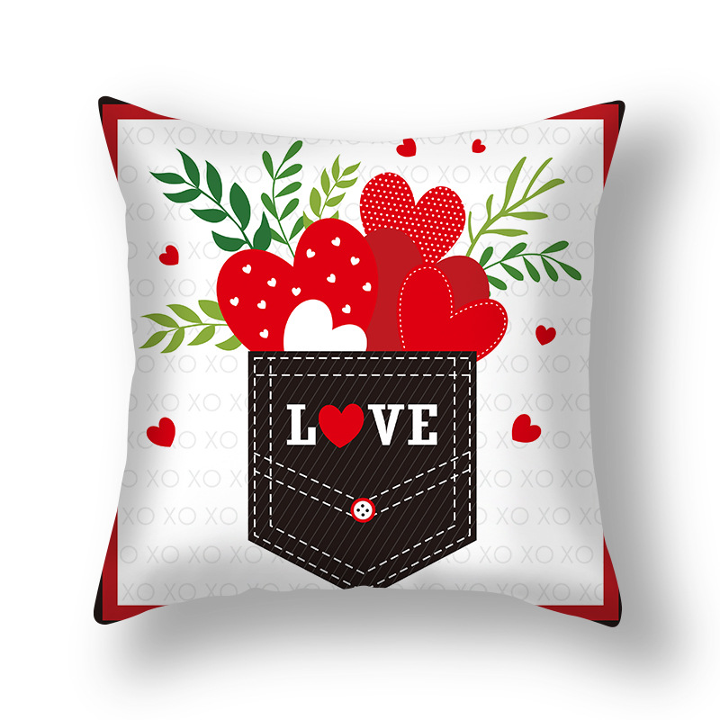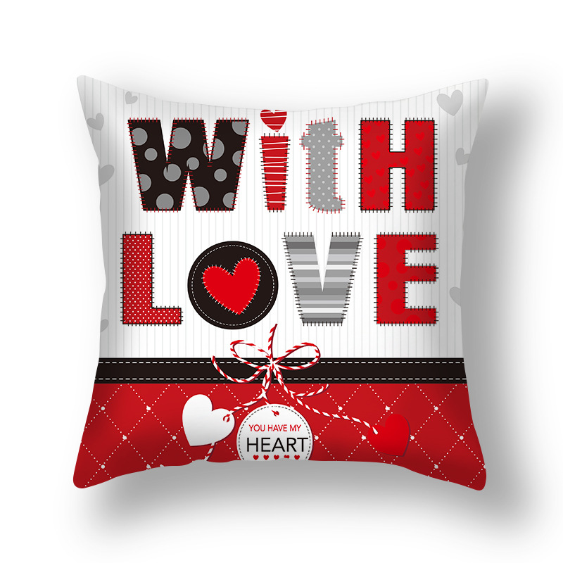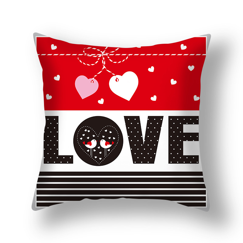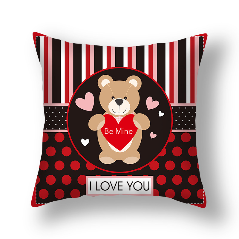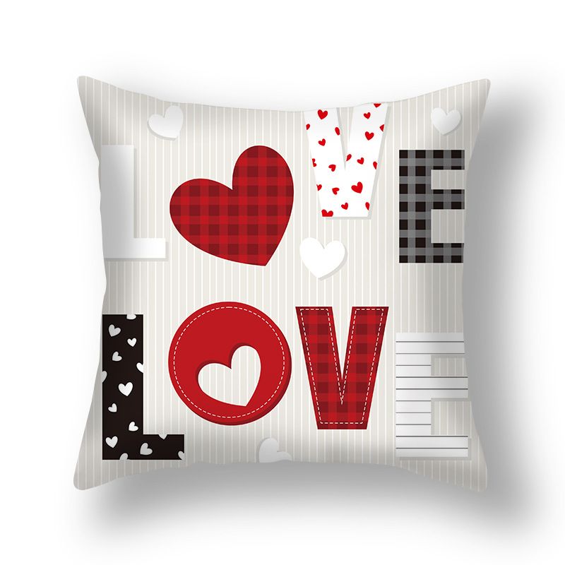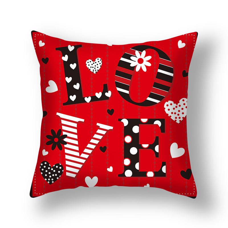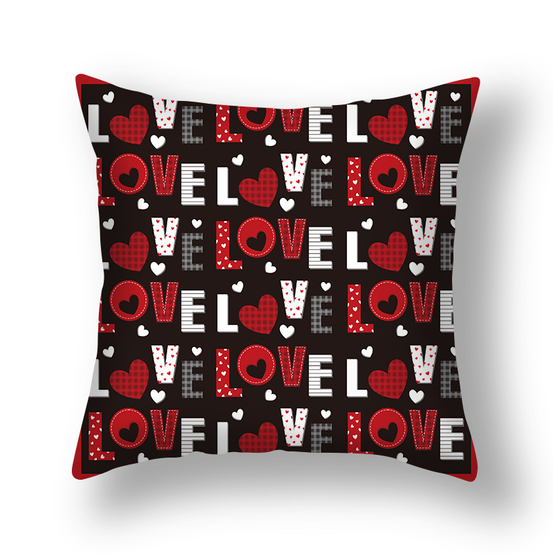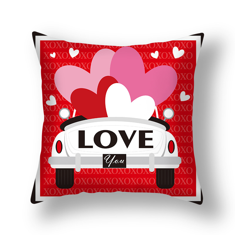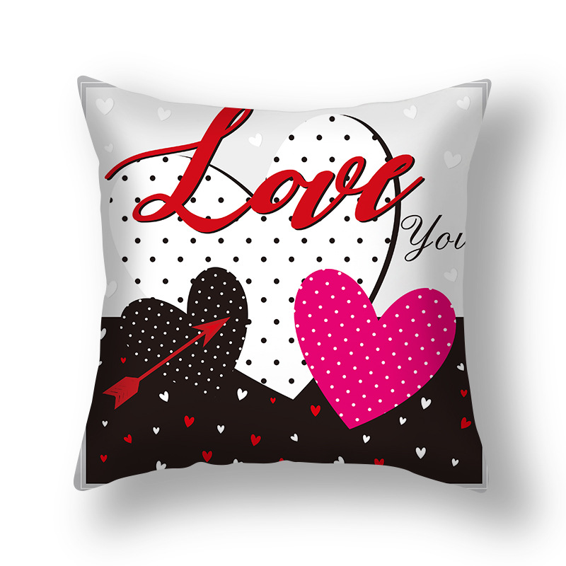 情人节系列卡通抱枕跨境热销短毛绒印花靠枕个性字母抱枕套批发
