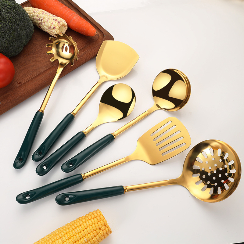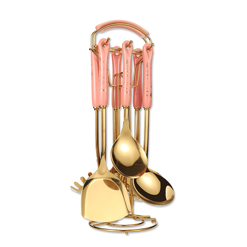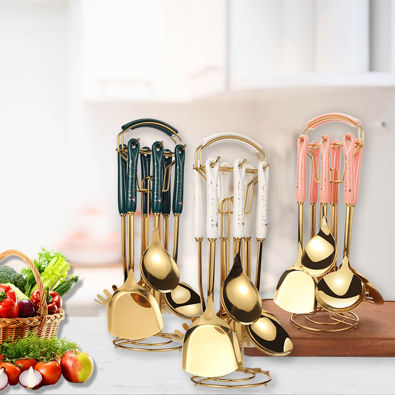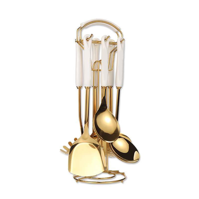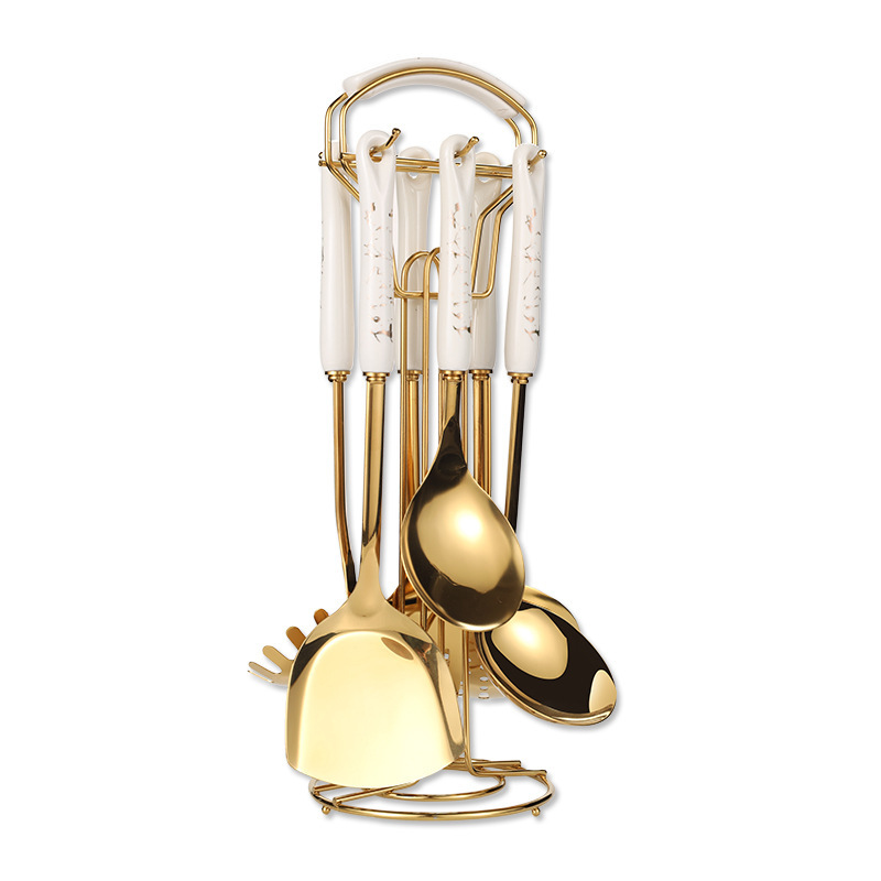 厨具套装不锈钢厨具铲勺七件套陶瓷手柄不锈钢锅铲汤勺厨房用品