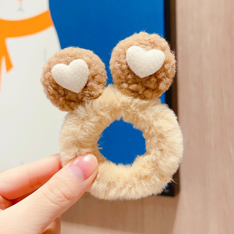 韩版秋冬新款毛绒熊耳朵发圈兔子发绳少女马尾皮筋可爱卡通皮套