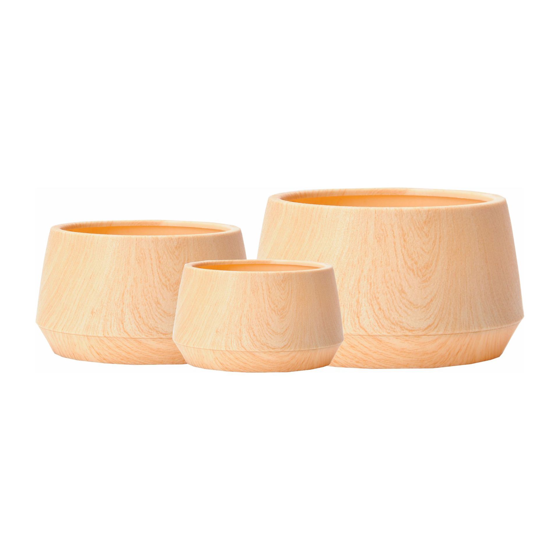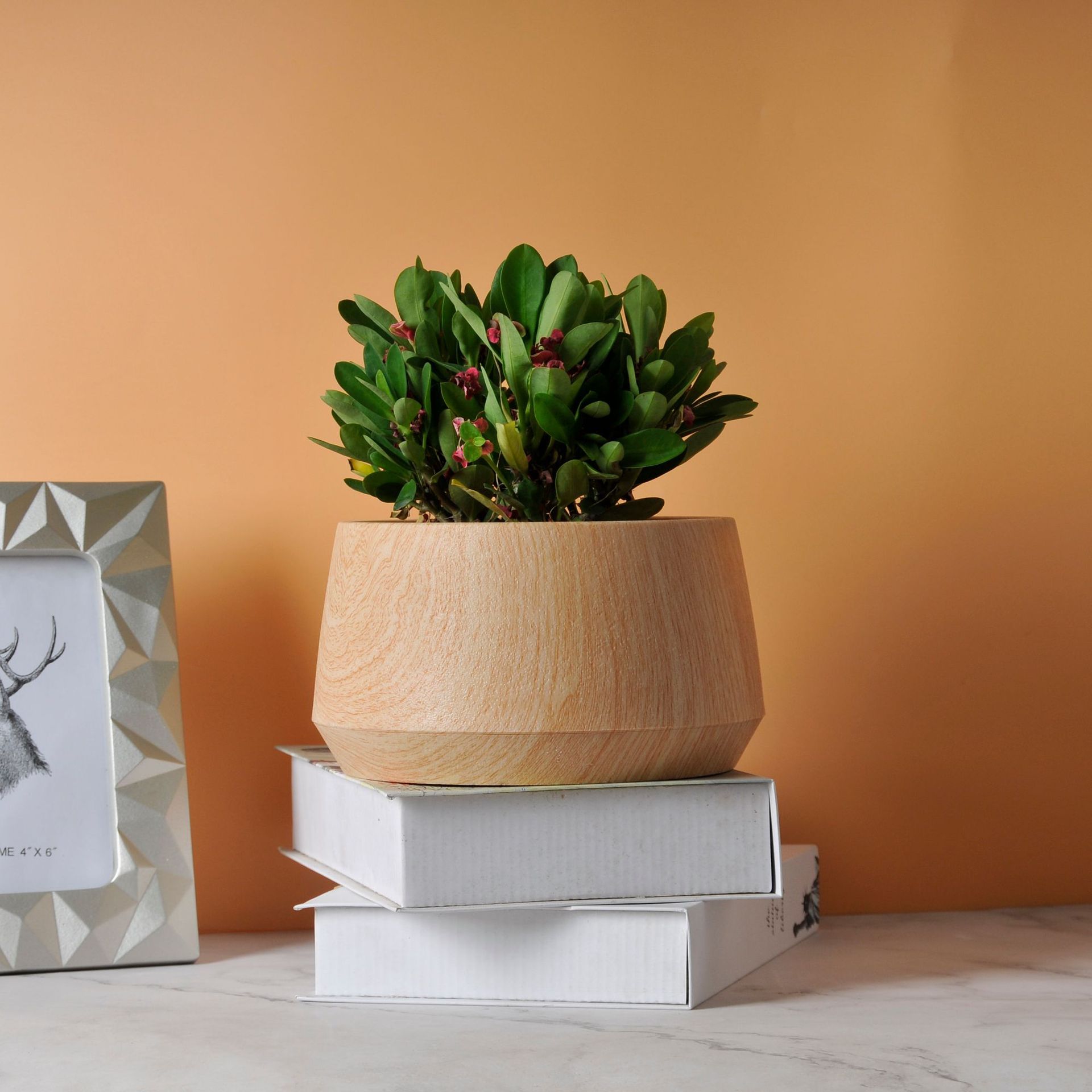 仿木纹塑料花盆无孔圆口矮胖花盆桌面绿植种植土培盆家装摆设花器