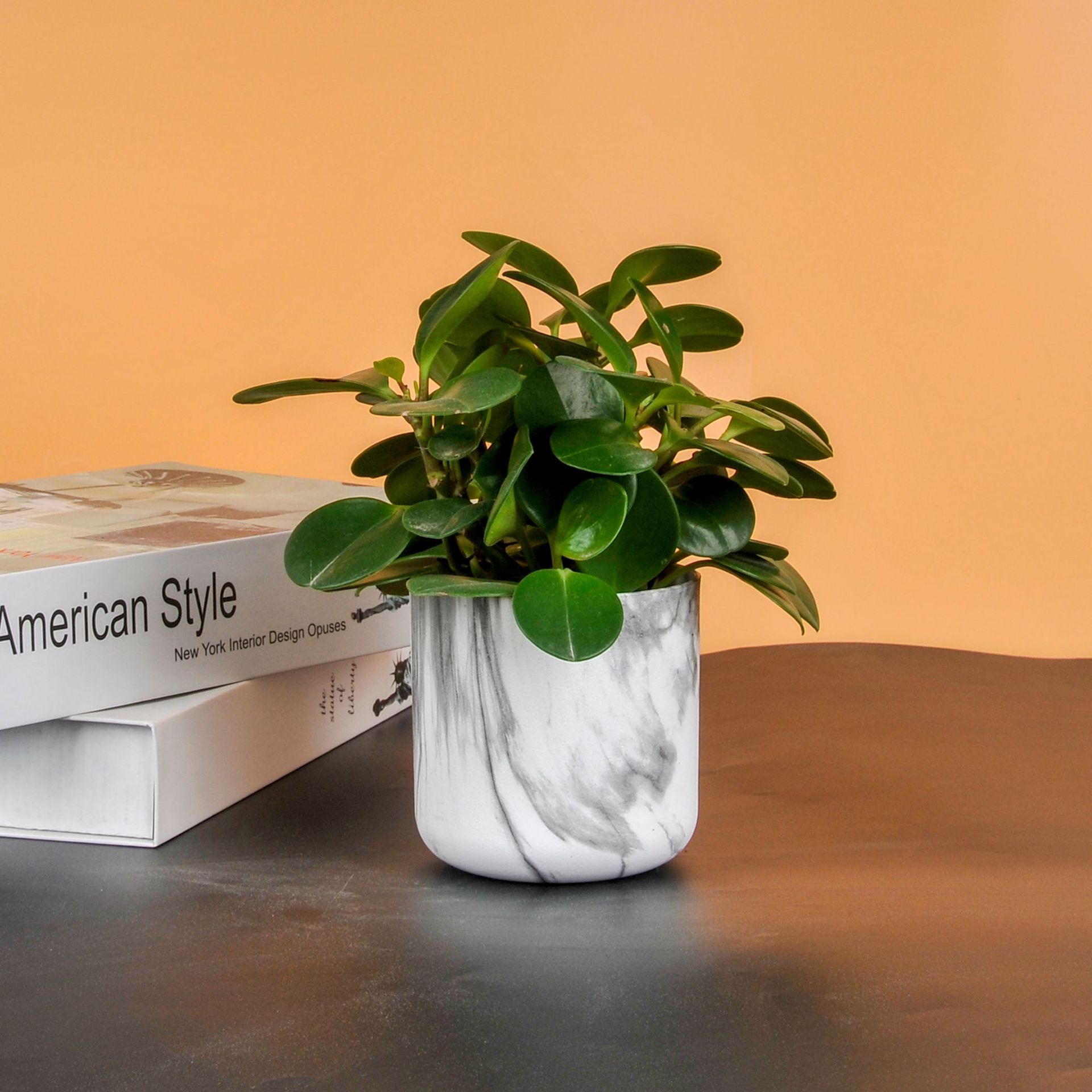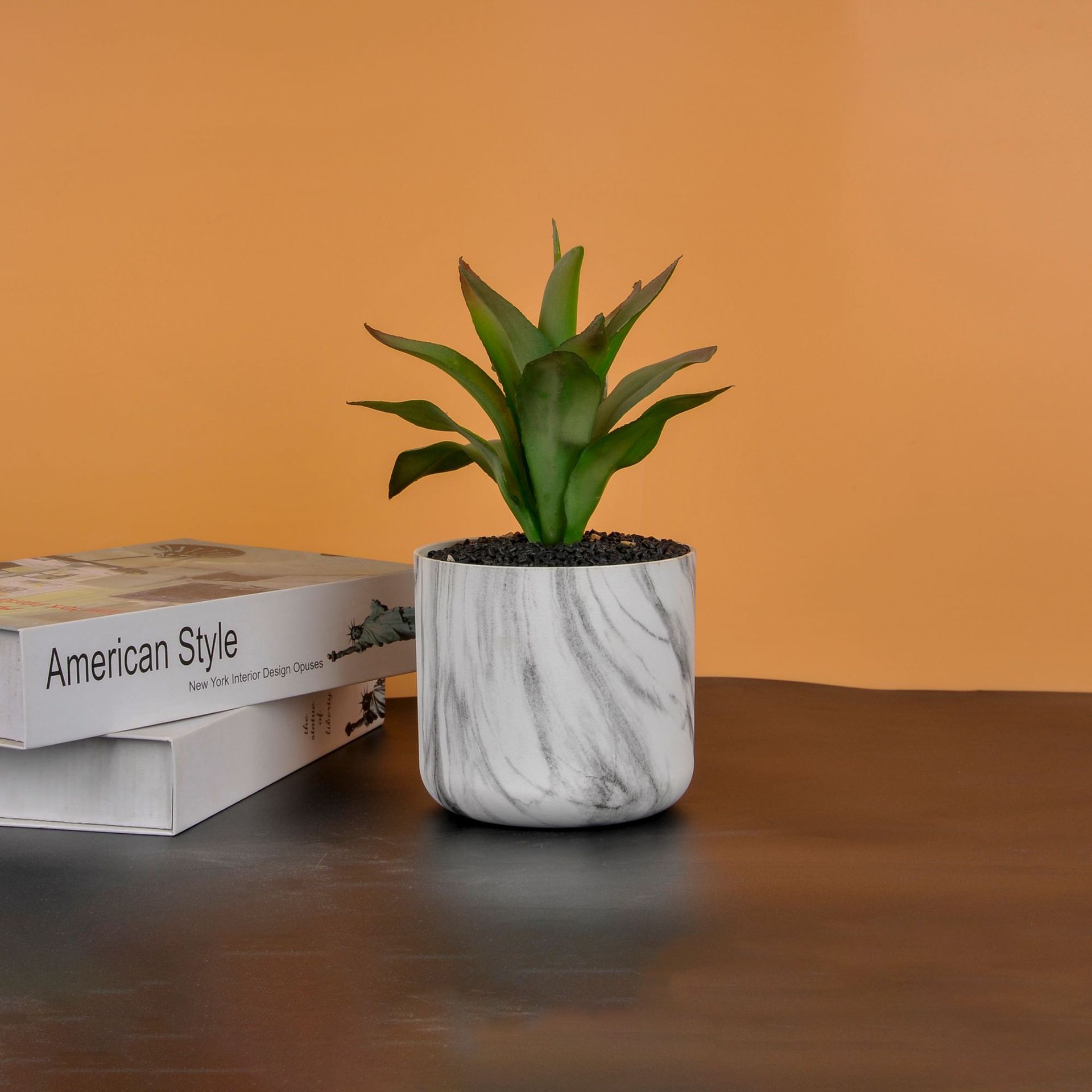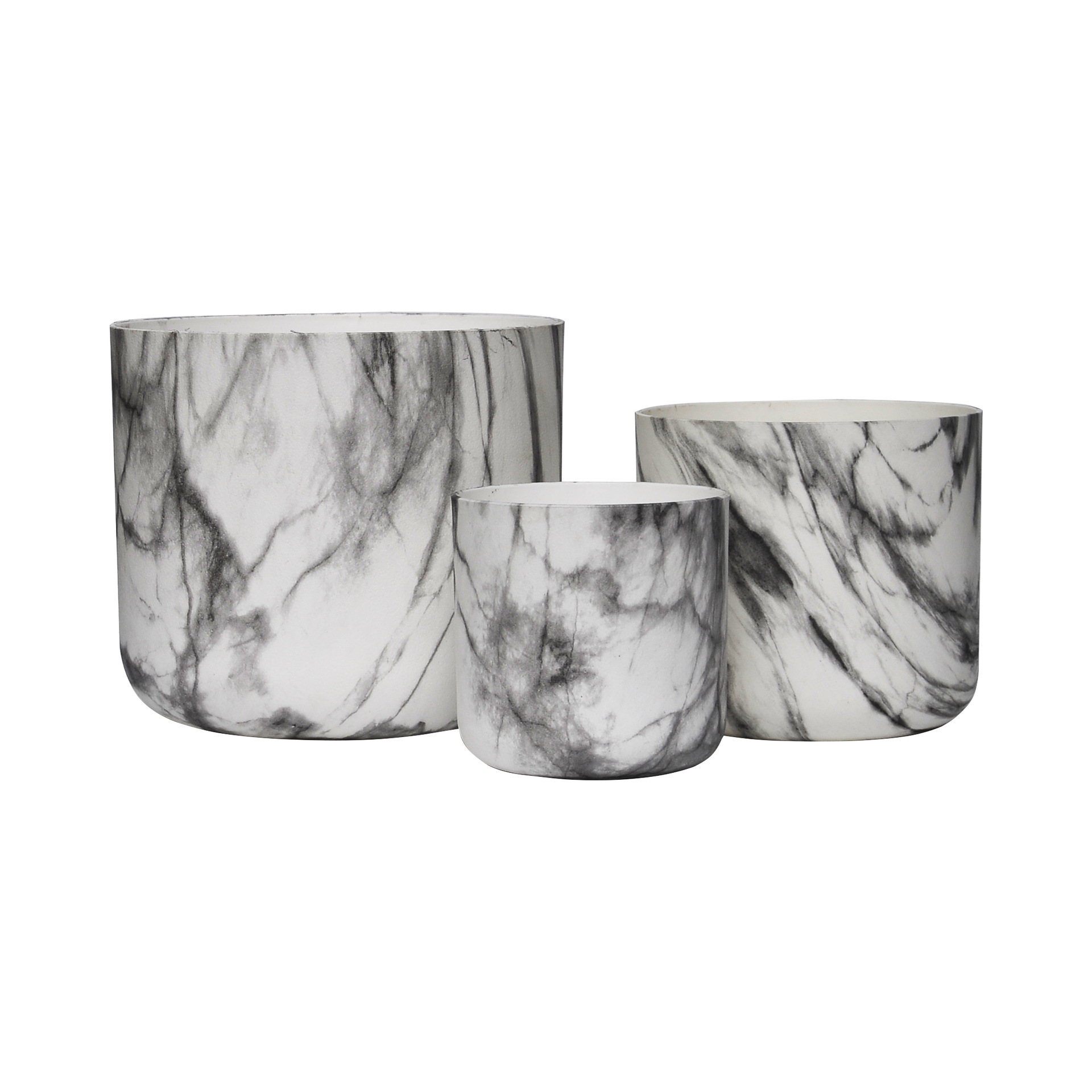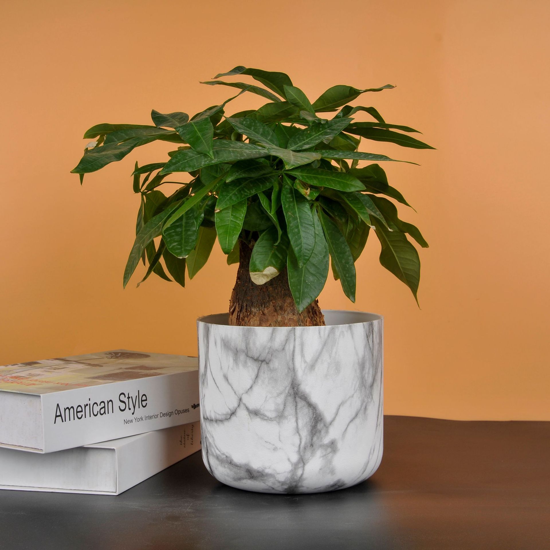耐用小型圆口发财树仿真花通用大理石花纹直筒可开孔ABS塑料花盆