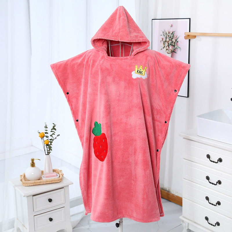 珊瑚绒浴巾斗篷 连帽加大款柔软吸水成人披风居家浴袍斗篷