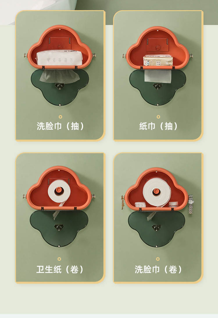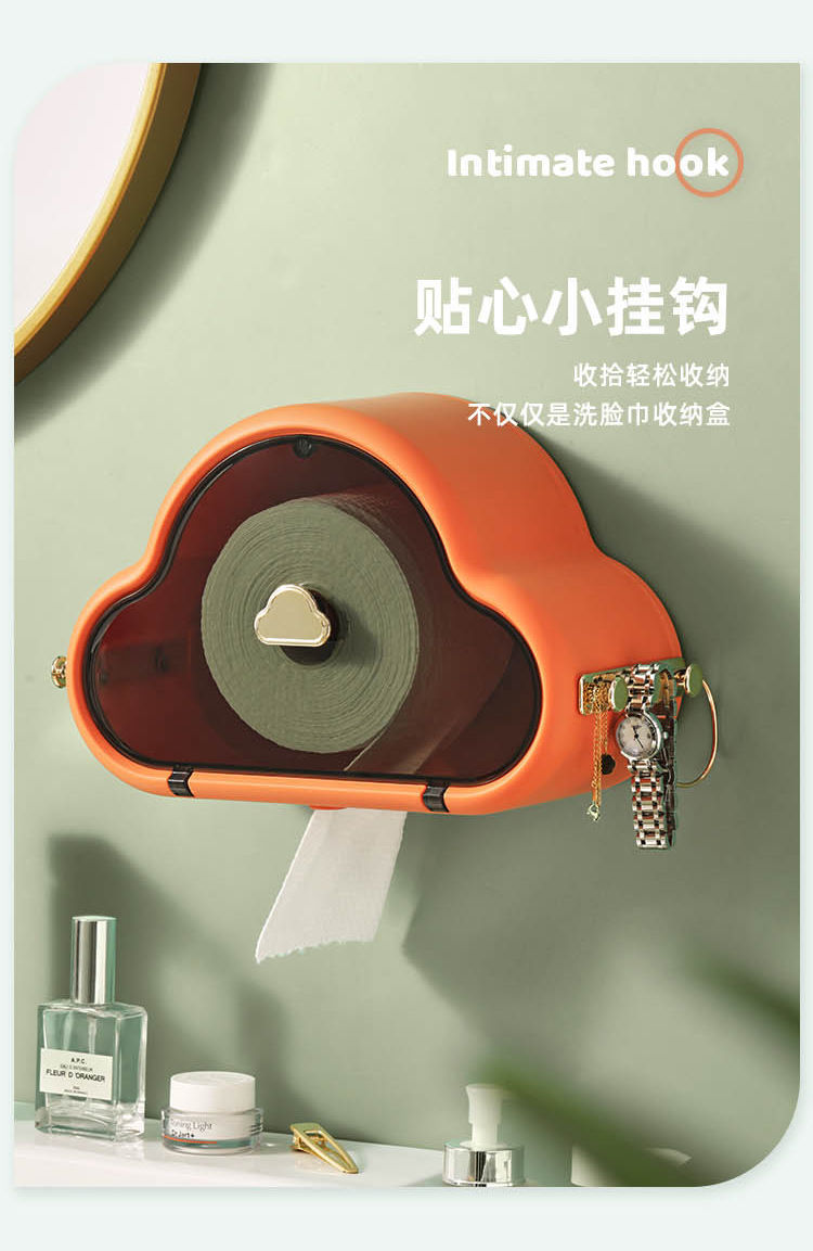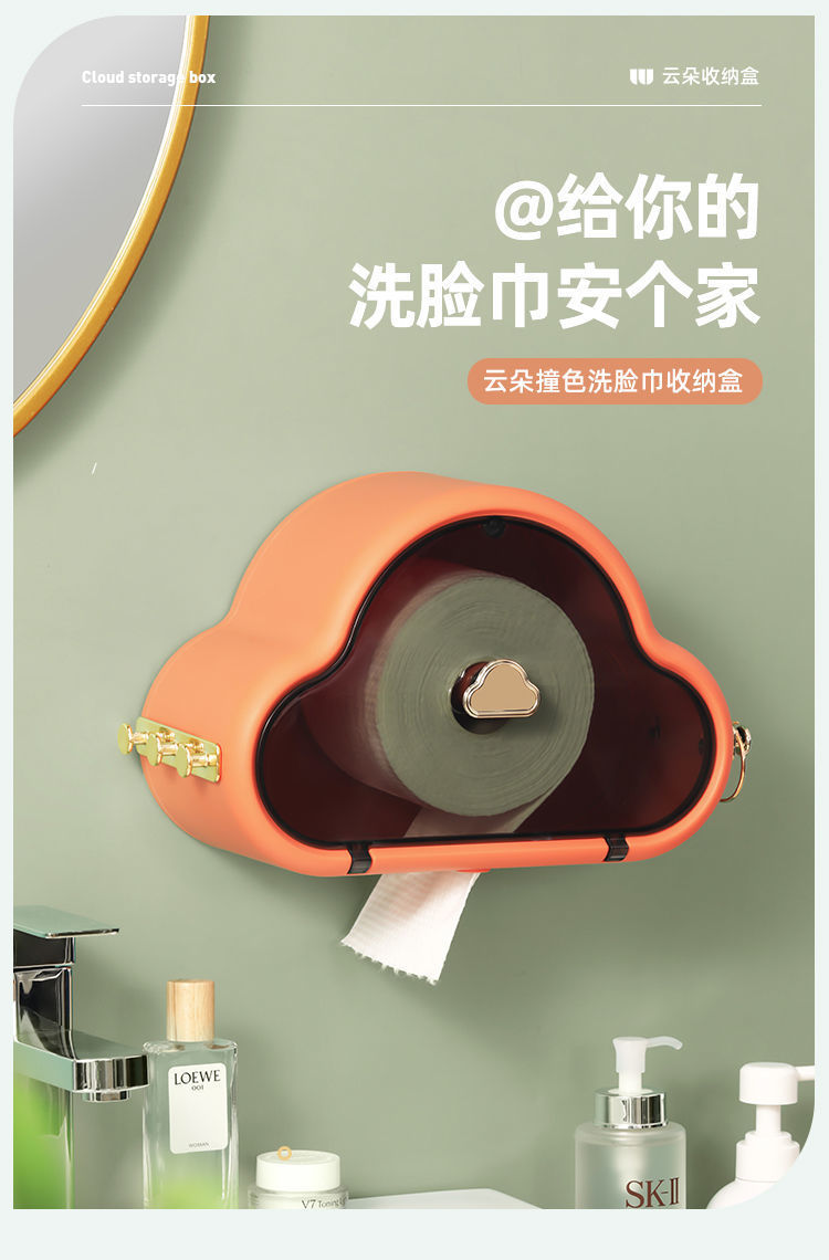 卫生间纸巾盒厕所抽纸盒云朵网红纸巾挂架卷纸置物盒免打孔壁挂式