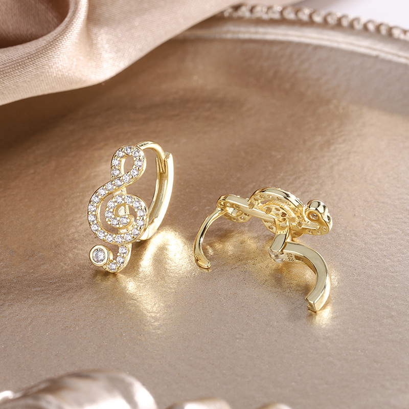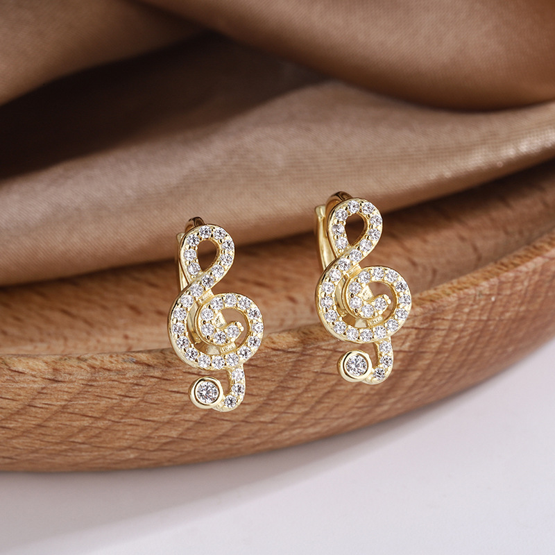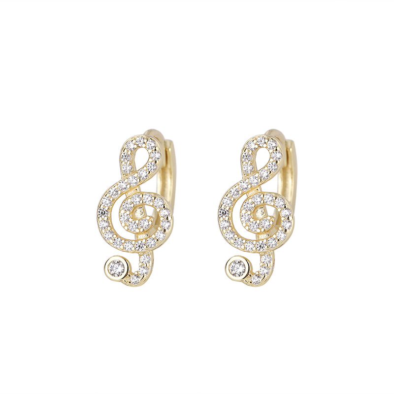 欧美复古金属耳环女网红时尚感几何镶钻音符耳扣简约耳饰批发饰品
