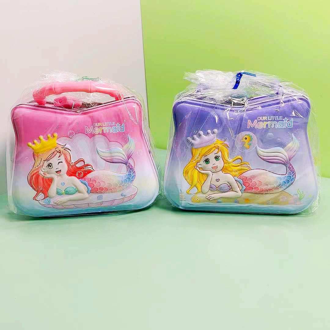 幼儿园女孩美人鱼手提存钱罐礼品零钱罐收纳盒儿童带锁存蓄罐摆件
