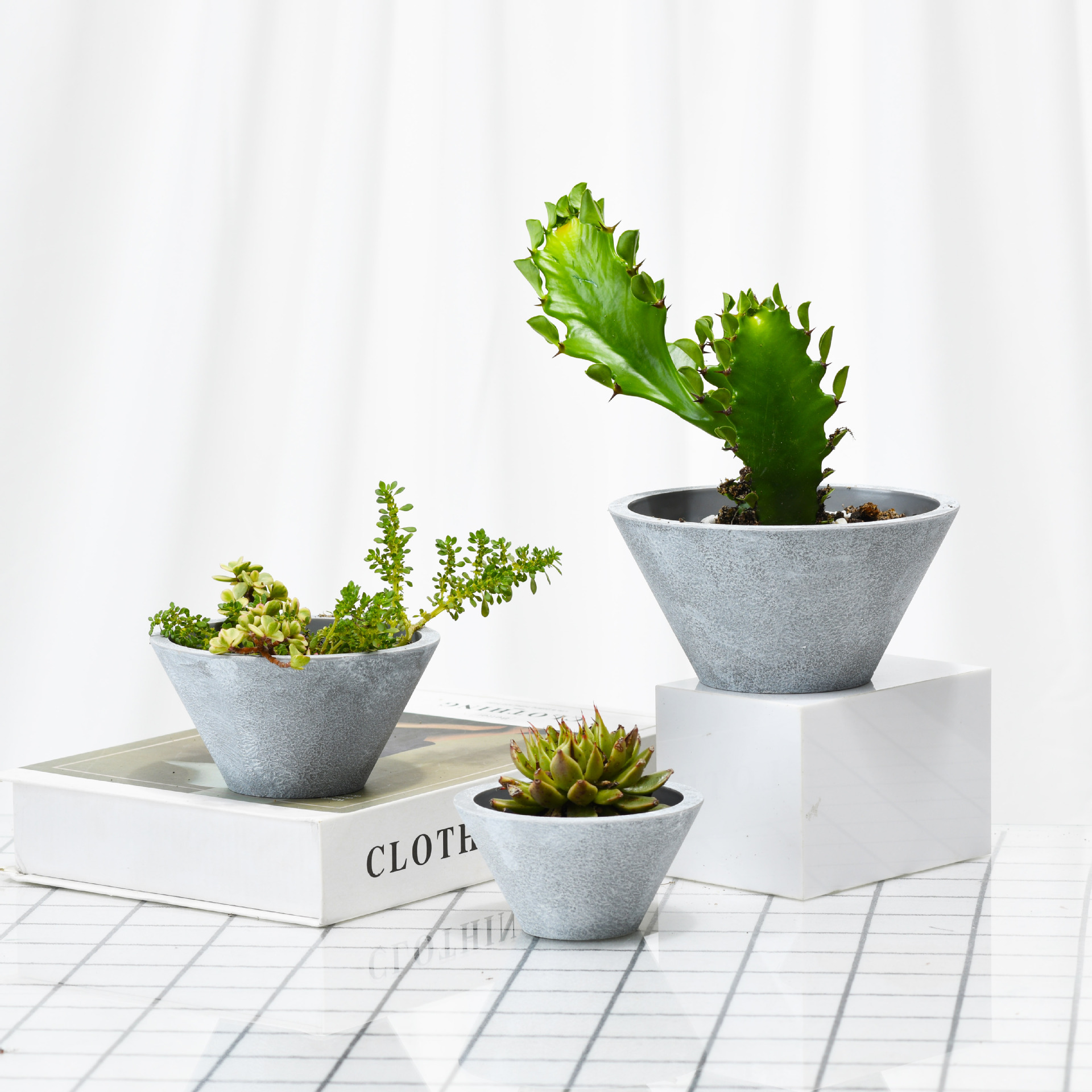 圆口锥形仿水泥密胺仿瓷花盆迷你多肉植物仿真园艺室内桌面套装盆