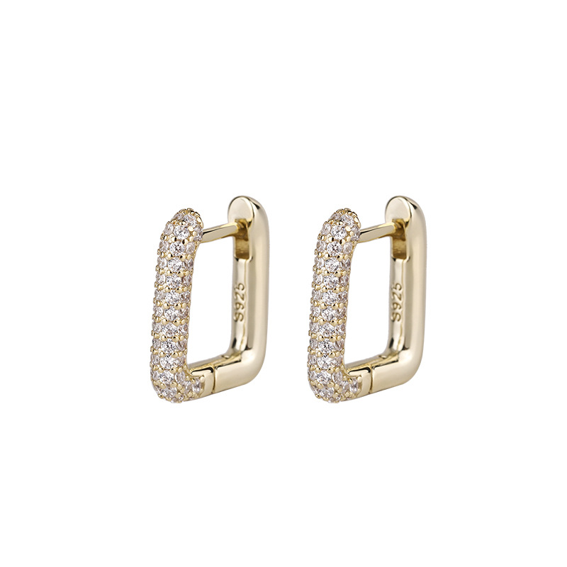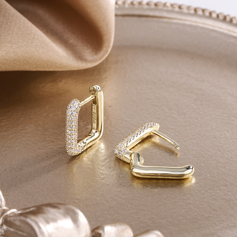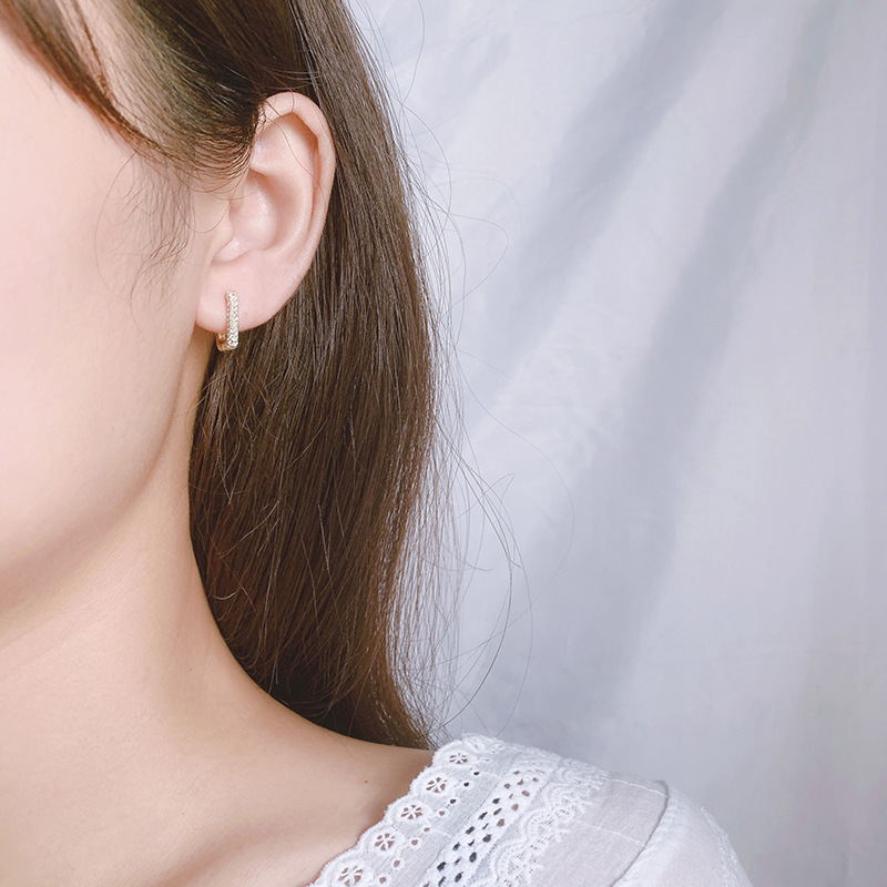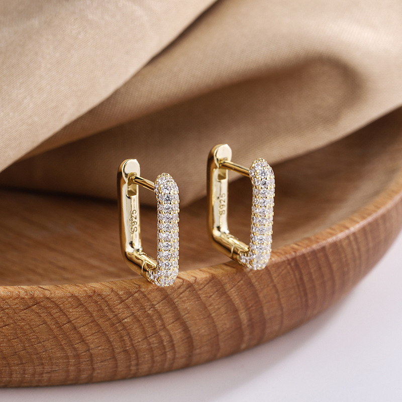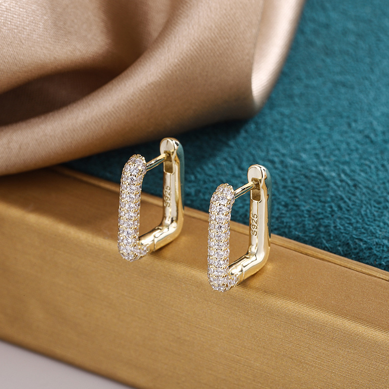 欧美跨境饰品女新款时尚气质微镶满钻网红同款几何精致耳饰耳圈女
