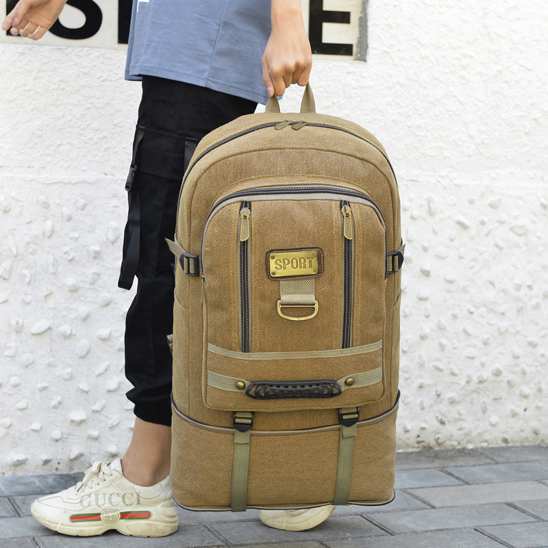 外贸复古帆布双肩包男户外旅行学生背包多功能登山包大容量行李袋