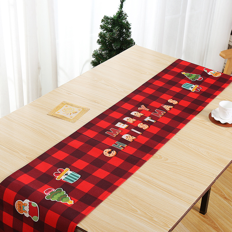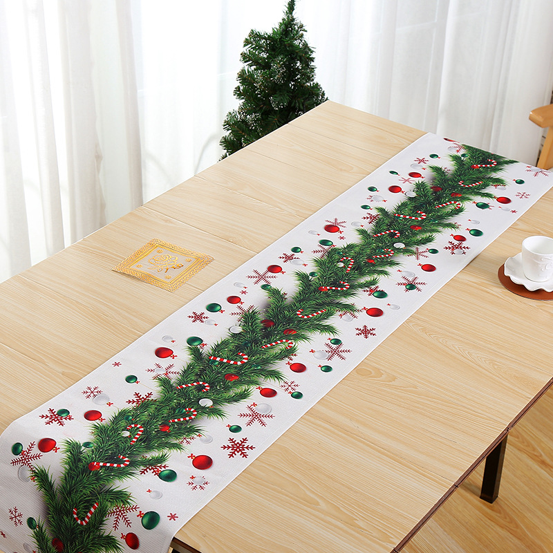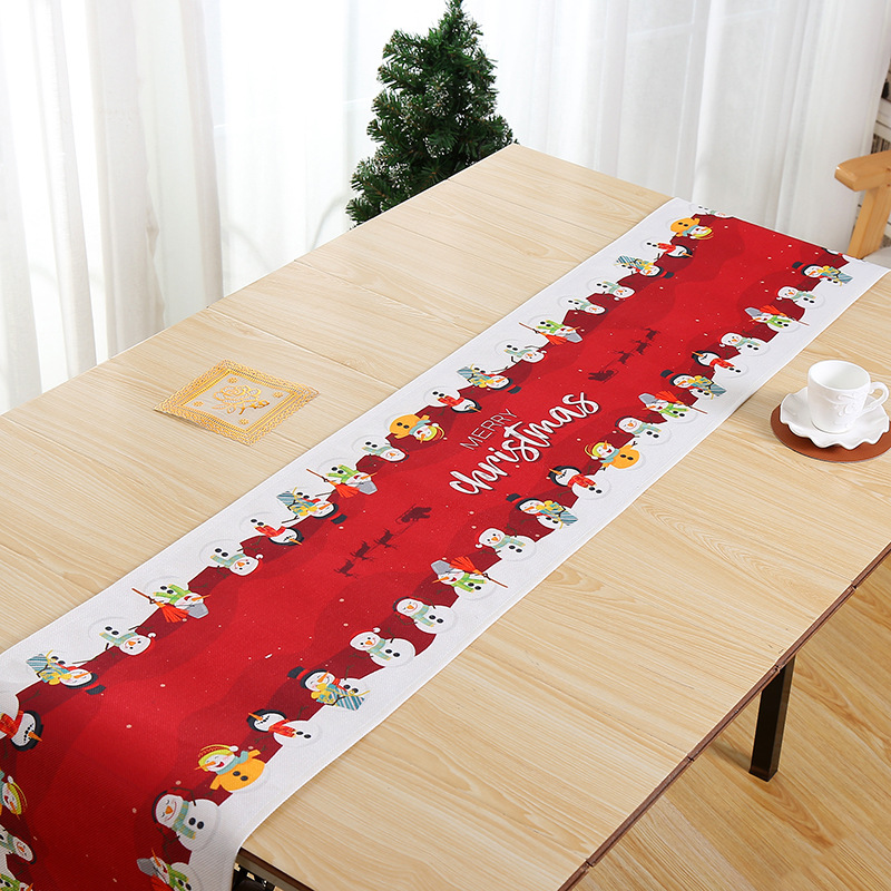 跨境新款圣诞节桌旗家居装饰布艺印花餐桌垫加密亚麻餐桌隔热桌布