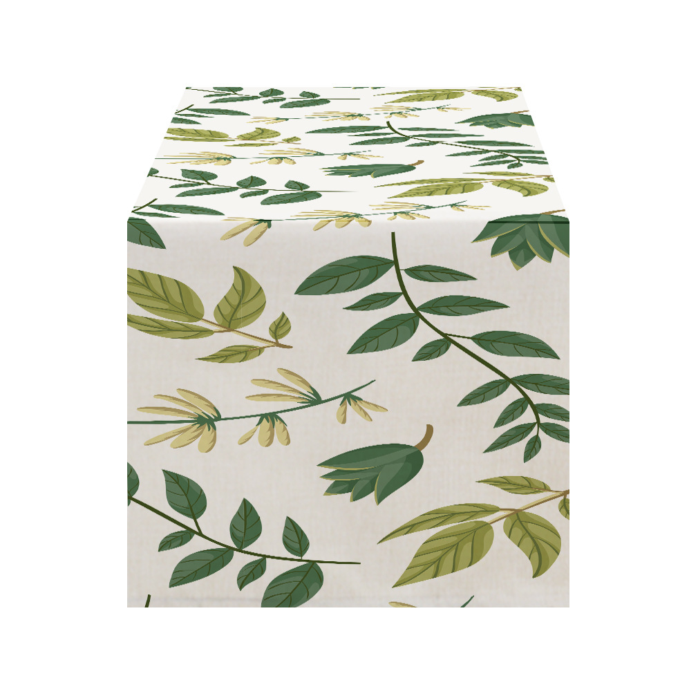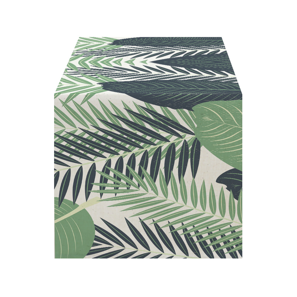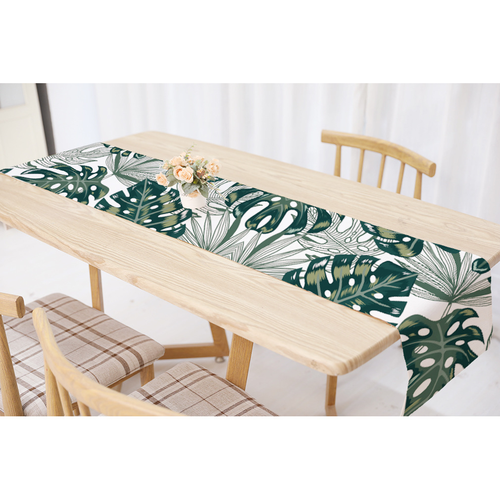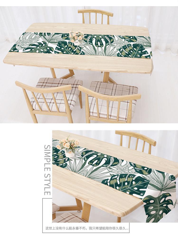 白色亚麻印花桌旗简约热带植物餐桌旗现代简约茶几鞋柜防尘盖布