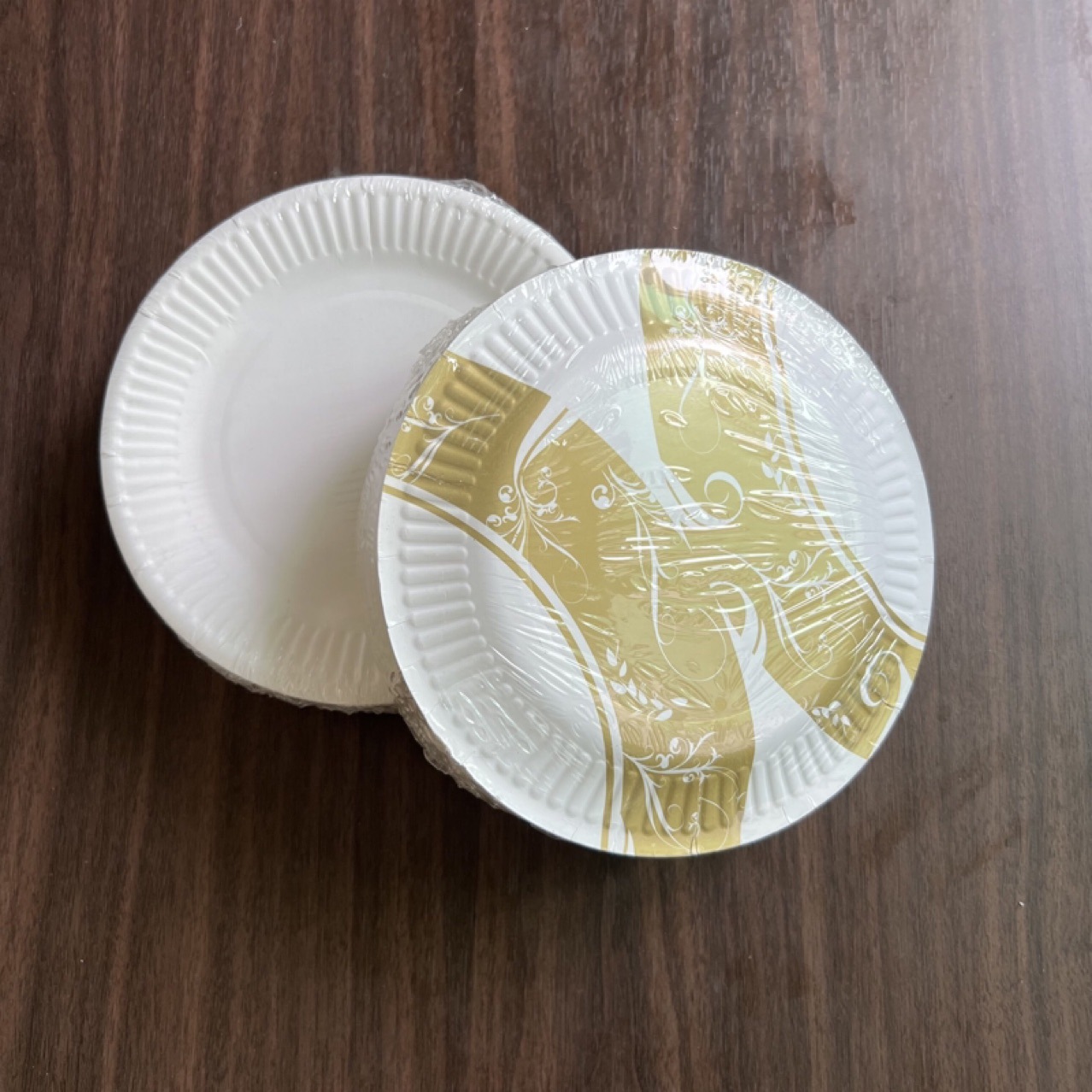 佳贝一次性纸盘7英寸加厚圆盘后背印刷白卡纸盘350克手工DIY纸盘