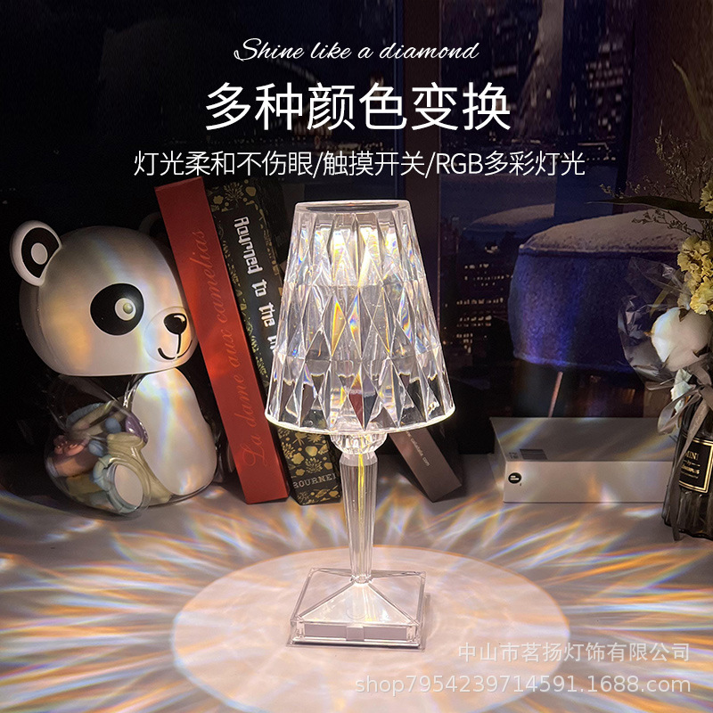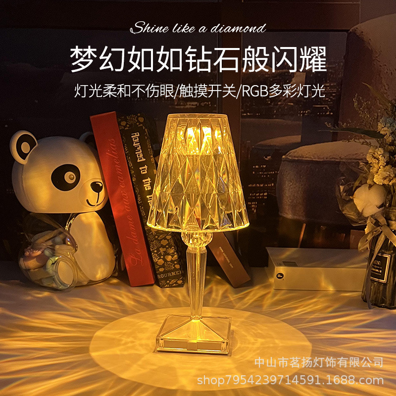 创意装饰水晶台灯 USB小夜灯拍拍氛围灯玫瑰钻石水晶led 酒吧台灯