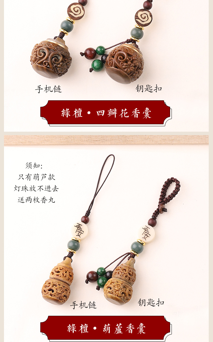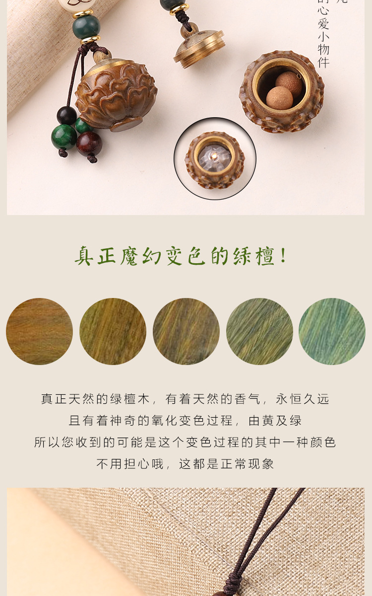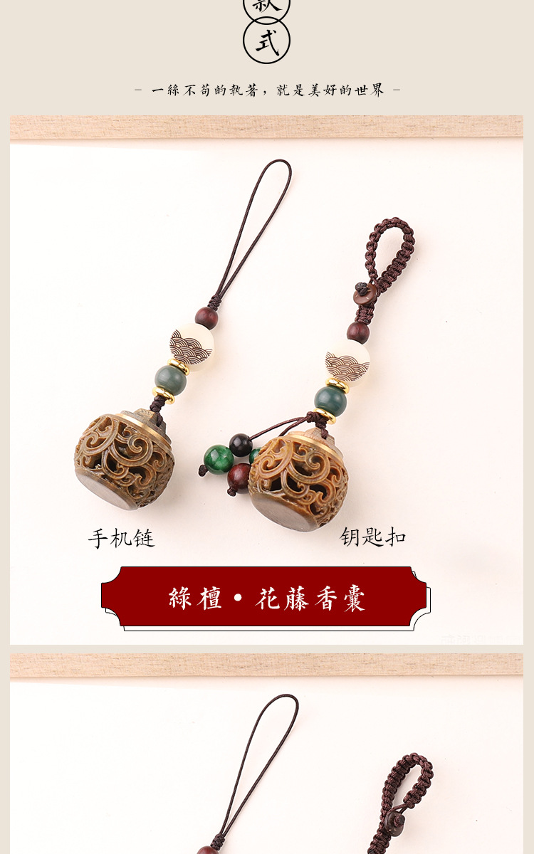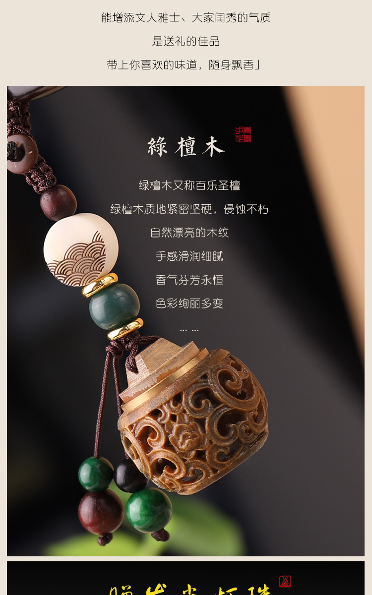古风绿檀木镂空香囊盒子钥匙扣中国风复古香丸香薰挂件女可打开