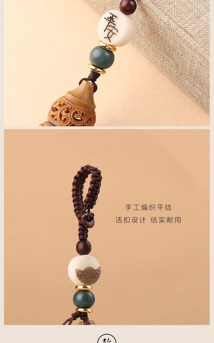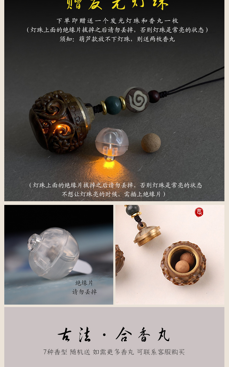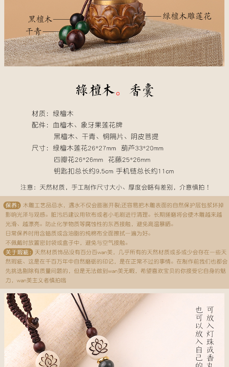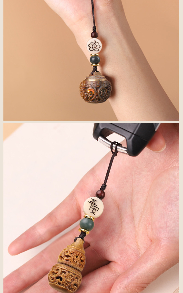 古风绿檀木镂空香囊盒子钥匙扣中国风复古香丸香薰挂件女可打开